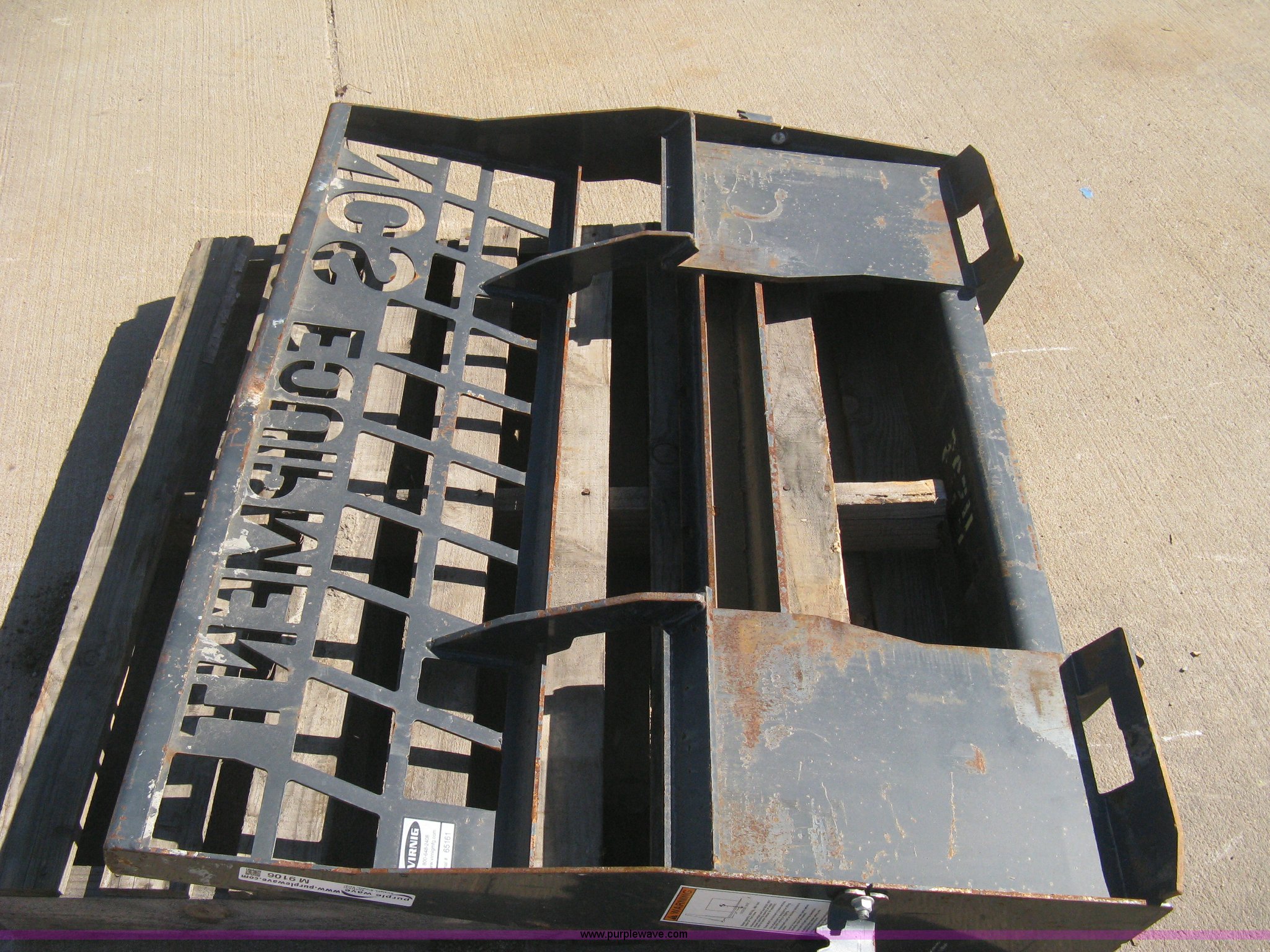 Purple Wave is selling a used Other Attach. or Equip. in Kansas. This item is a Virnig pallet fork attachment with the following: Skid steer quick attach, 45.5" assembly width, No forks, Serial 65161