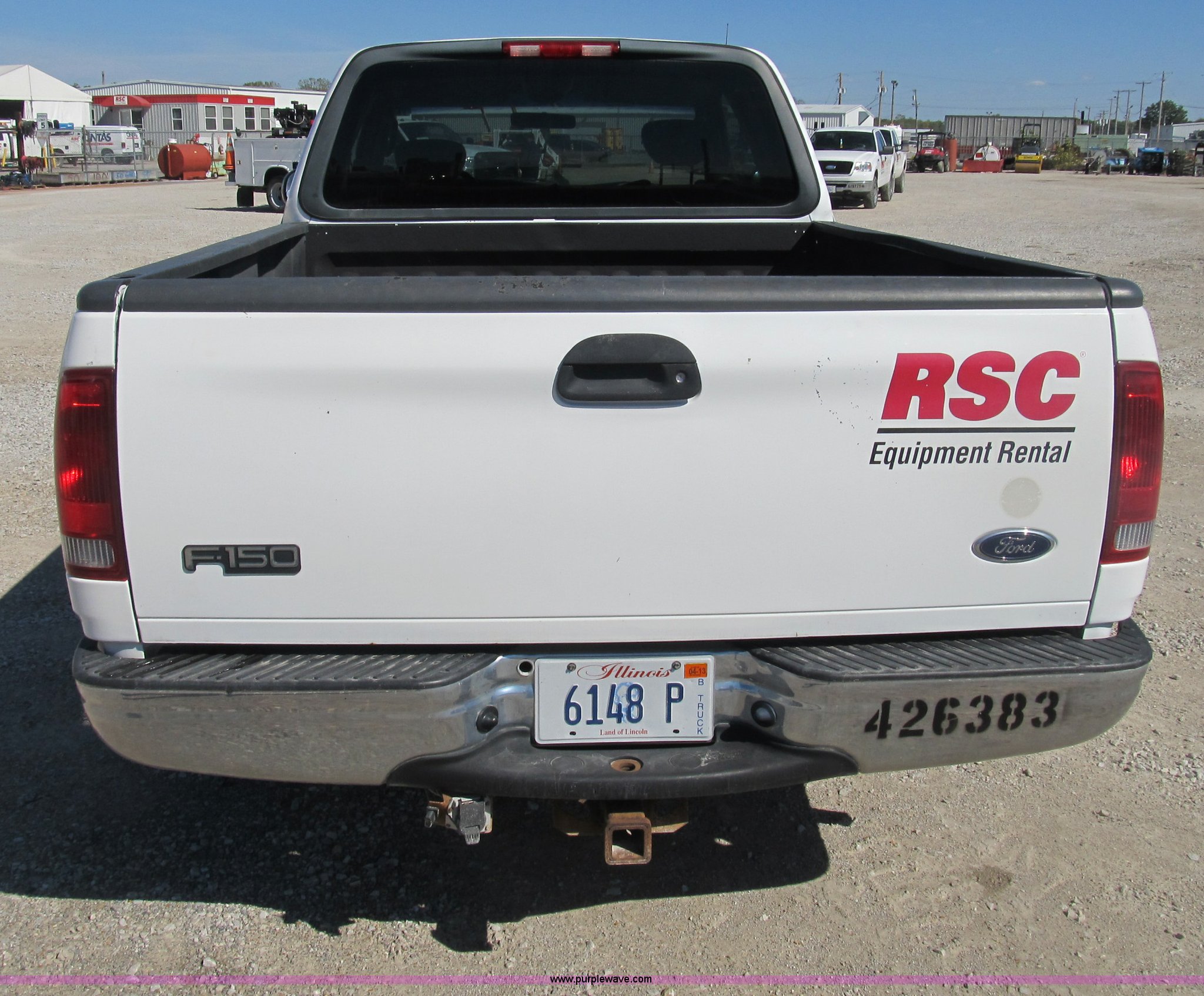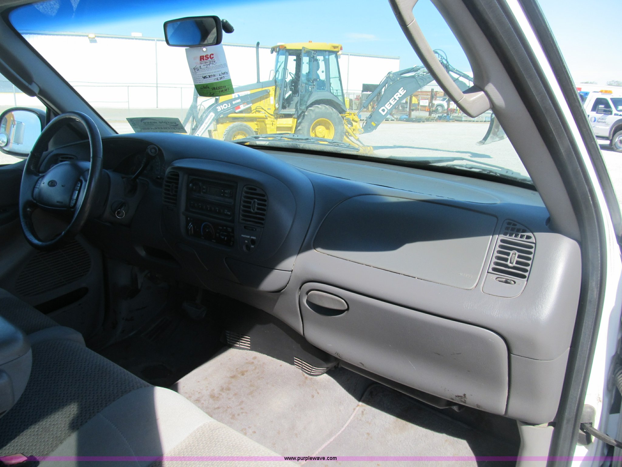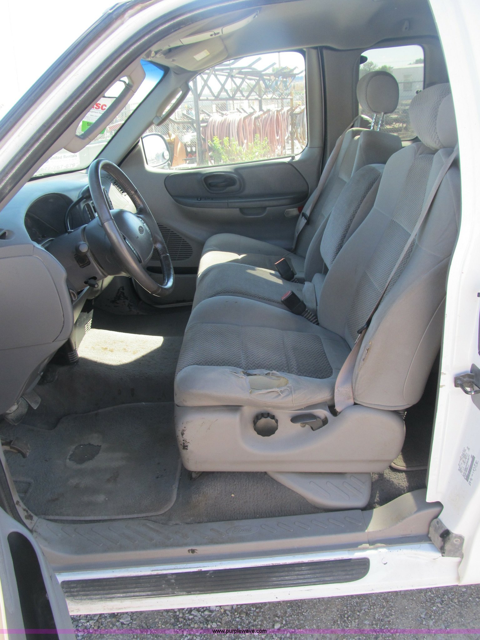 2002 Ford F150 XLT SuperCab pickup truck. 156,890 actual miles, Triton 4.6L V8 EFI gas engine, Automatic transmission, AC and heat, Tilt, Cruise, AM/FM, Power windows, locks, and mirrors, Cloth interior, Bed liner, (4) stake pockets, (4) tie down rings, Receiver hitch, Trailer wiring, P235/70R16 right front tire, LT245/75R16 left front tire, P235/75R16 left rear tire, LT245/75R16 right rear tire, Interior/exterior cosmetic damage, Body rust, EIN 426383RA. 1FTRX17W02NB40042. Shipping quotes available. United Rentals - Collinsville. 5076 Mid America Court. Collinsville, IL 62234