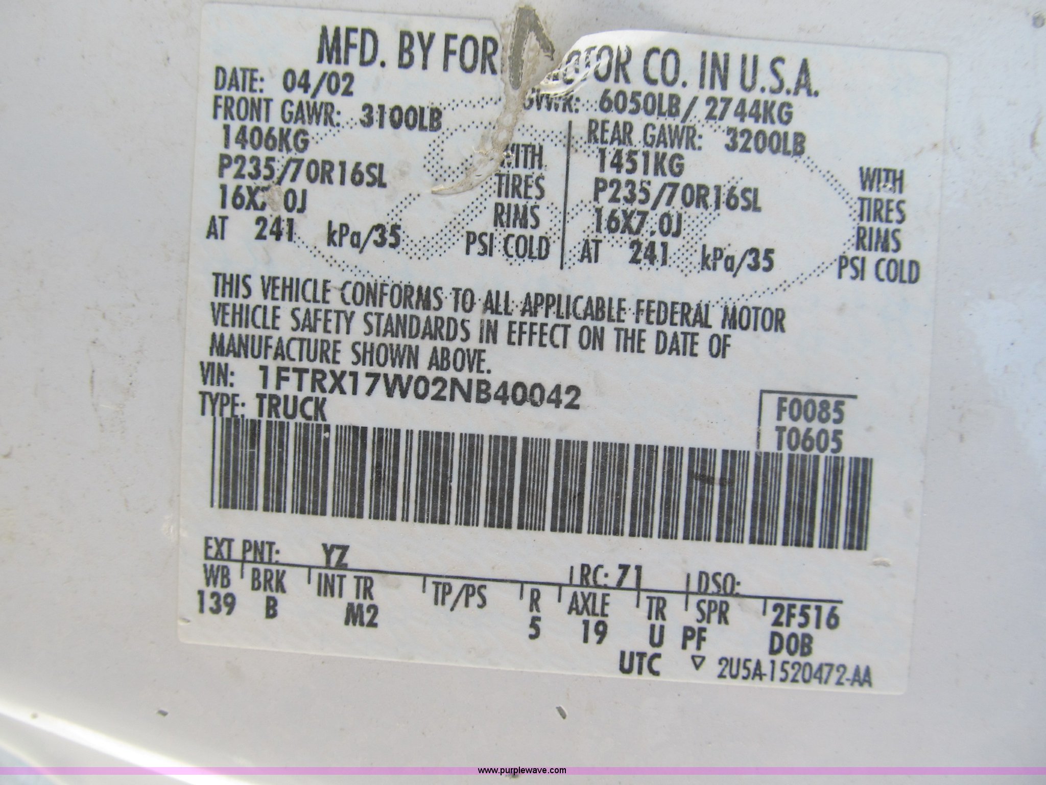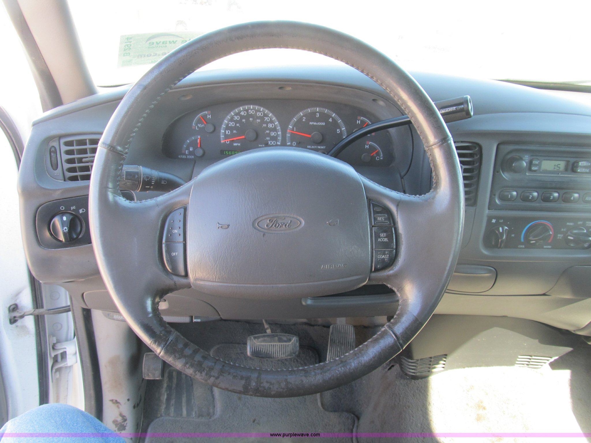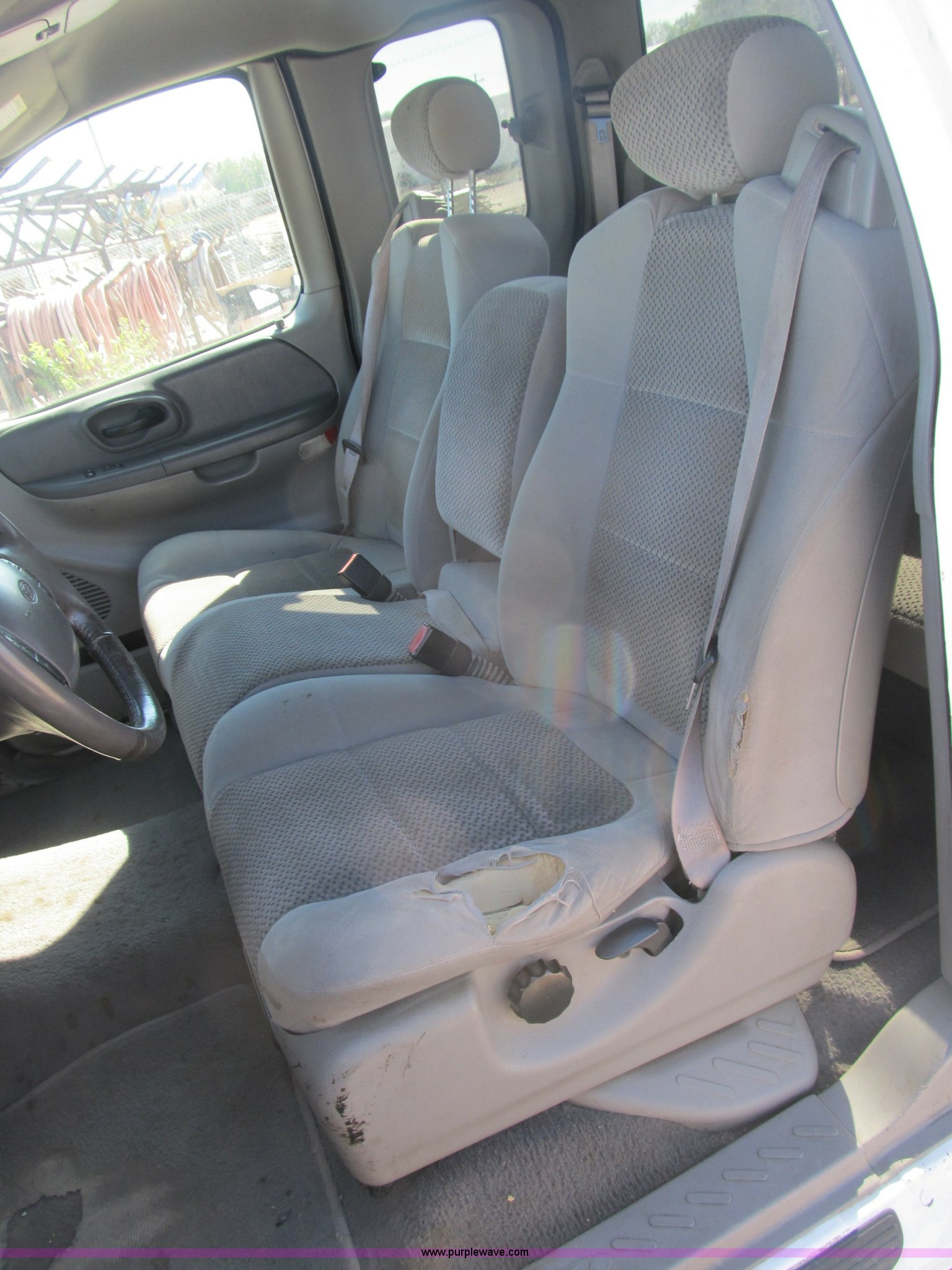 Purple Wave is selling a used Passenger Vehicle in Illinois. This item is a 2002 Ford F150 XLT SuperCab pickup truck with the following: 156,890 actual miles, Triton 4.6L V8 EFI gas engine, Automatic transmission, AC and heat, Tilt, Cruise, AM/FM, Power windows, locks, and mirrors, Cloth interior, Bed liner, (4) stake pockets, (4) tie down rings, Receiver hitch, Trailer wiring, P235/70R16 right front tire, LT245/75R16 left front tire, P235/75R16 left rear tire, LT245/75R16 right rear tire, Interior/exterior cosmetic damage, Body rust, EIN 426383RA