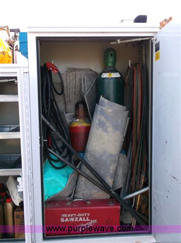 Purple Wave is selling a used Service Truck in Ohio. This item is a 2006 Ford F550 XL Super Duty service truck with the following: 108,230 actual miles, Powerstroke 6.0L V8 turbo diesel engine, Automatic transmission, AC and heat, AM/FM, Manual windows and locks, Vinyl interior, Auxiliary light controls, Knapheide utility bed, Model 61325460J, 11' x 8', (8) storage compartments, Work lights, 5" vise, Miller Bobcat 225NT welder/generator, Kohler 20 HP gas engine, 10,000 watt generator, Champion air compressor, Briggs & Stratton 8 HP gas engine, Hose and reel assembly, Model CDEVPA01-HGM3, Serial D039598, Lube kit, Three compartment oil tank, Engine, hydraulic, and waste oil reservoirs, Ball crank hose and reel assembly, Morrison junction/discharge waste pump,, Roof mounted light bar, Tow hooks, Front auxiliary battery cable, Receiver hitch, Trailer wiring, 225/70R19.5 tires, EIN 619979RA