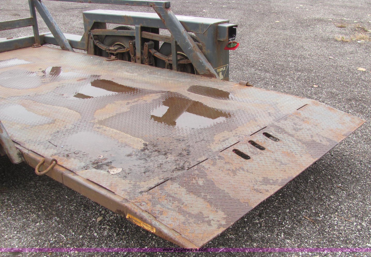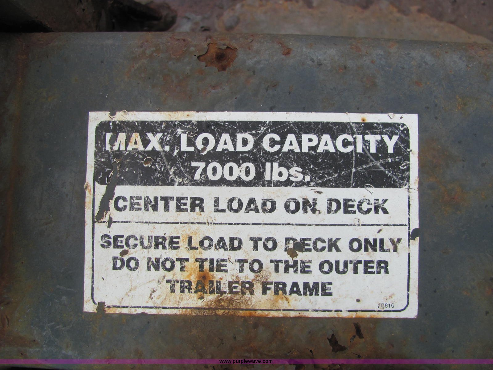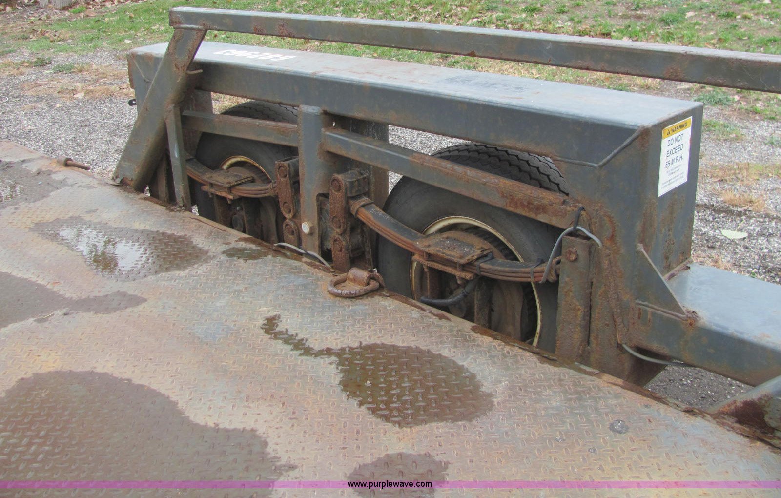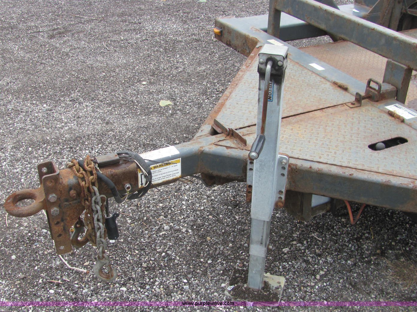 Purple Wave is selling a used Car or Utility Trailer in Michigan. This item is a 2007 JLG 7614 tandem axle drop deck flatbed trailer with the following: 19'L x 101"W overall, 14'L x 6' deck, Electric brakes, Power deck system, Single lever hydraulic control, Quadra spring suspension, D-ring tie downs, Pintle hitch, ST225/75R15 tires, GVWR 7,000 lbs, EIN 6822963RA