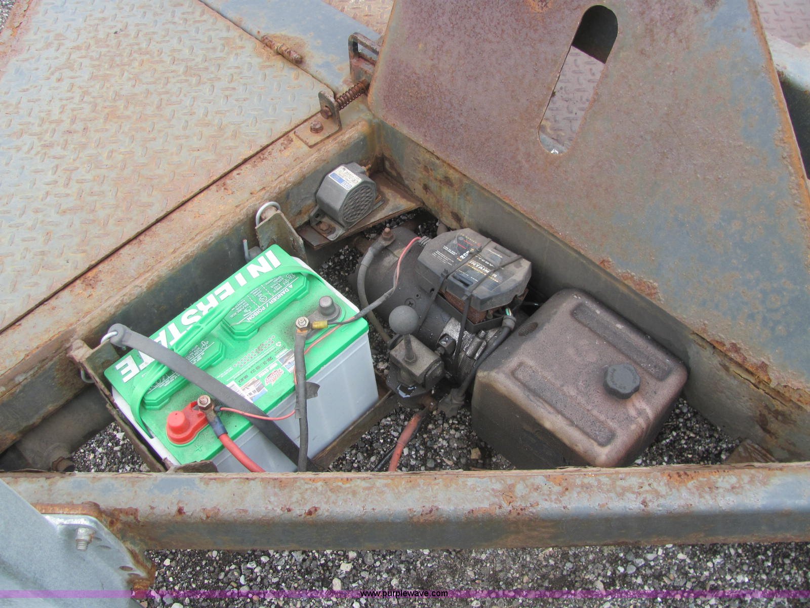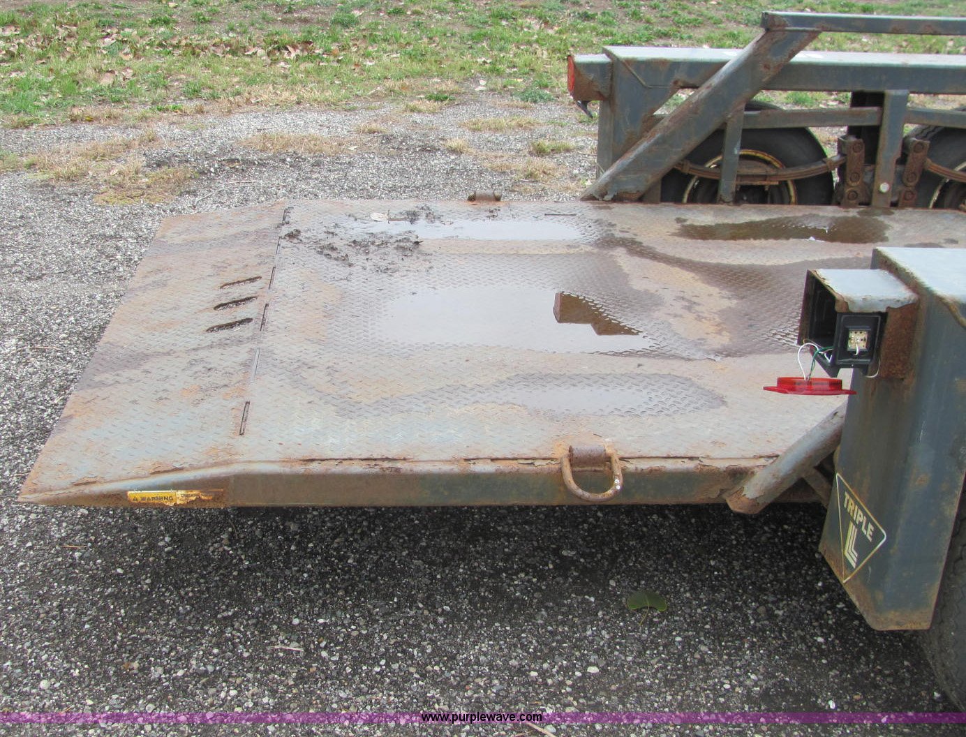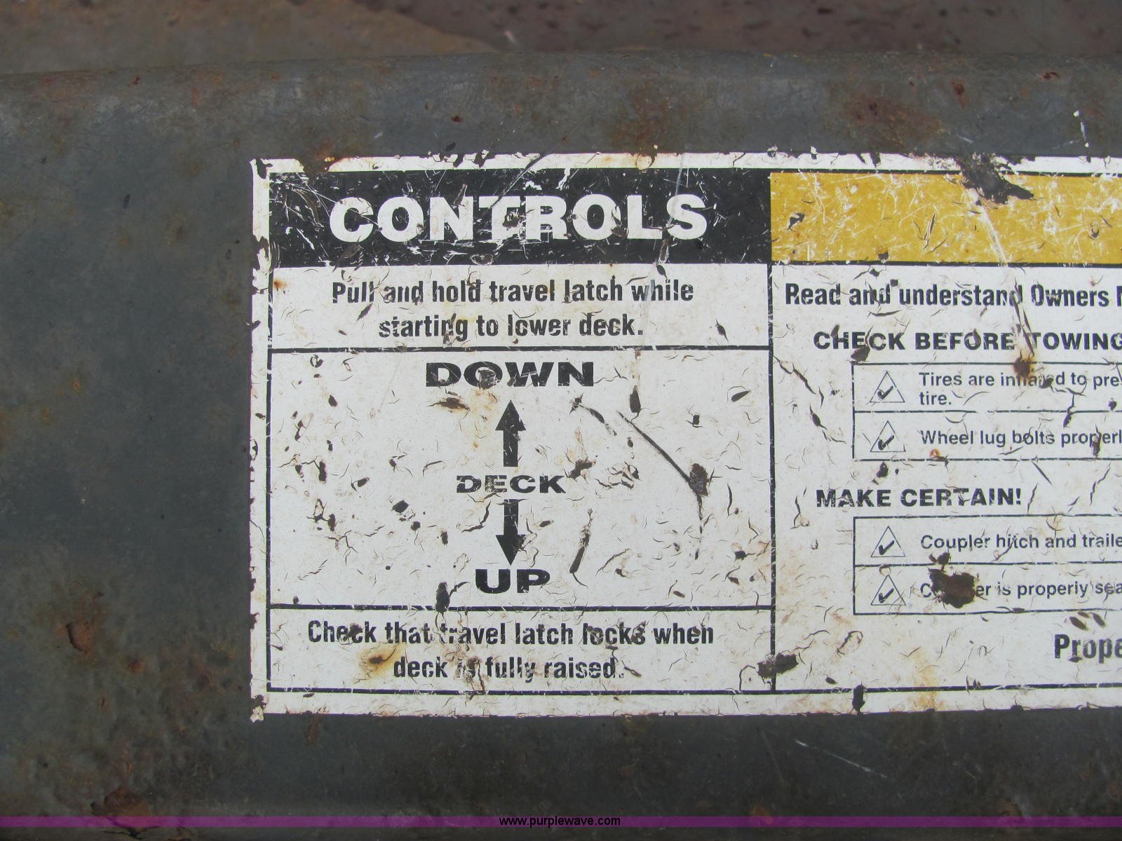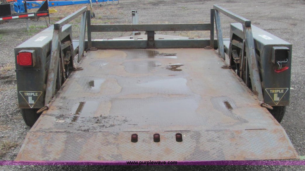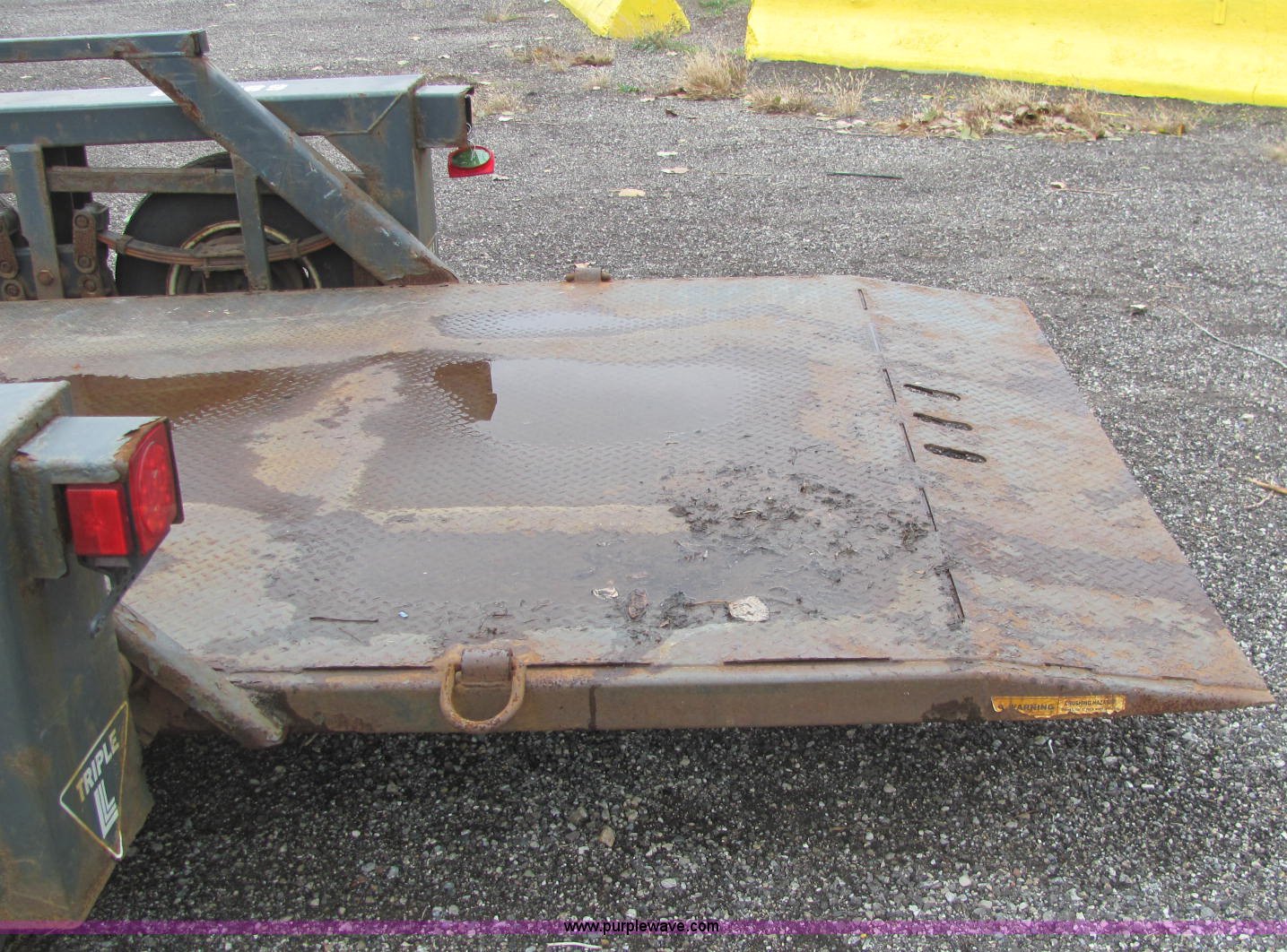 Purple Wave is selling a used Car or Utility Trailer in Michigan. This item is a 2007 JLG 7614 tandem axle drop deck flatbed trailer with the following: 19'L x 101"W overall, 14'L x 6' deck, Electric brakes, Power deck system, Single lever hydraulic control, Quadra spring suspension, D-ring tie downs, Pintle hitch, ST225/75R15 tires, GVWR 7,000 lbs, EIN 6822963RA