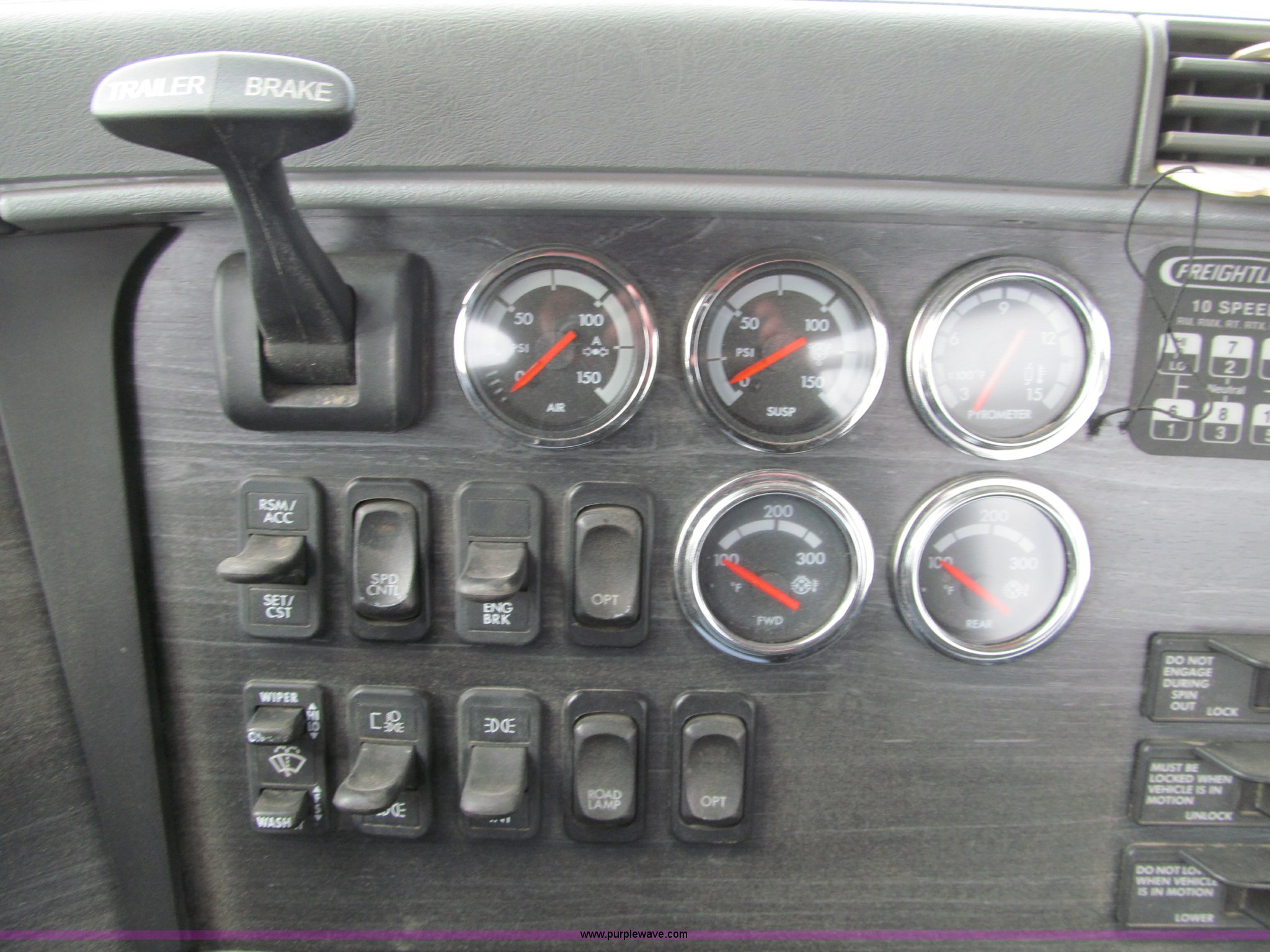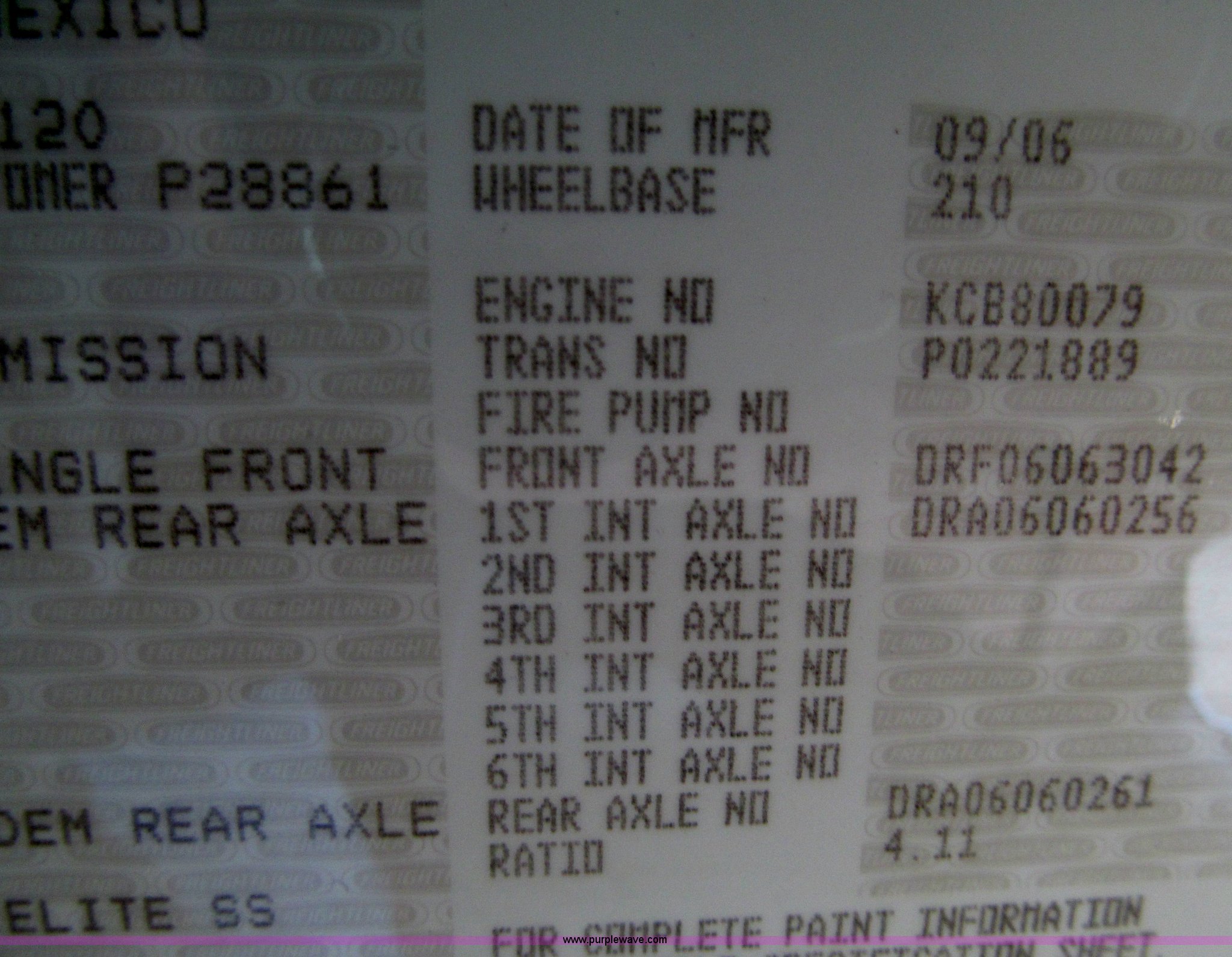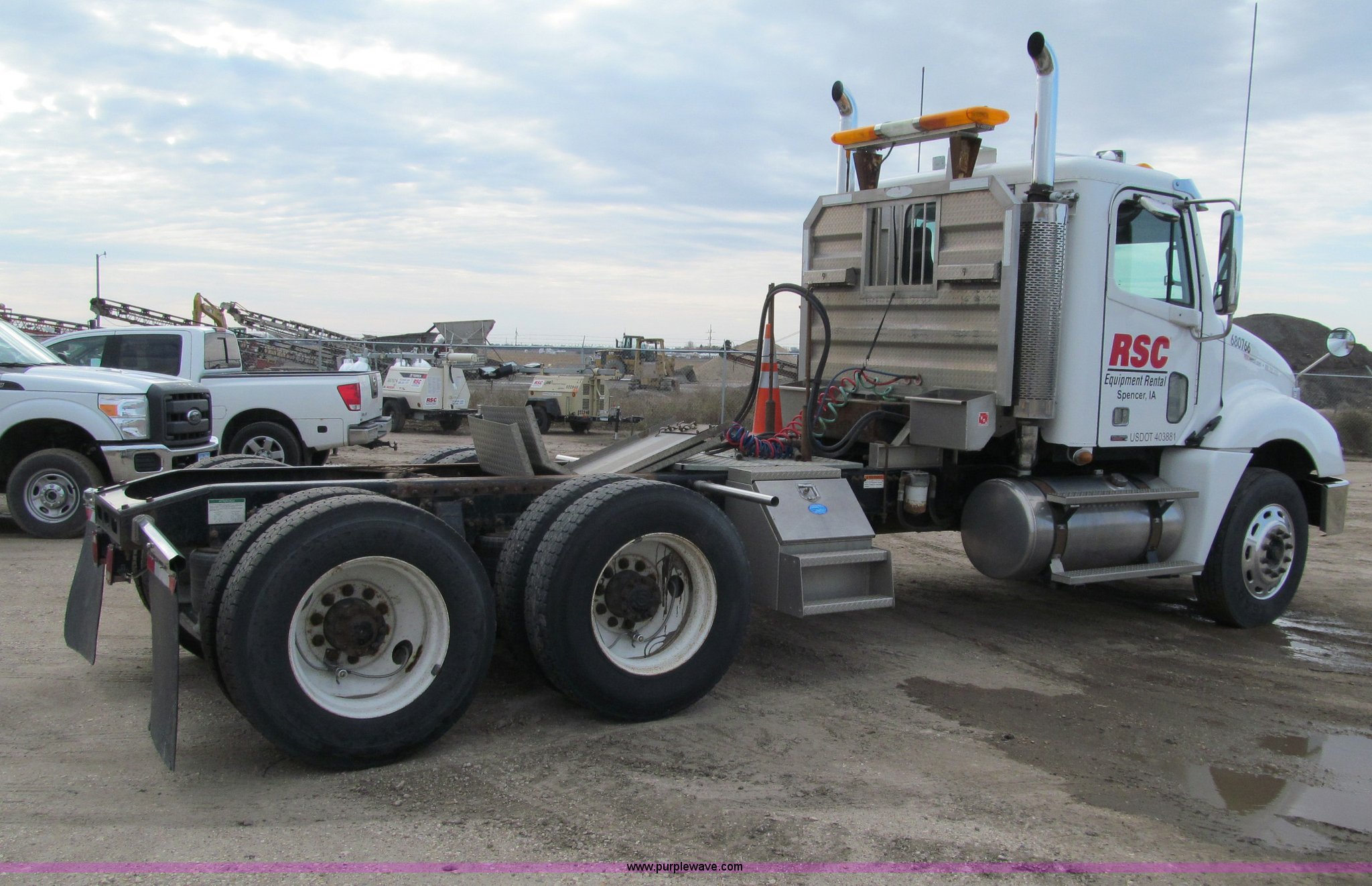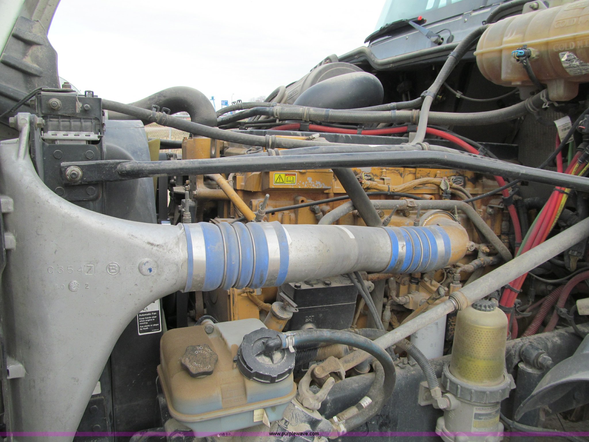 Purple Wave is selling a used Truck Tractor in Iowa. This item is a 2007 Freightliner Columbia CL120 semi truck with the following: 273,443 actual miles, Caterpillar C13 12.5L diesel engine, 430 HP, Eaton Fuller 10 speed manual transmission, FRO-16210C, Twin screw, AC and heat, Tilt, Cruise, AM/FM/CD, Passenger daylight door, Telescoping steering wheel, Air suspension seat, Power windows, Heated mirrors, Visor, Chrome bumper, Block heater, Dual 100 gallon fuel tanks, Dual exhaust stacks, Aluminum deck plate, Headache rack, Window, Storage, Chain hanger, Aluminum half fenders, Fenders included, not installed, Fog lights, Air dry system, (2) side tool/storage boxes, Safety light bar, PTO, Wet kit, Dump valves, Air suspension, Air brakes, Jake brake, Aluminum front wheels, 210" wheelbase, 11R24.5 tires, GVWR 60,600 lbs, FAWR 14,600 lbs, IAWR 23,000 lbs, RAWR 23,000 lbs, Fifth wheel plate removed, EIN 680766RA