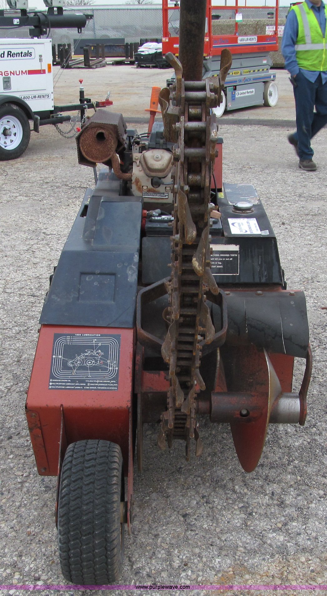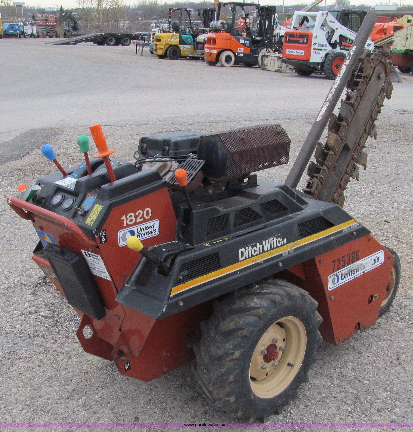 Purple Wave is selling a used Trencher or Rock Saw in Wisconsin. This item is a 2005 Ditch Witch 1820HE walk-behind trencher with the following: 245 hours on meter, Honda 18 HP gas engine, 3' trenching depth, 23x8.5-12 tires, Serial 120678, EIN 725386