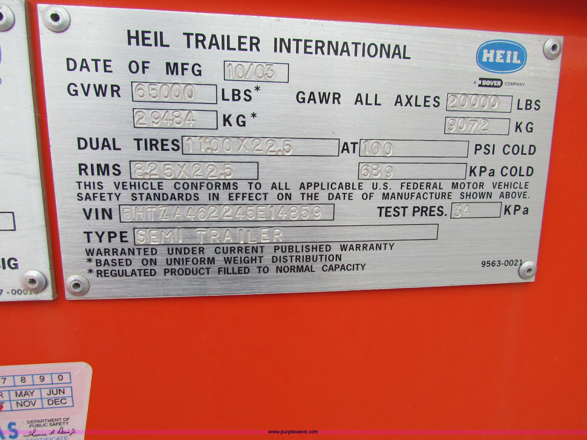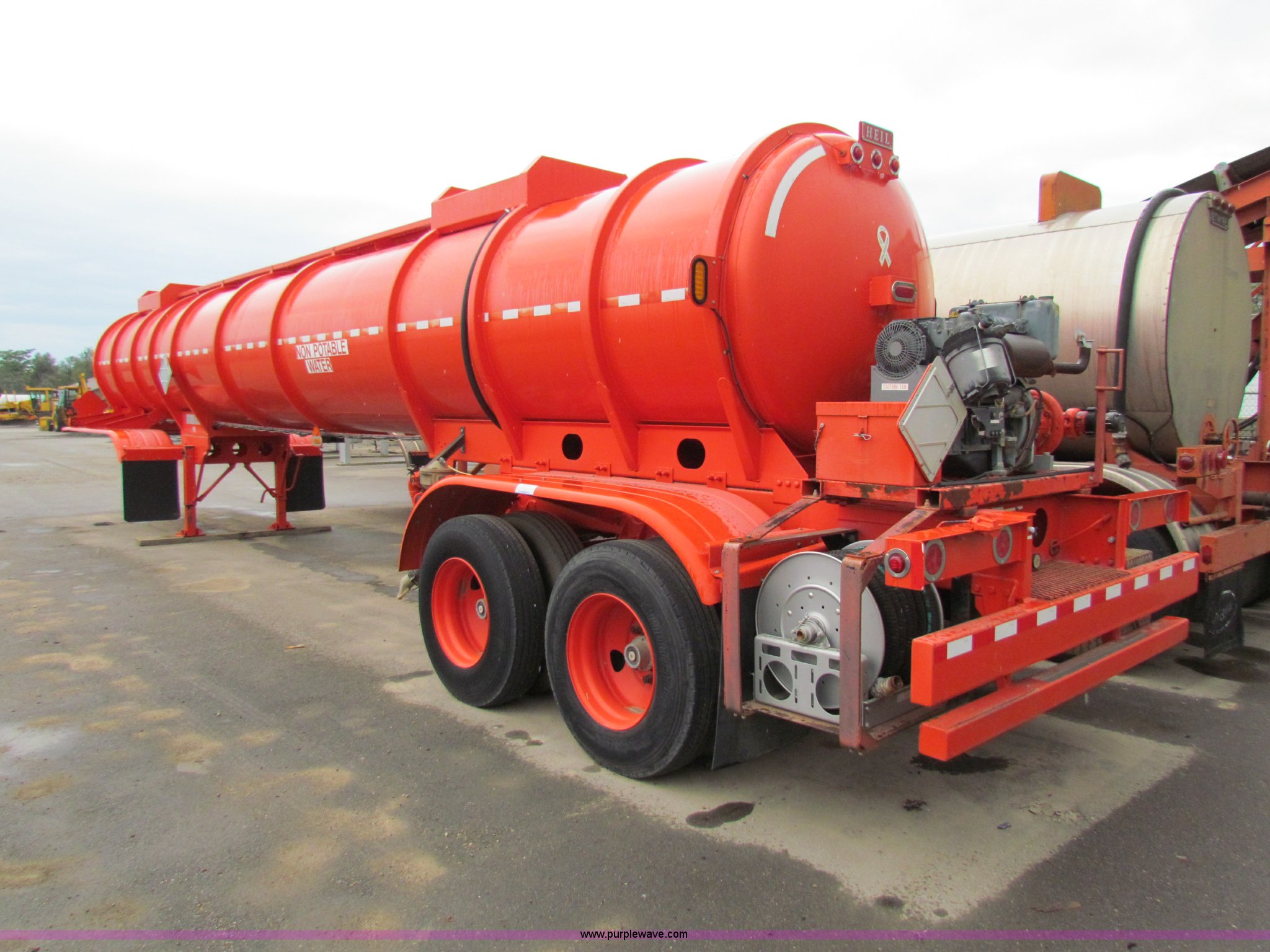Purple Wave is selling a used Tank Trailer in Kansas. This item is a 2004 Heil 6000G water tanker trailer with the following: 160 hours on meter, 6,000 gallon, Deutz diesel engine, Pump and control system for multiple discharge applications, Air brakes, 11R22.5 tires, GVWR 65,000 lbs, KDOT ID E779-2013