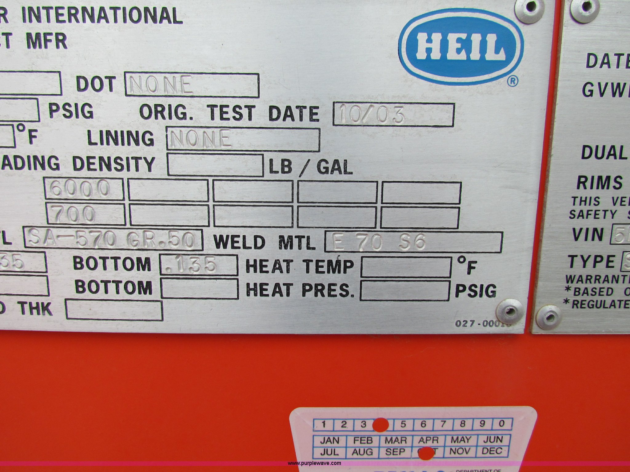 Take a look at this used 2004 Heil 6000G water tanker trailer being sold on November 20th, 2012 in the SOLD! November 20 Kansas Department of Transportation Auction made by Heil. Take a look at all of the item information below or take a look at similar auctions for Trailers.