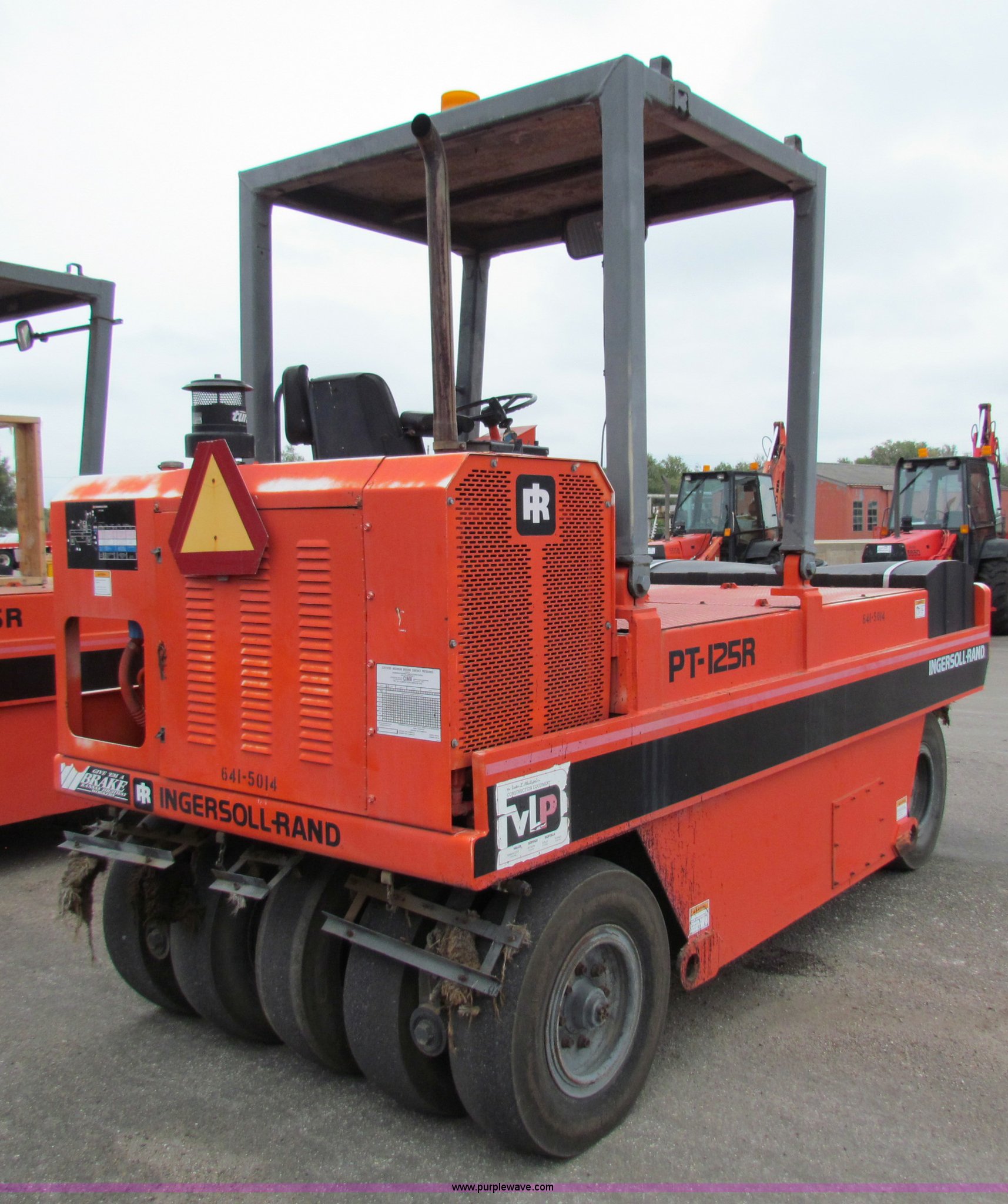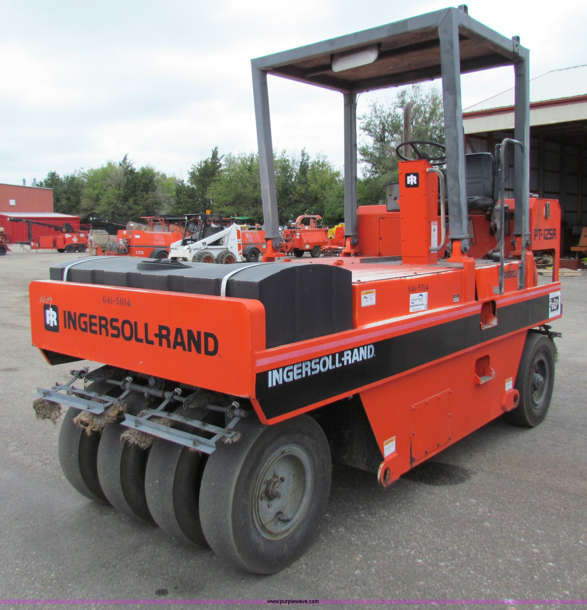 Purple Wave is selling a used Pneumatic Roller in Kansas. This item is a 1994 Ingersoll Rand PT125R pneumatic roller with the following: 304 hours on meter, John Deere 4039 I4 diesel engine, Sunstrand hydrostatic transmission, Poly water tank, Front and rear water distribution, 7.50-15NHS tires, 12 ton base operating weight, Serial 6103, KDOT ID 641-5014