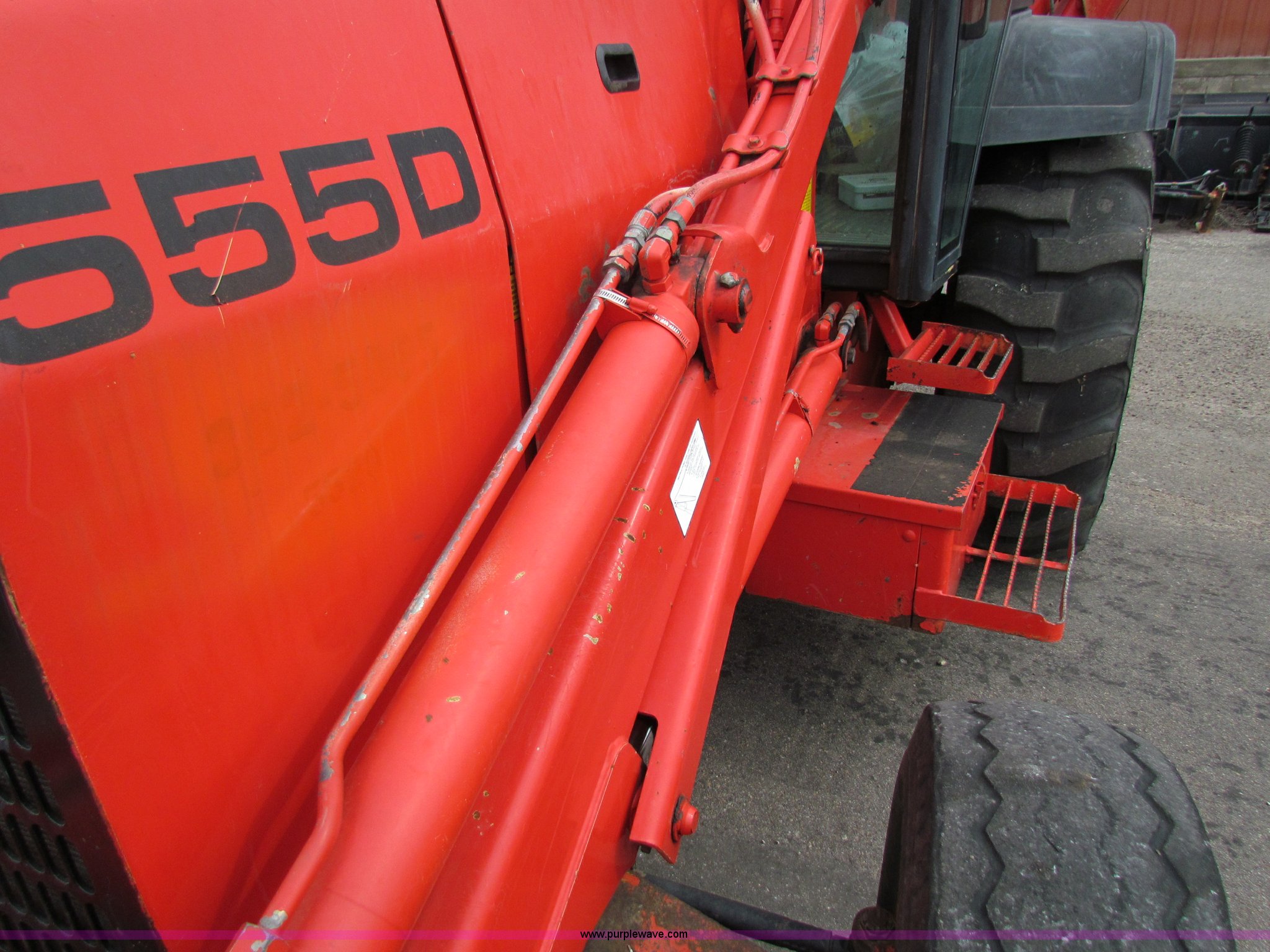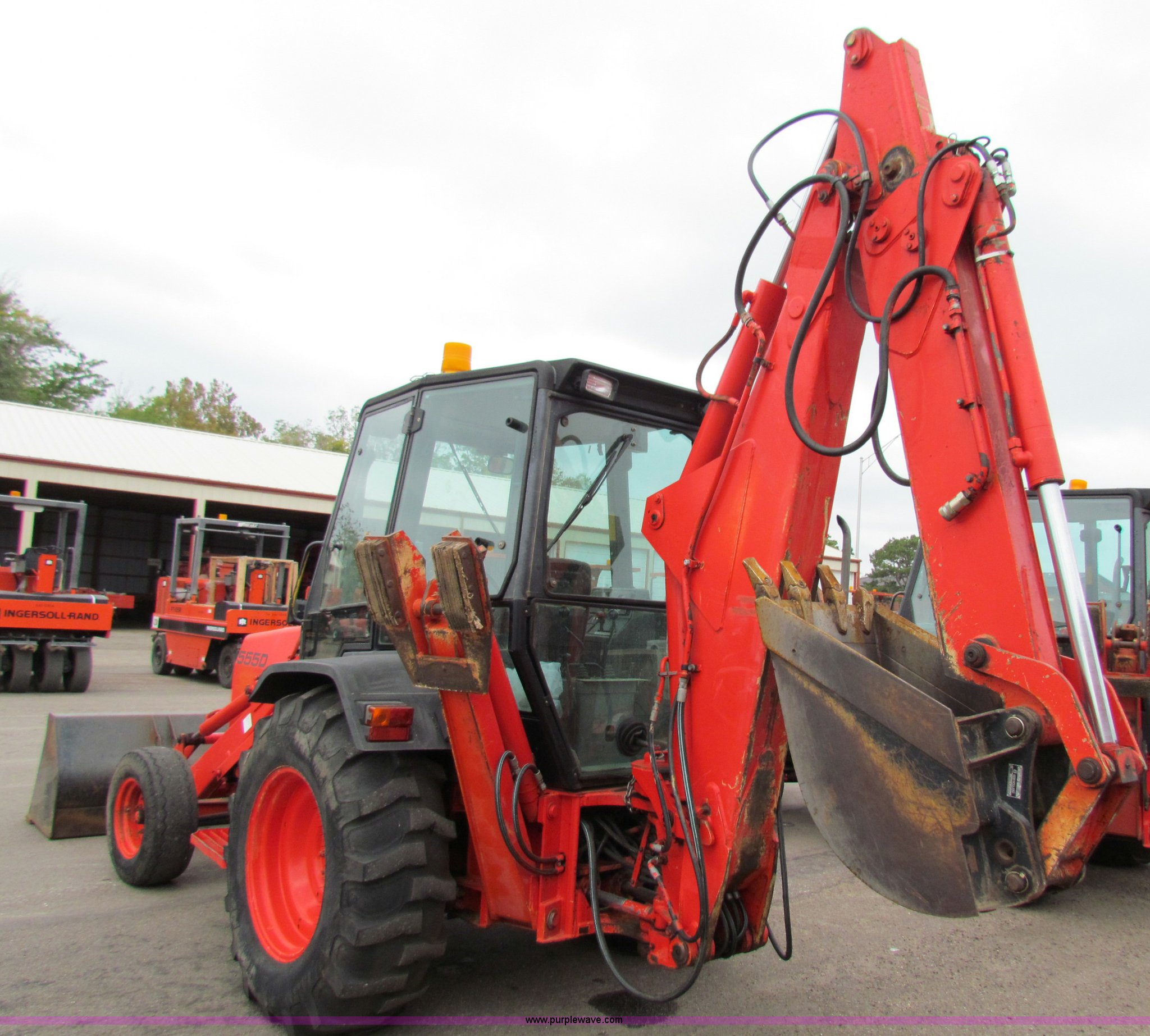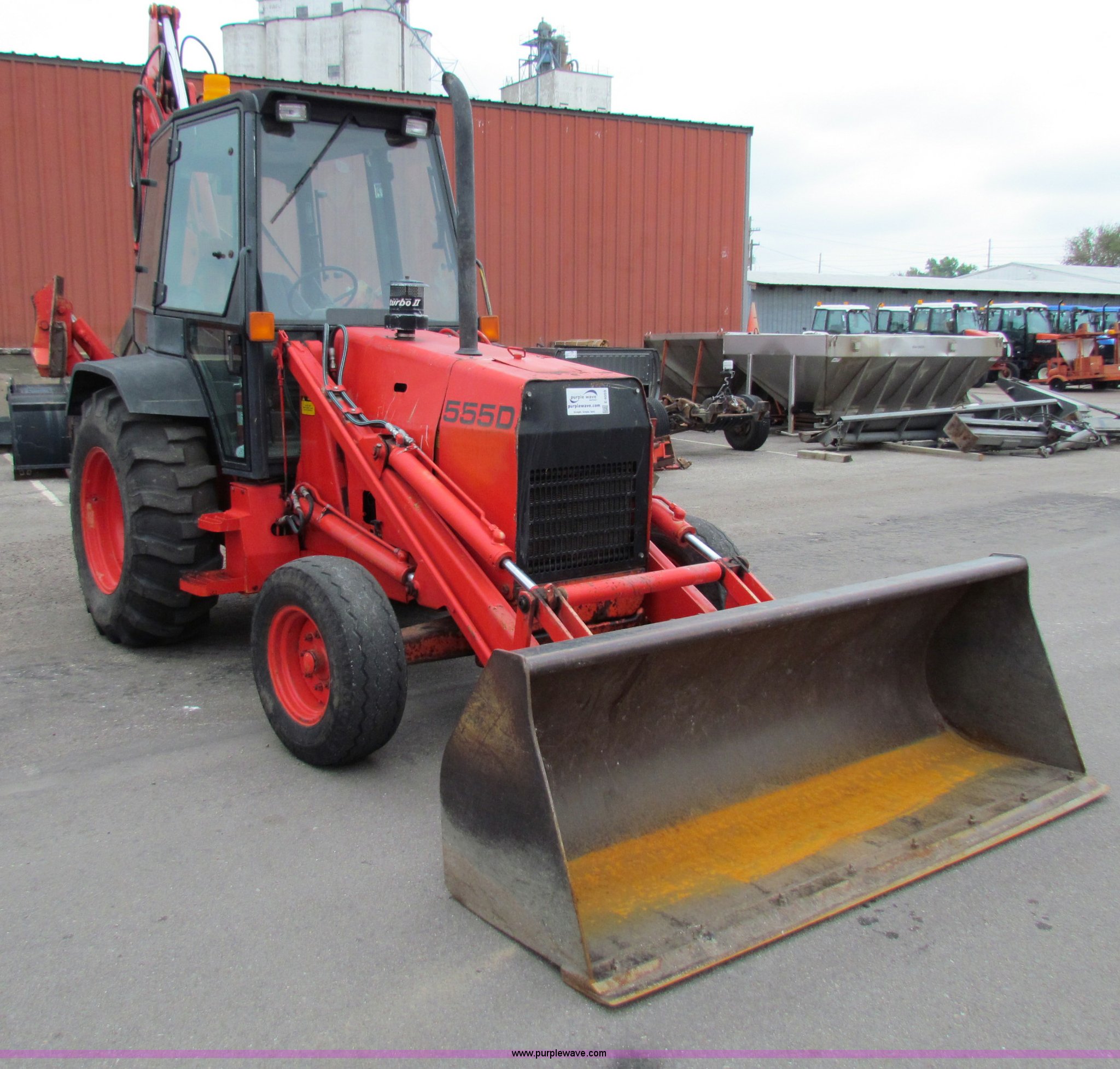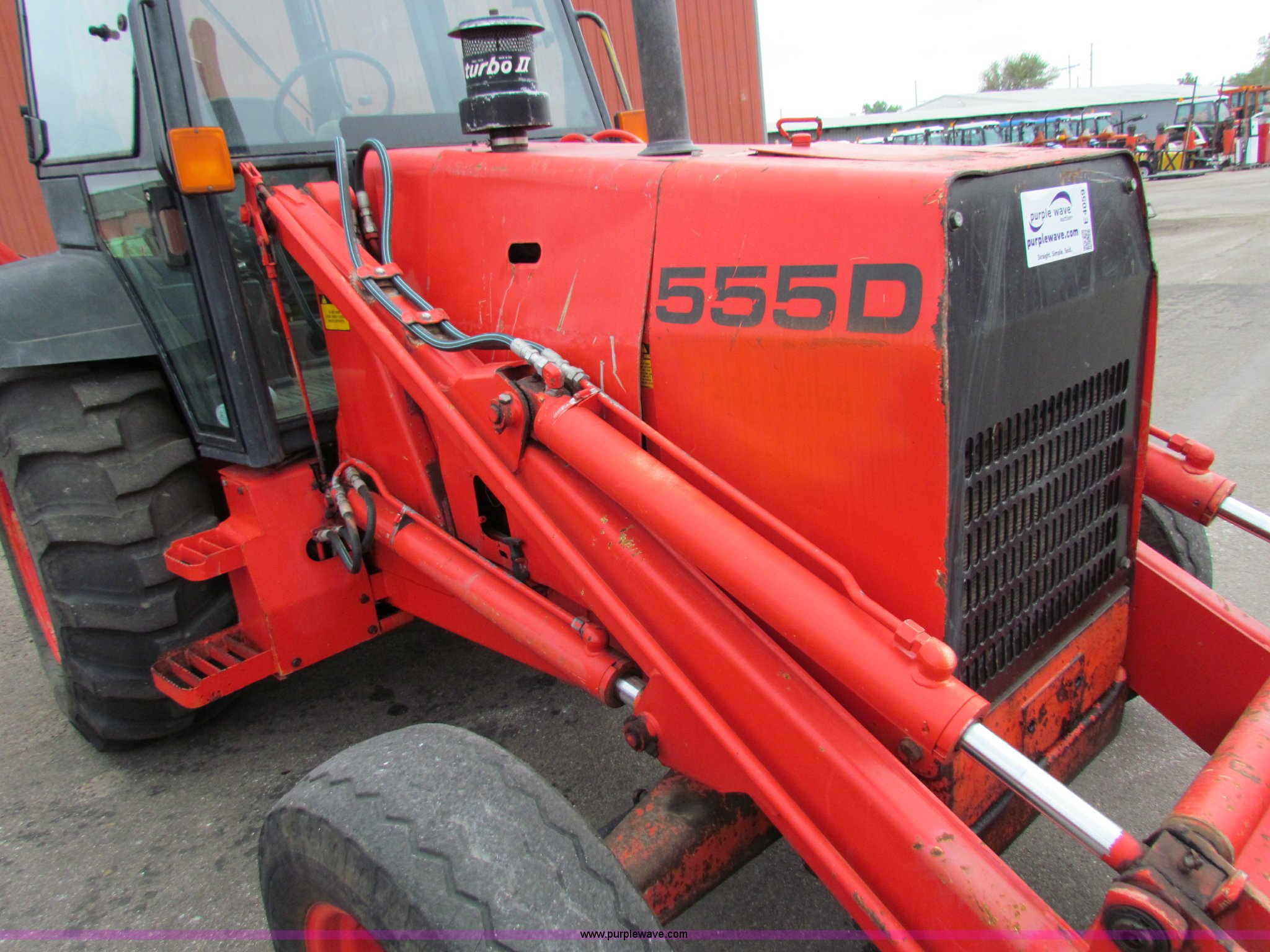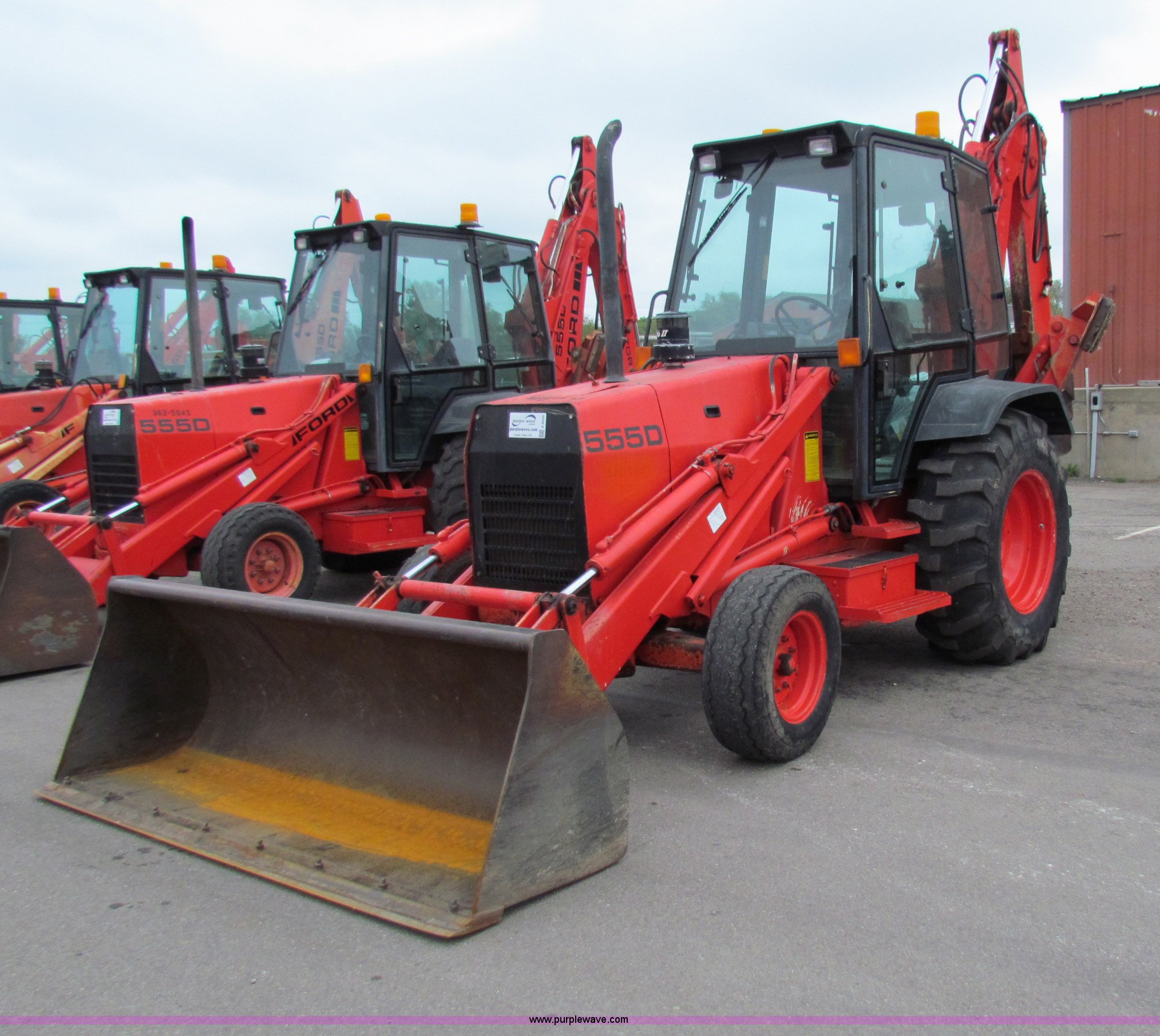 Purple Wave is selling a used Tractor Loader Backhoe in Kansas. This item is a 1996 Ford 555D backhoe with the following: 3,902 hours on meter, Ford diesel engine, Four speed shuttle shift transmission, Enclosed cab, Suspension seat, Front and rear windshield wipers, Front and rear work lights, Single stick loader control, Two stick backhoe control, 88" loader bucket, Bolt-on edge, 23" four tooth backhoe bucket, Extendable dipper stick, Plumbed for hydraulic attachment, 21" stabilizer pads, 11L-16 front tires, 16.9-28 rear tires, Right outrigger damaged, Hydraulic leaks, Hole in stabilizer cylinder, Serial A437062, KDOT ID E362-5065