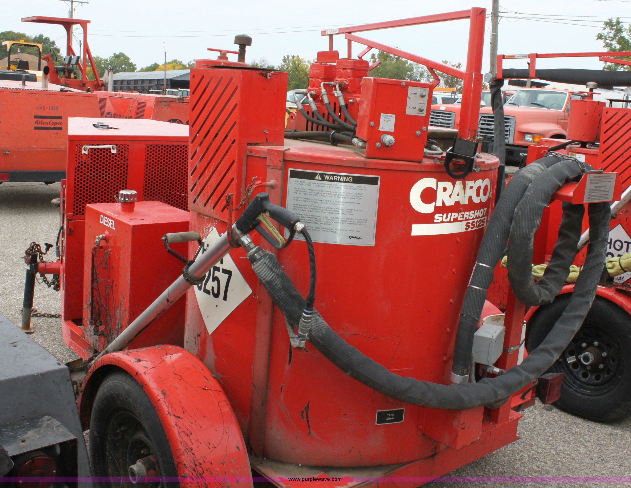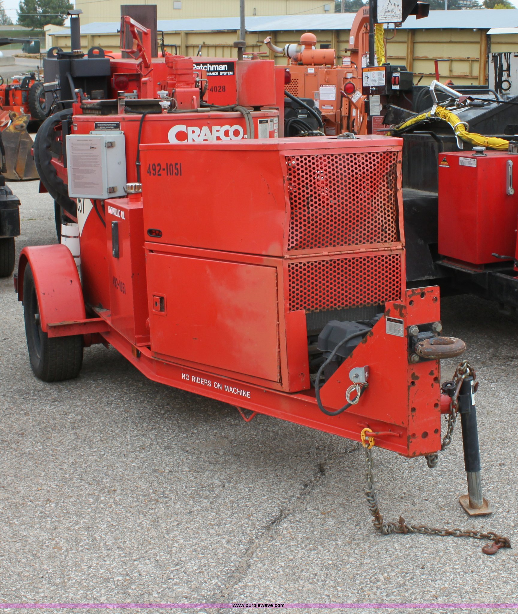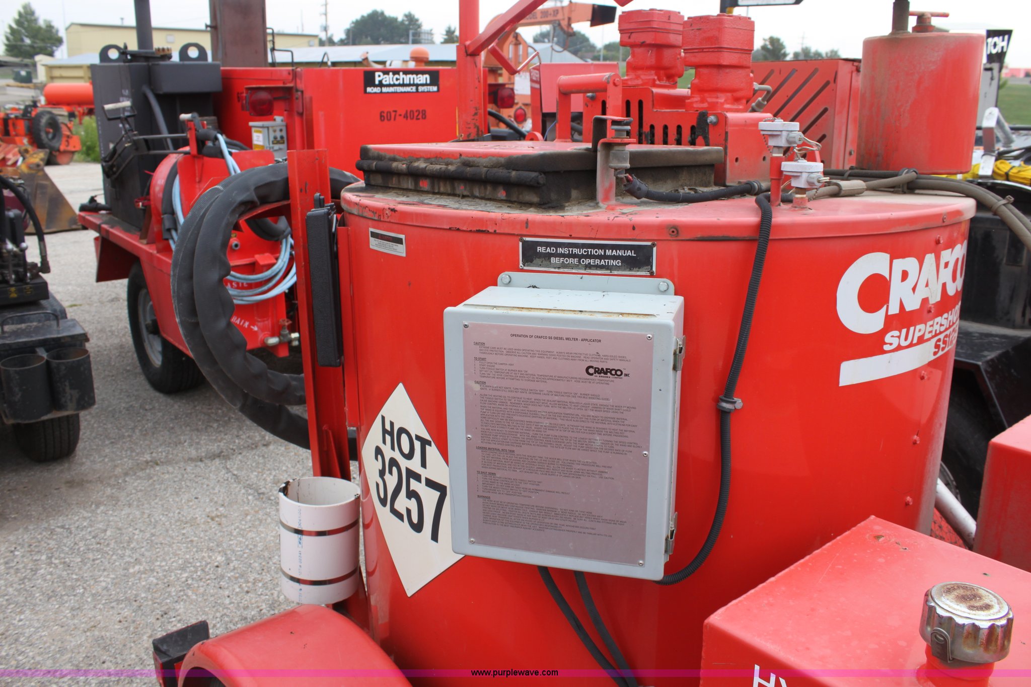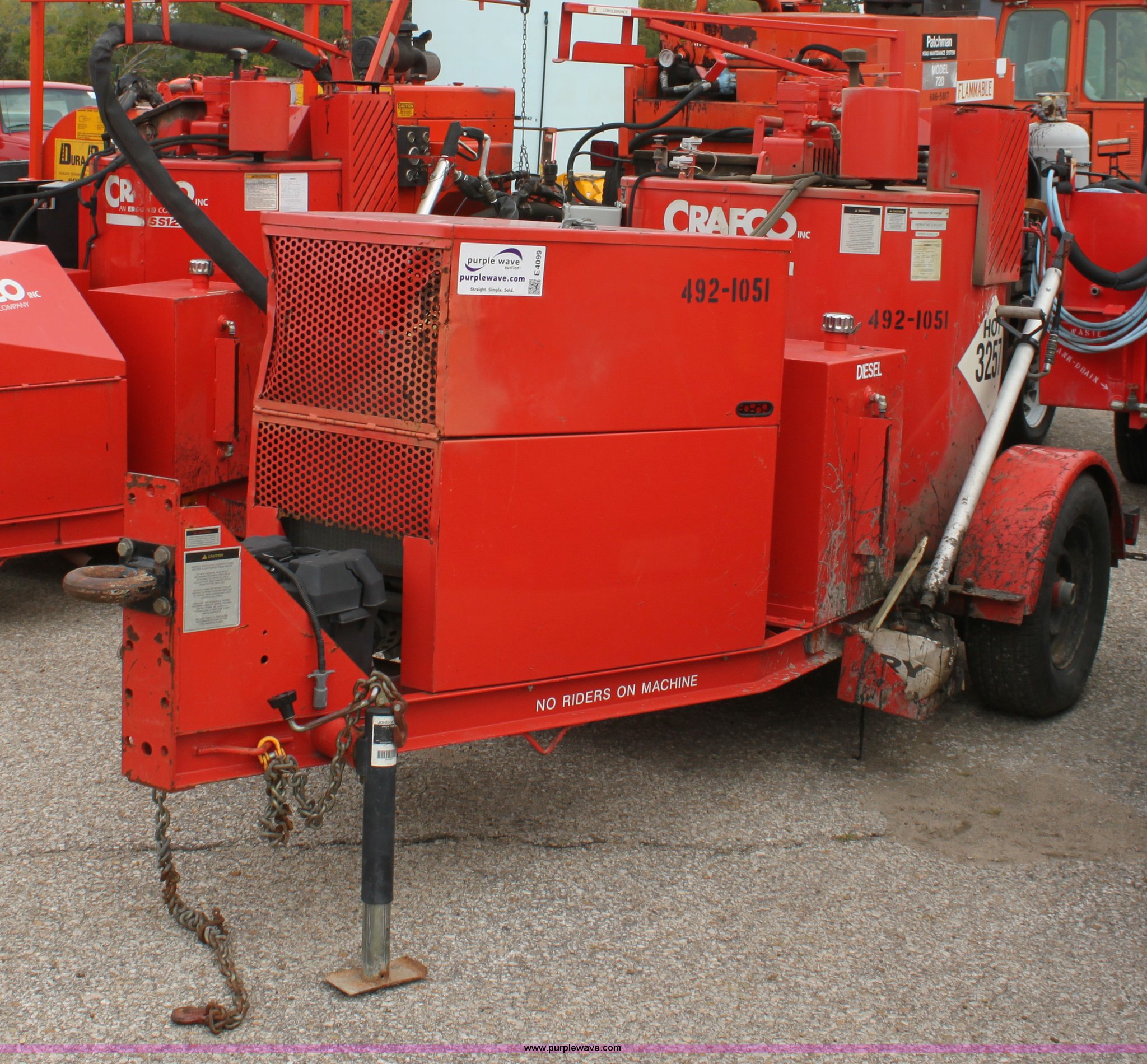 Purple Wave is selling a used Pot Hole Patcher in Kansas. This item is a 2001 Craft Co SS-125 crack seal machine with the following: 811 hours on meter, Isuzu three cylinder diesel engine, 25 HP, Heated hose, Short hitch, Adjustable pintle hitch, KDOT ID E492-1051