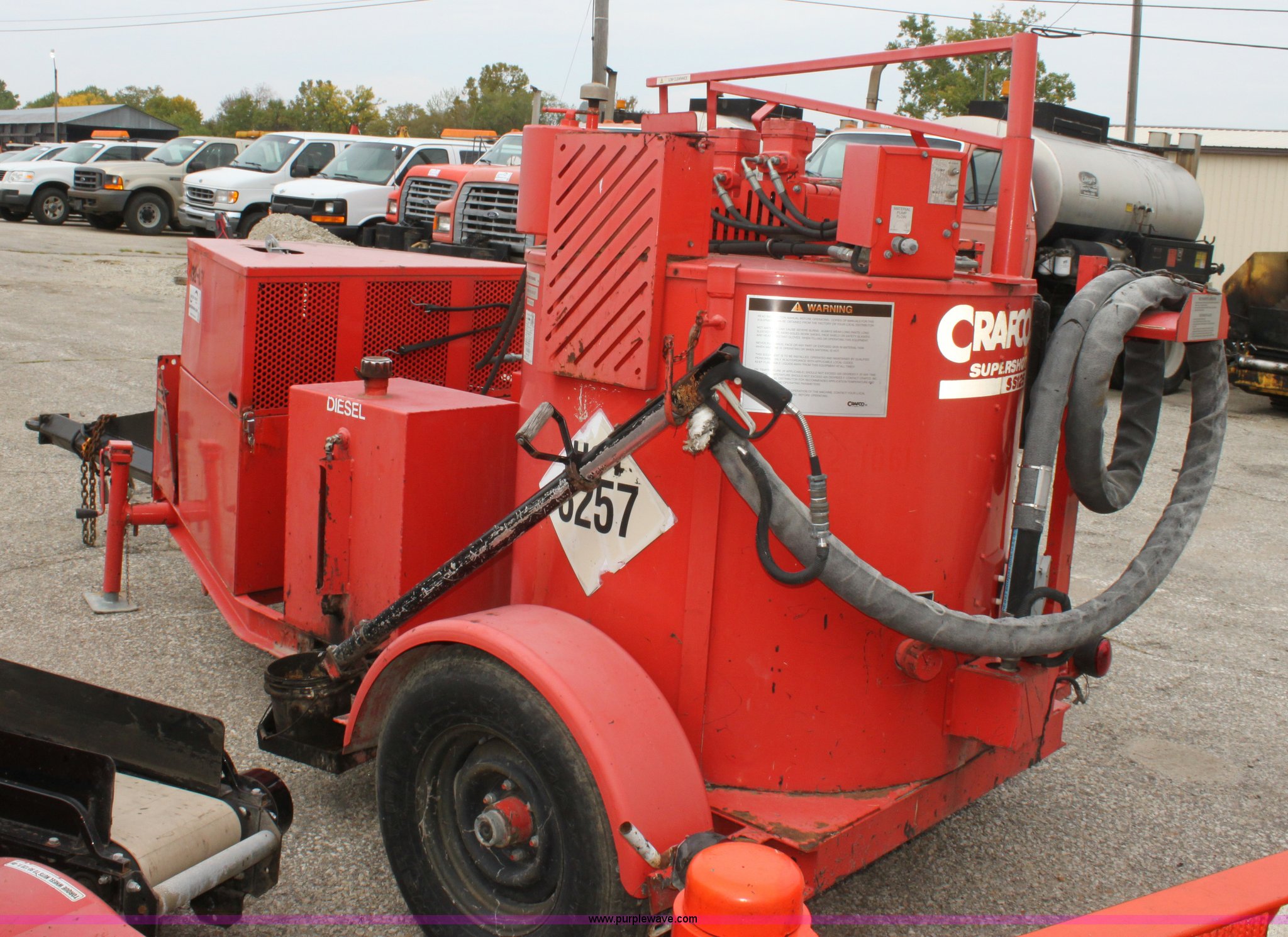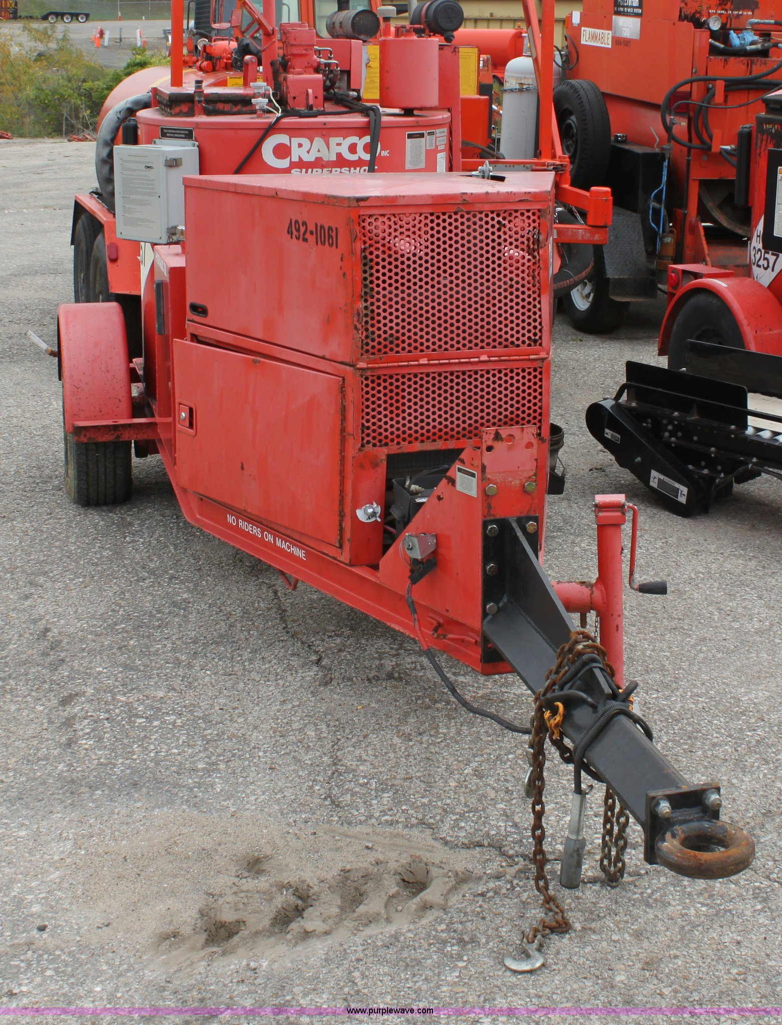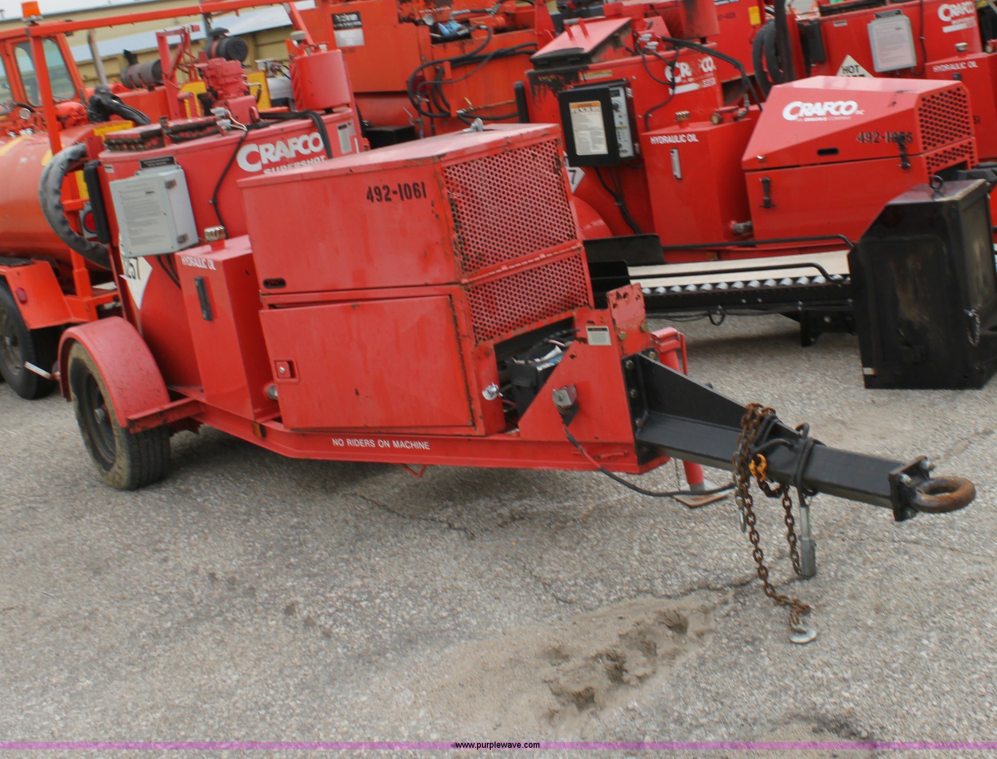 2001 Craft Co SS-125 crack seal machine. 1,134 hours on meter, Isuzu three cylinder diesel engine 25 HP, Heated hose, Extended hitch, Pintle hitch, Materials temp. gauge non-functional, KDOT ID E492-1061. 1C9SY101611418245. Shipping quotes available. KDOT - Topeka. 101 Gage Blvd. Topeka, KS 66606