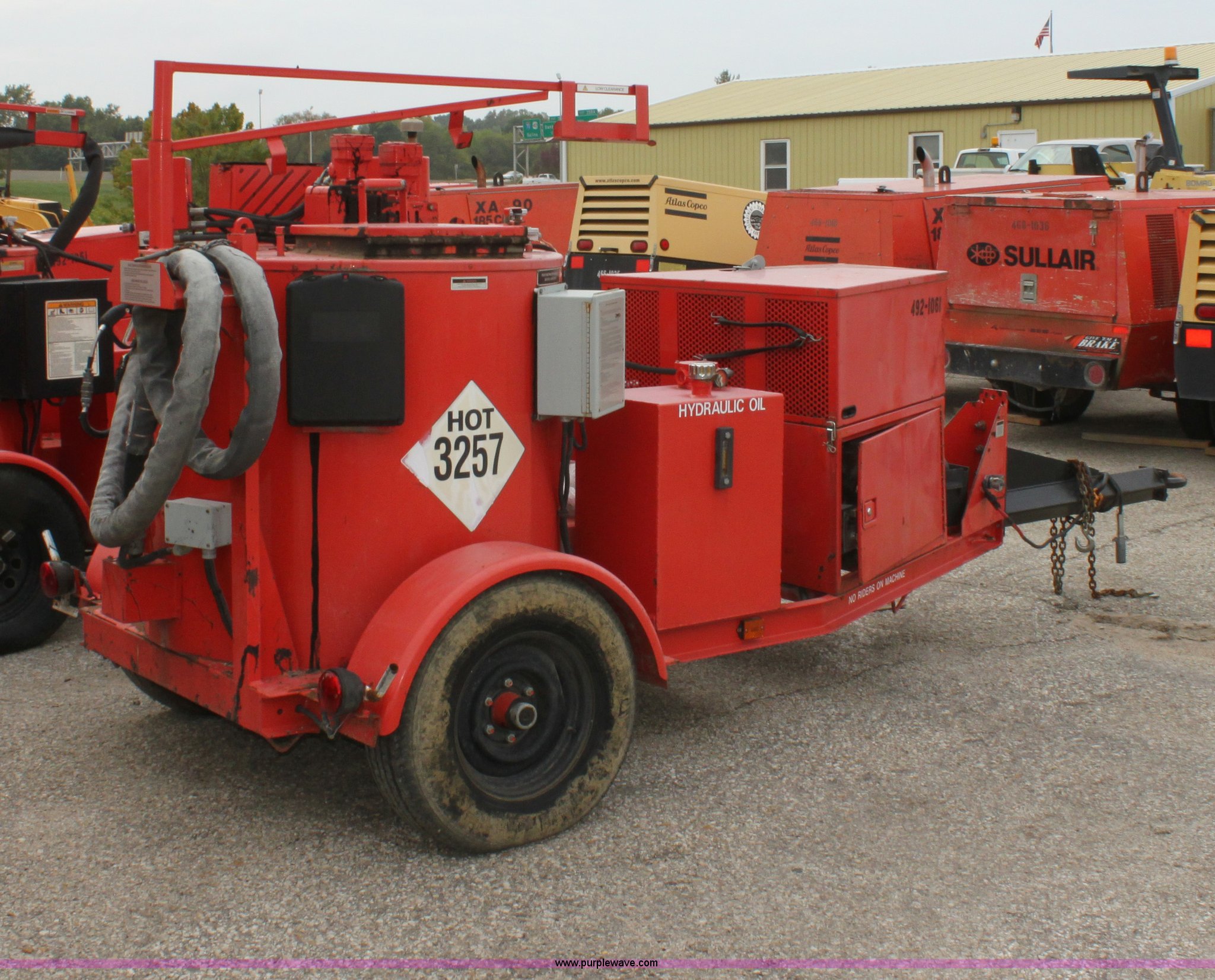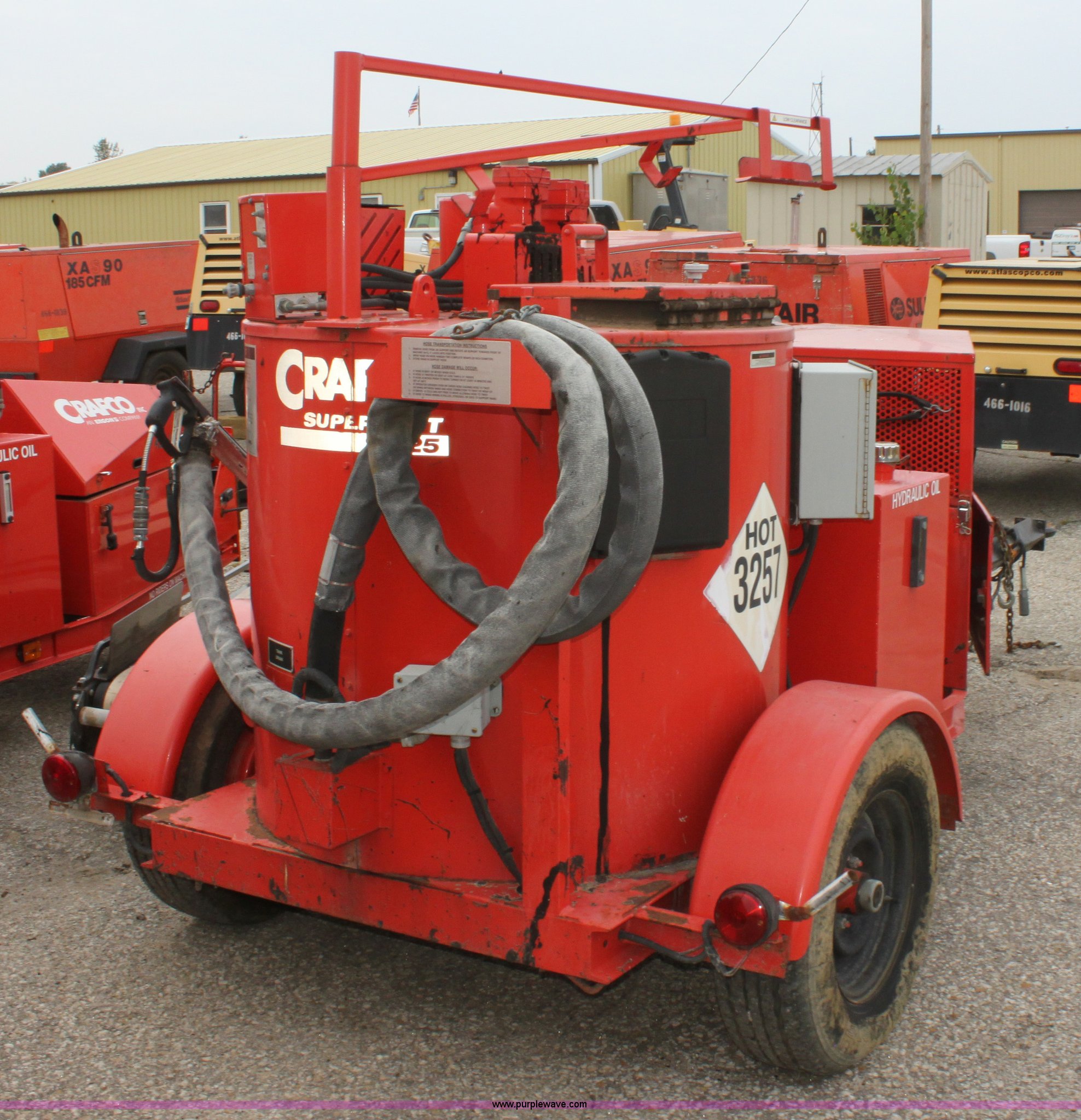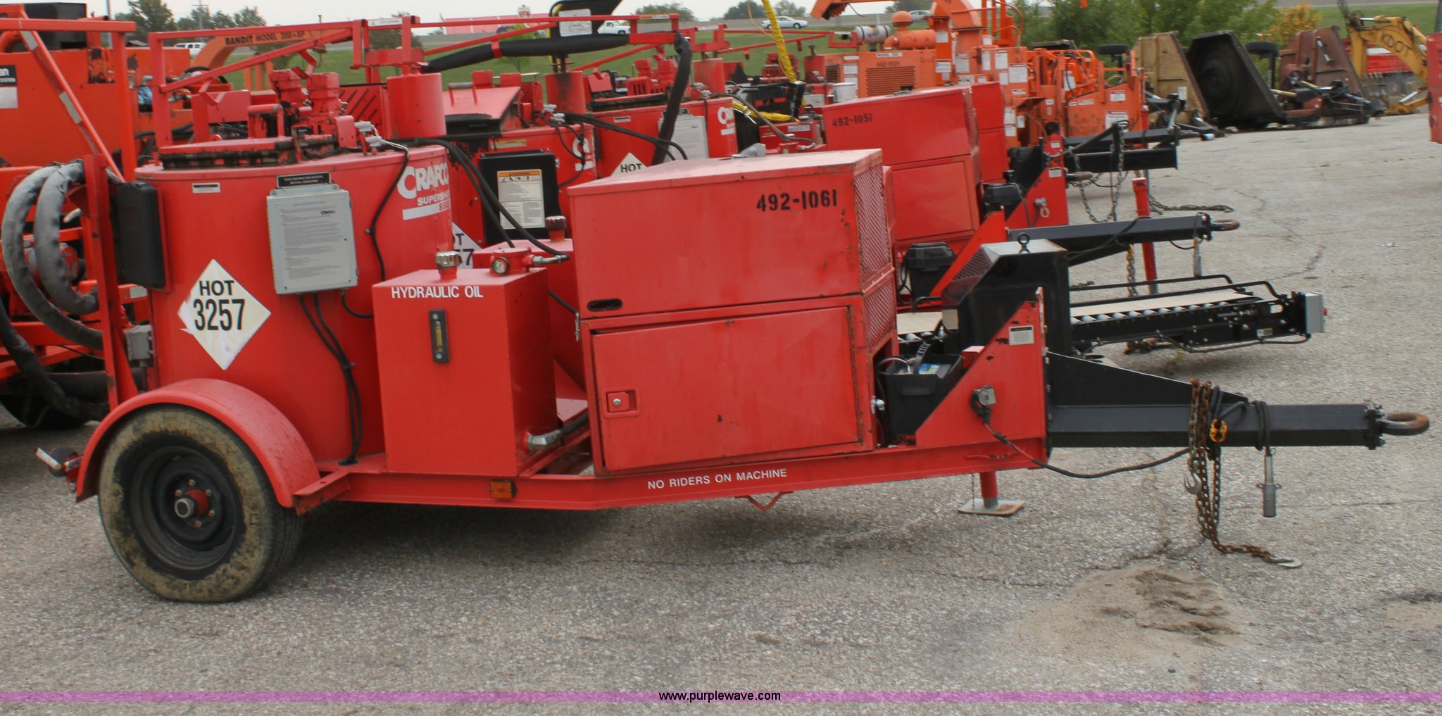 Purple Wave is selling a used Pot Hole Patcher in Kansas. This item is a 2001 Craft Co SS-125 crack seal machine with the following: 1,134 hours on meter, Isuzu three cylinder diesel engine, 25 HP, Heated hose, Extended hitch, Pintle hitch, Materials temp. gauge non-functional, KDOT ID E492-1061