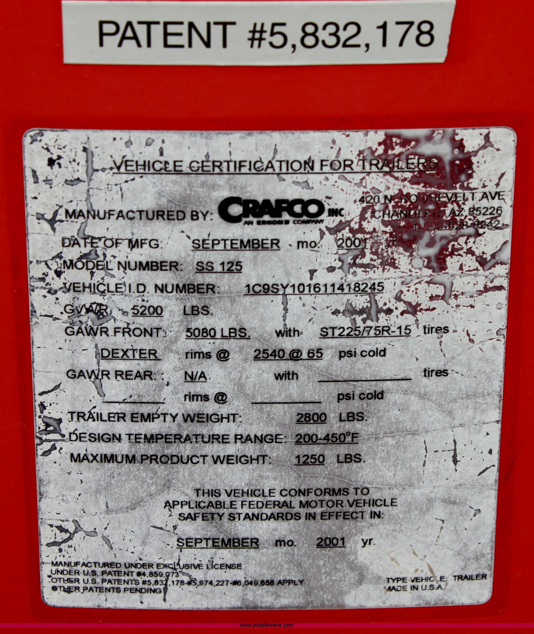 2001 Craft Co SS-125 crack seal machine has sold in Topeka, Kansas for $10340. Item E4101 sold on November 20th, 2012.