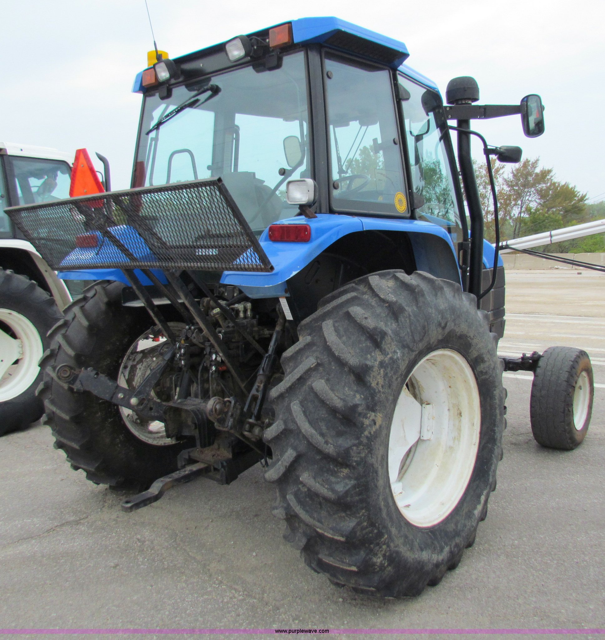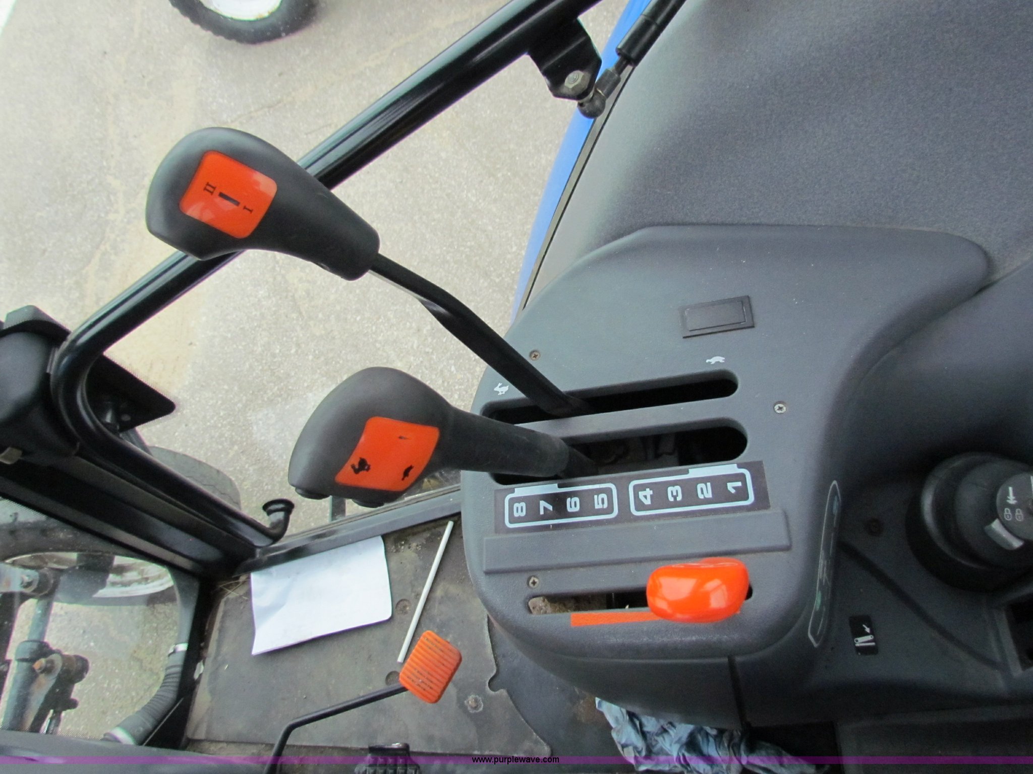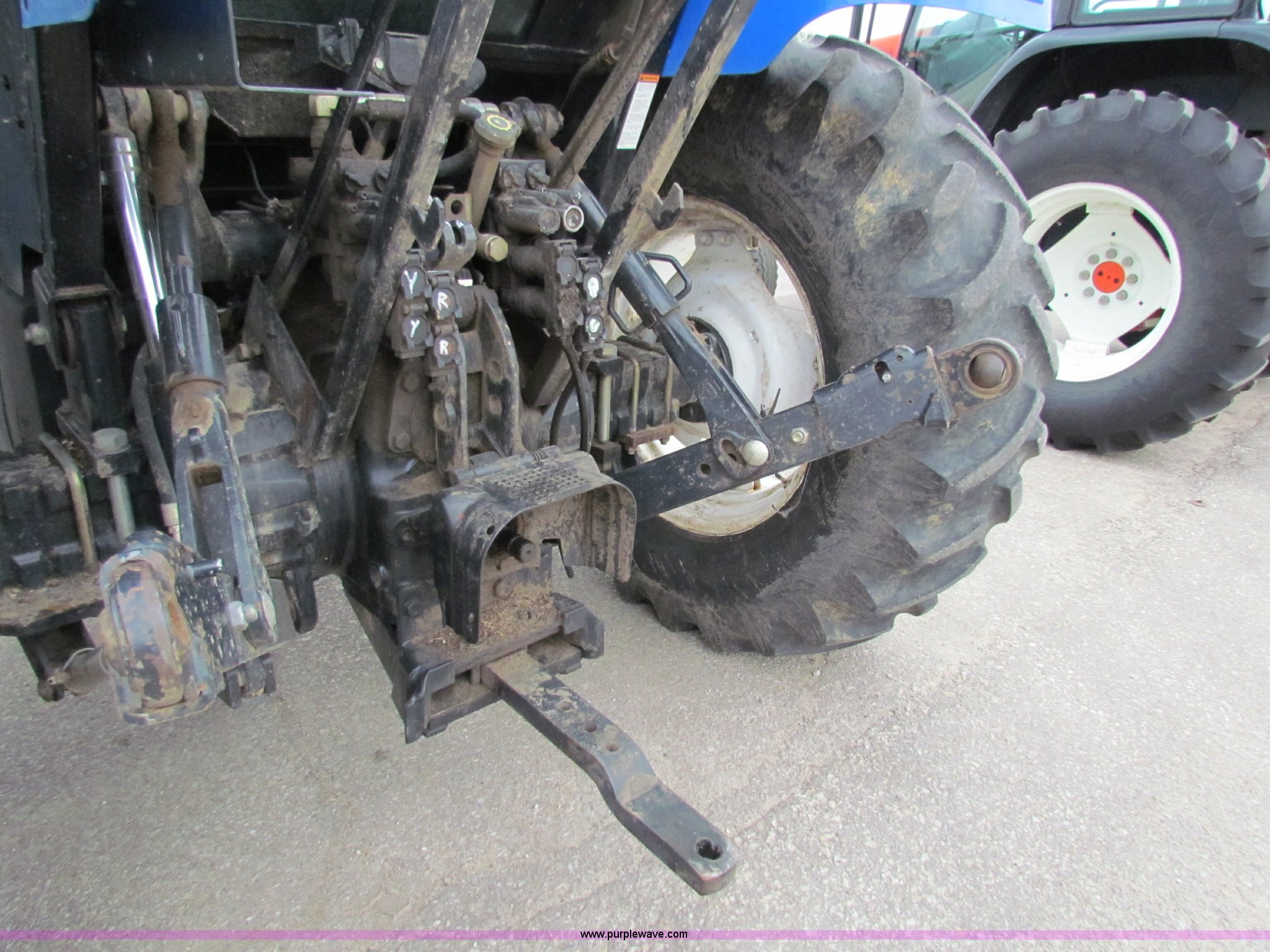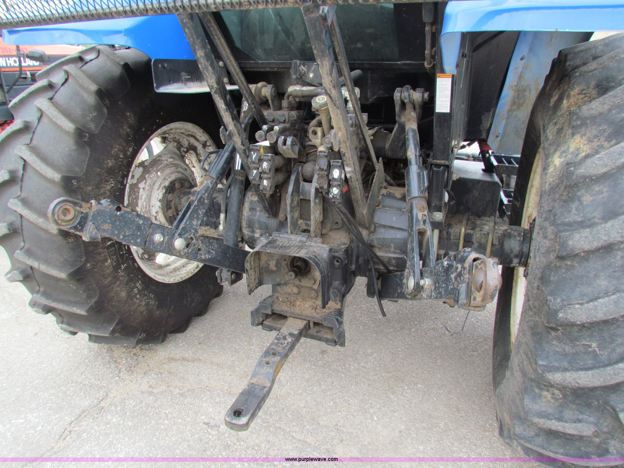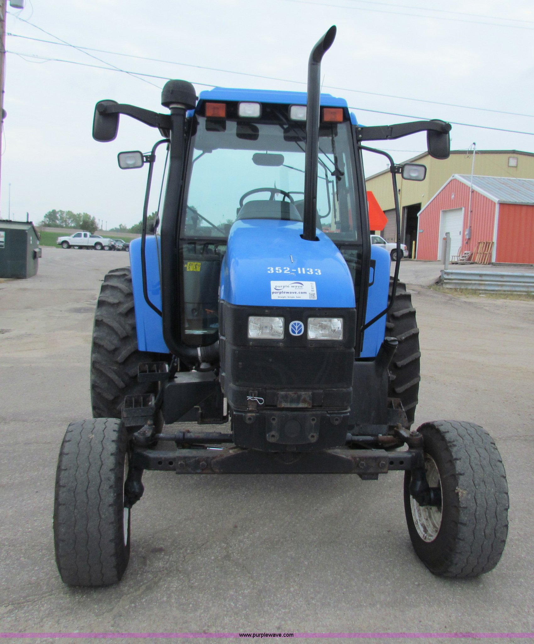 Purple Wave is selling a used Tractor in Kansas. This item is a 2003 Ford TS100 tractor with the following: 2,417 hours on meter, Four cylinder diesel engine, 80 HP, Shuttle shift transmission, Locking differential, Enclosed cab, AC and heat, AM/FM, Suspension seat, Front and rear windshield wipers, (4) hydraulic remote sets, Three point, Missing top link, Draw bar, Rear brush guard, Wobble stick loader control, 11L-16SL front tires, 18.4-30 rear tires, Transmission issues, no forward gears, Serial 206733B, KDOT ID E352-1133