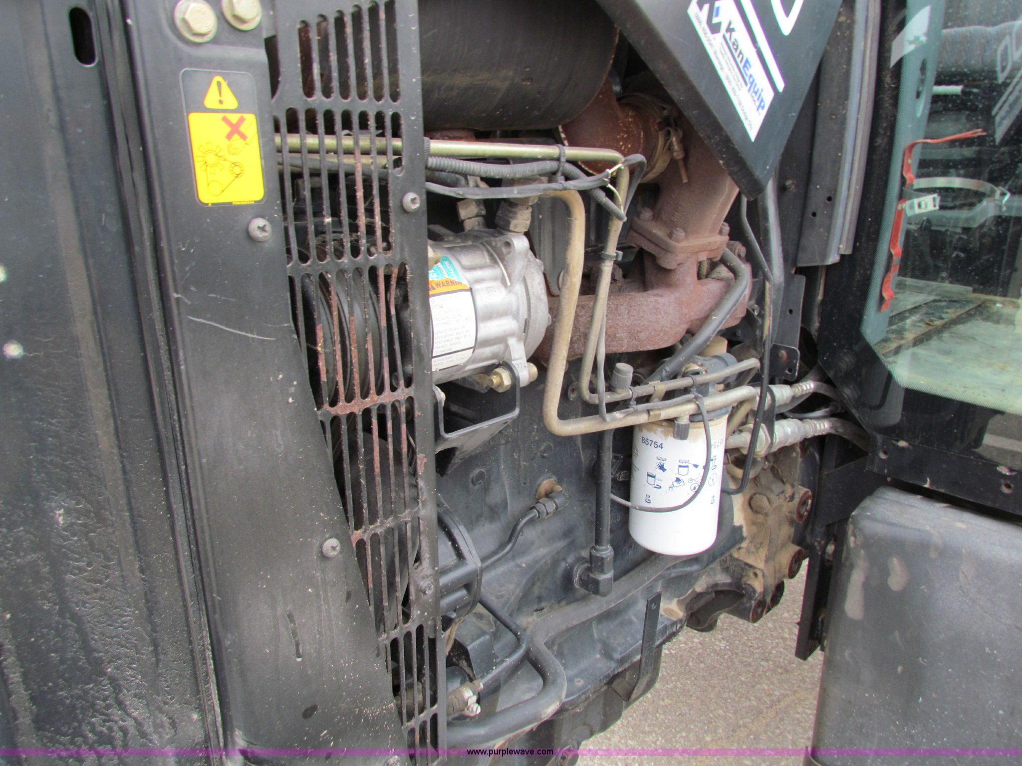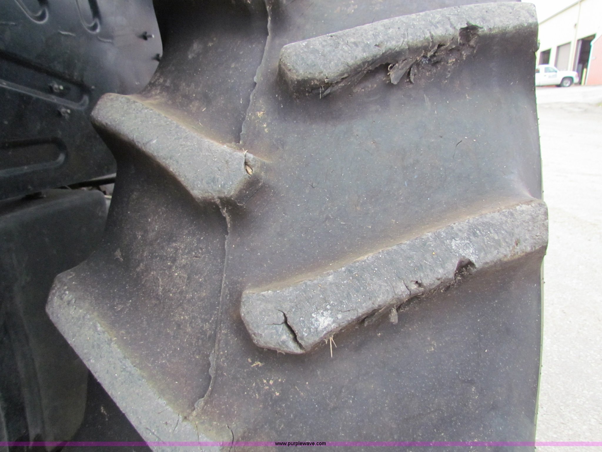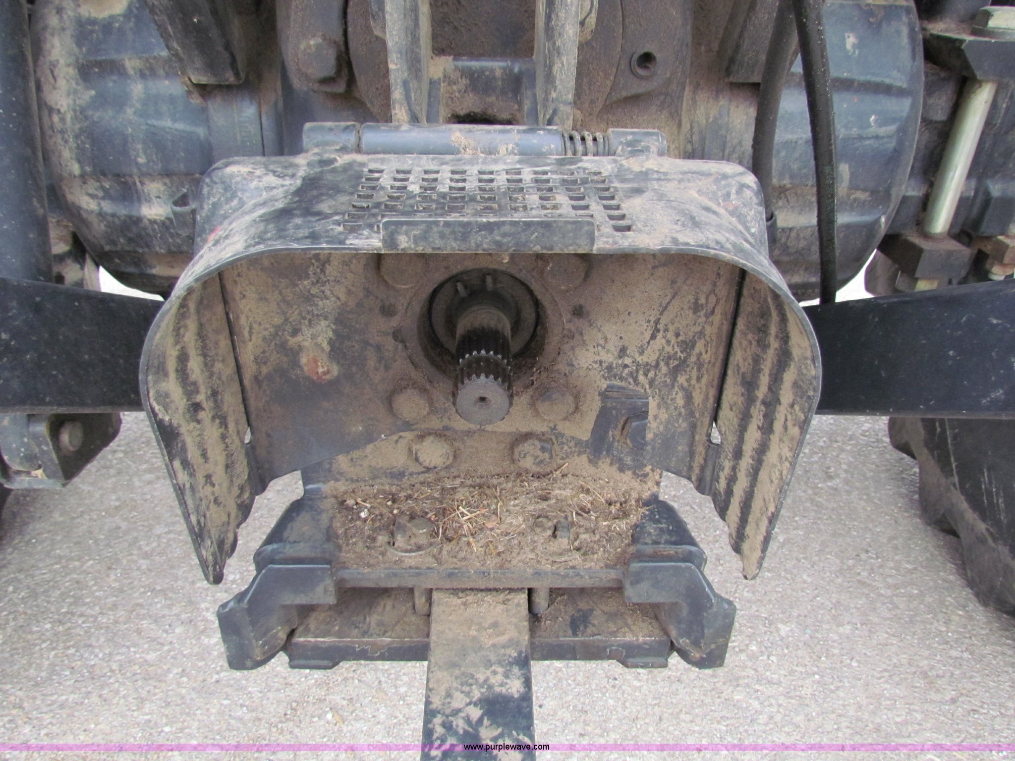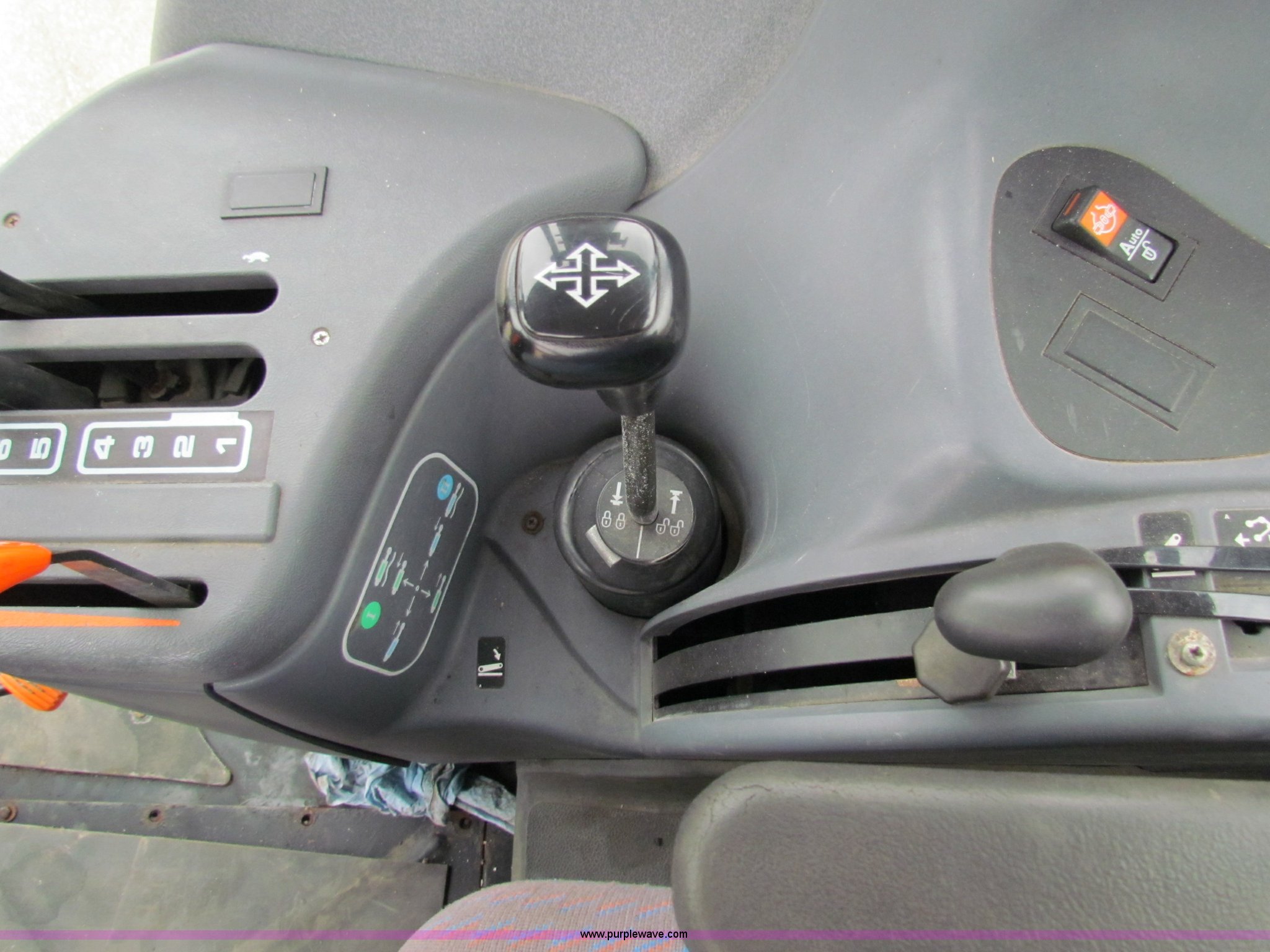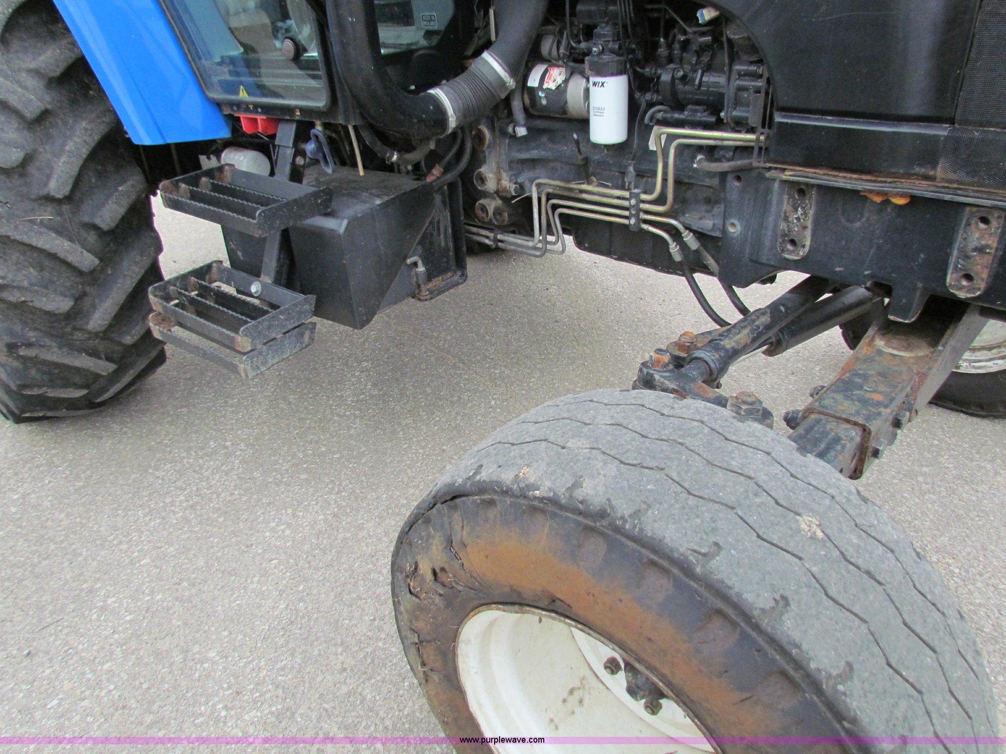 Purple Wave is selling a used Tractor in Kansas. This item is a 2003 Ford TS100 tractor with the following: 2,417 hours on meter, Four cylinder diesel engine, 80 HP, Shuttle shift transmission, Locking differential, Enclosed cab, AC and heat, AM/FM, Suspension seat, Front and rear windshield wipers, (4) hydraulic remote sets, Three point, Missing top link, Draw bar, Rear brush guard, Wobble stick loader control, 11L-16SL front tires, 18.4-30 rear tires, Transmission issues, no forward gears, Serial 206733B, KDOT ID E352-1133