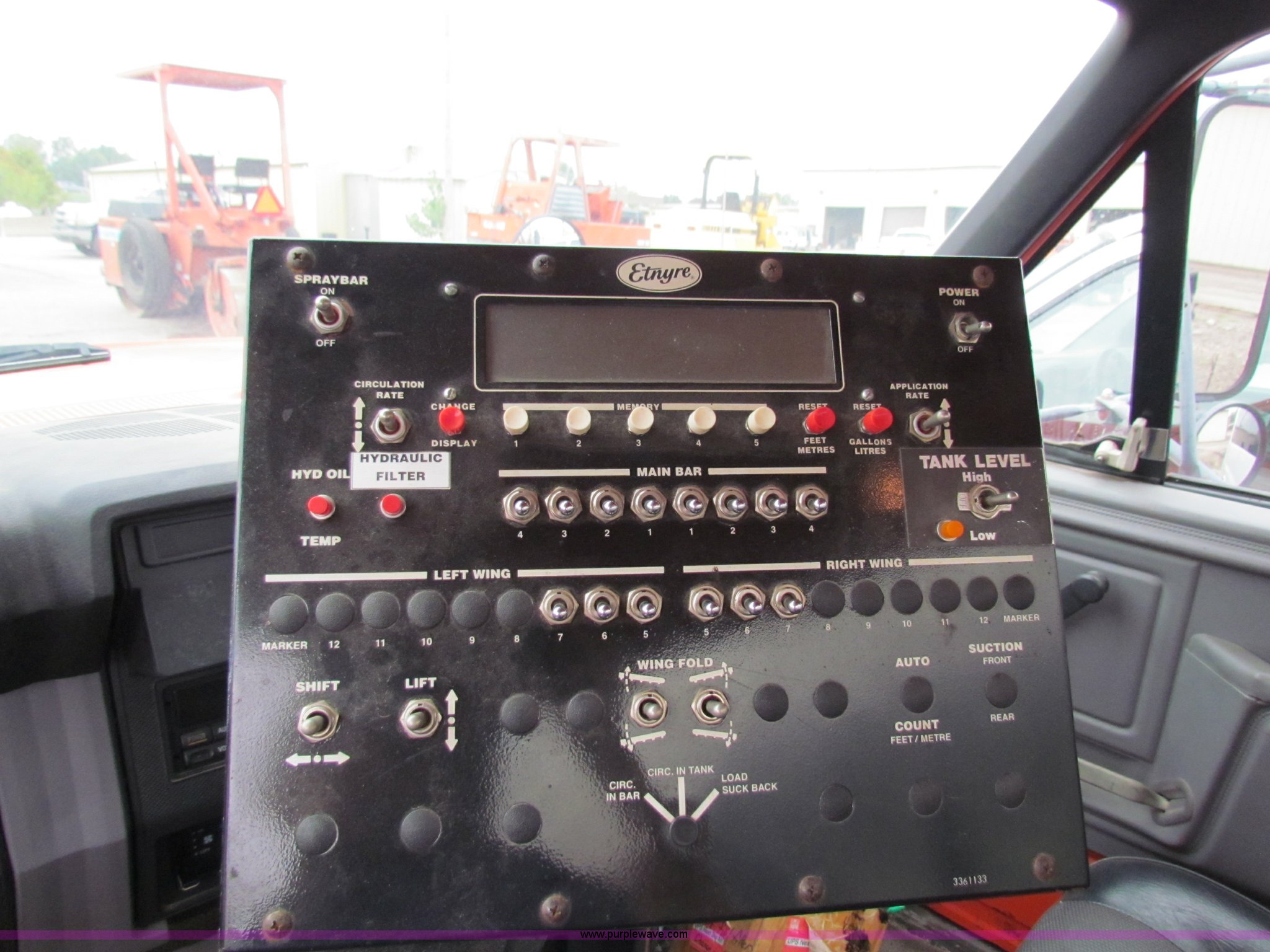 Purple Wave is selling a used Oil Distributor Truck in Kansas. This item is a 1998 Ford F800 oil distributor truck with the following: 21,323 miles on odometer, 1,450 hours on meter, Cummins ISB 5.9L diesel engine, MT653 transmission, 1,000 gallon tank, Etnyre oil distributor system, Rear step bent, KDOT ID E517-1038