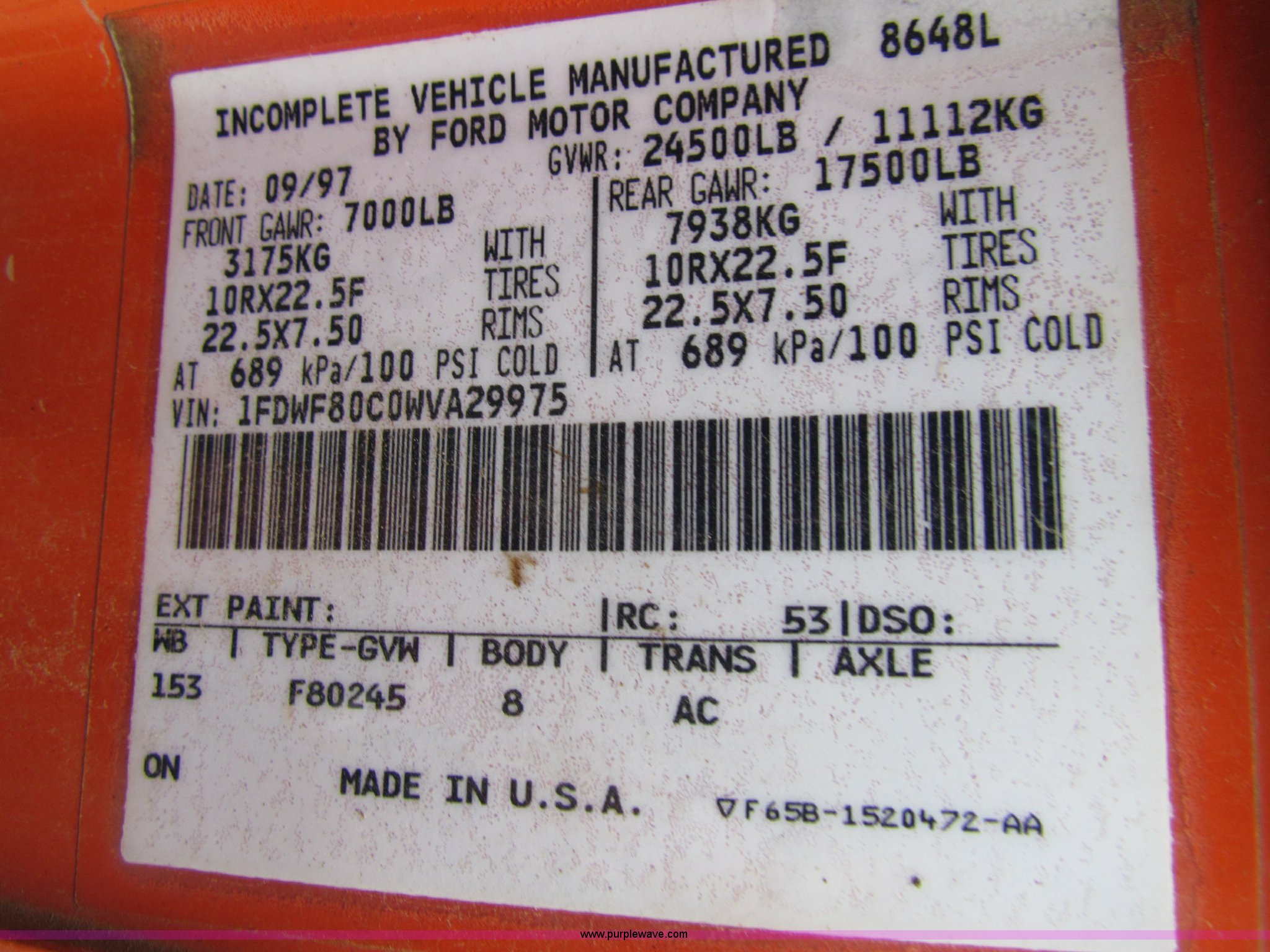 1998 Ford F800 oil distributor truck has sold in Topeka, Kansas for $29700. Item E4136 sold on November 20th, 2012.