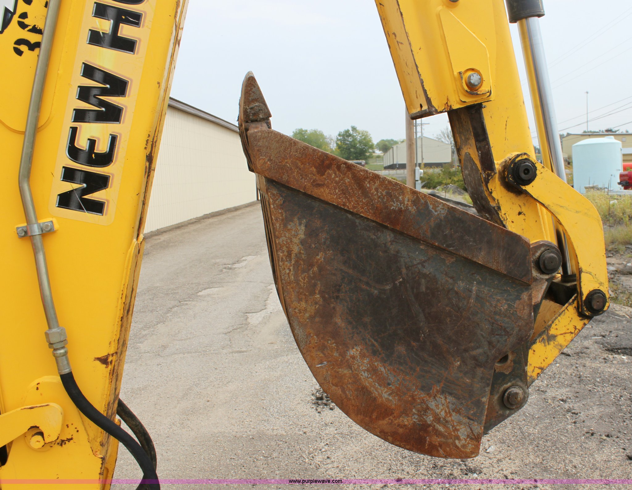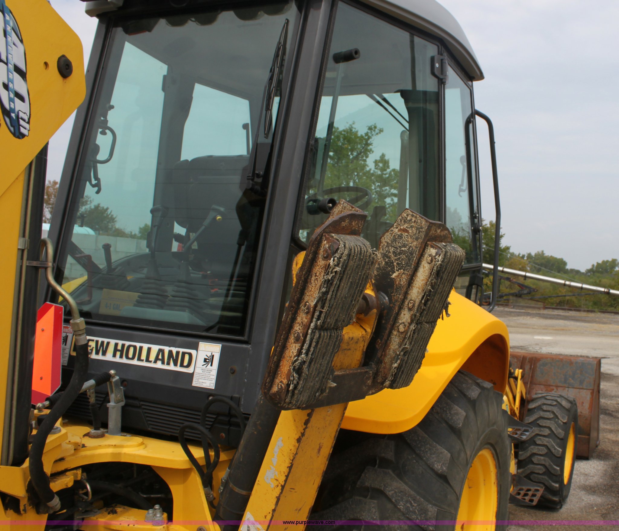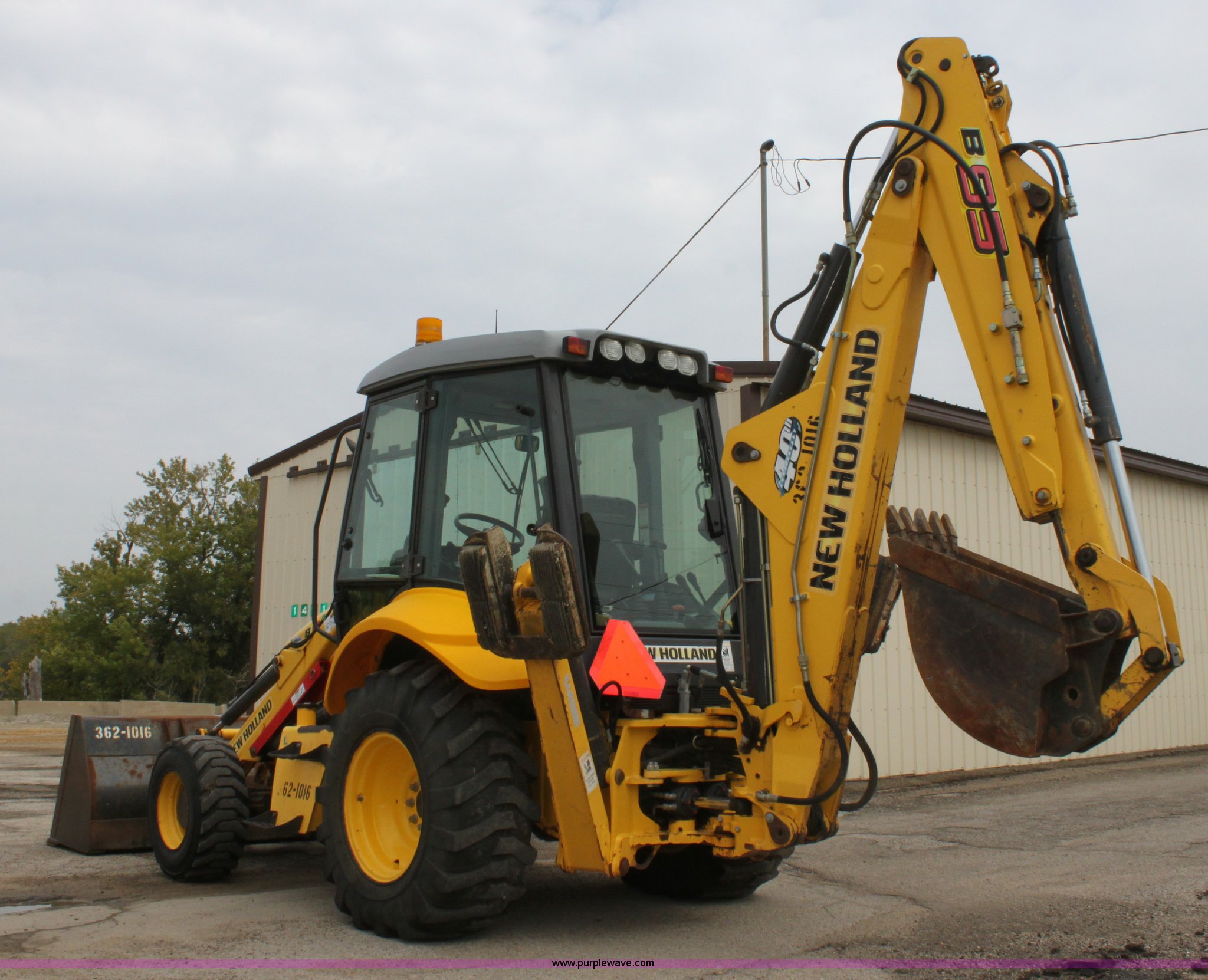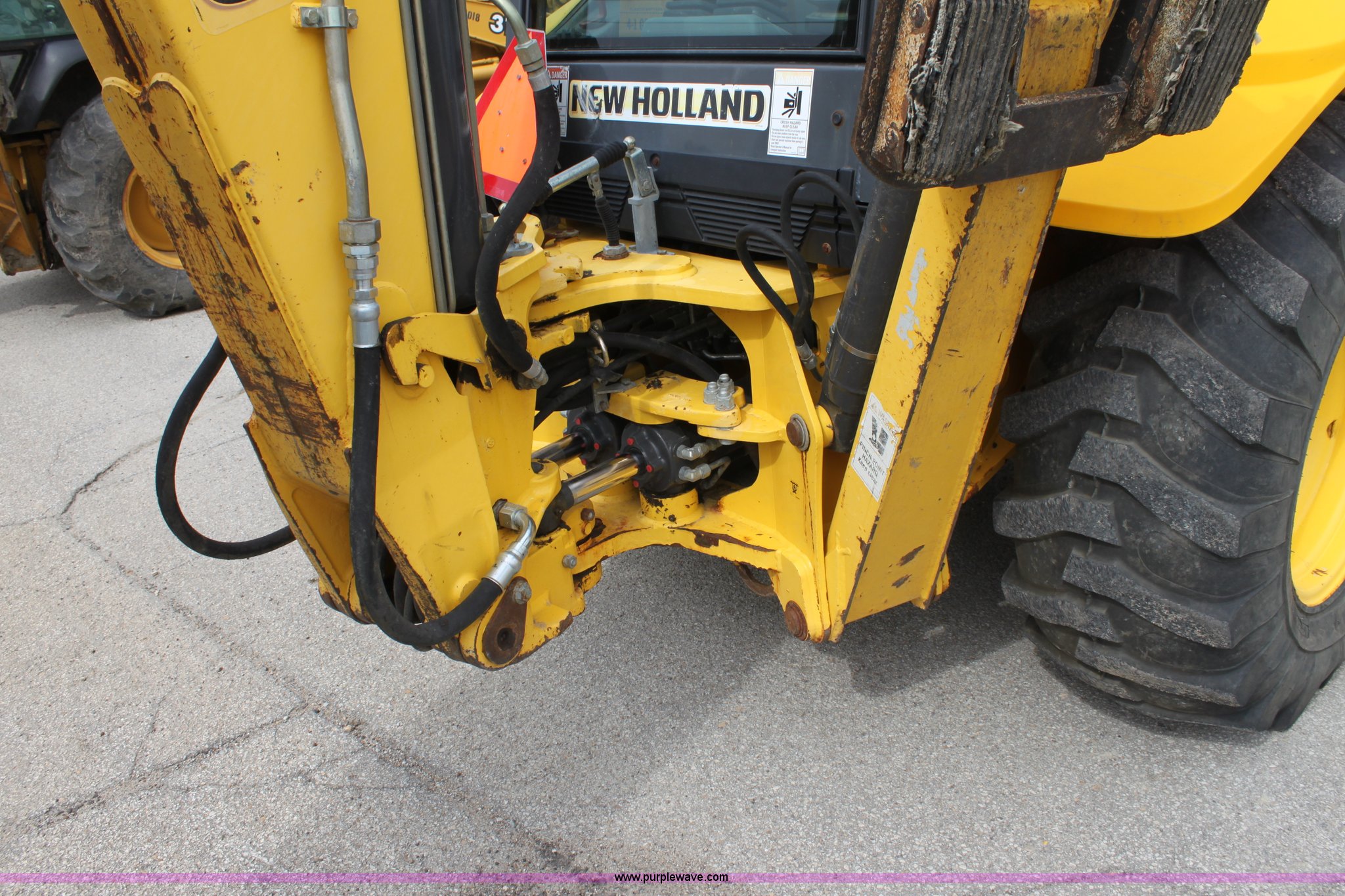 Purple Wave is selling a used Tractor Loader Backhoe in Kansas. This item is a 2006 New Holland B95 backhoe with the following: 986 hours on meter, Four cylinder diesel engine, 95 HP, Four speed shuttle shift transmission, Locking differential, AC and heat, Suspension seat, AM/FM/cassette, Wobble stick loader control, Two stick backhoe control, 3/4 cu. yd. loader bucket, 24" backhoe bucket, (5) teeth, 20" stabilizer pads, 12x16.5 front tires, 19.5L-24 rear tires, Severe rust on hood and broom attachment, Serial 031060893, KDOT ID E362-1016