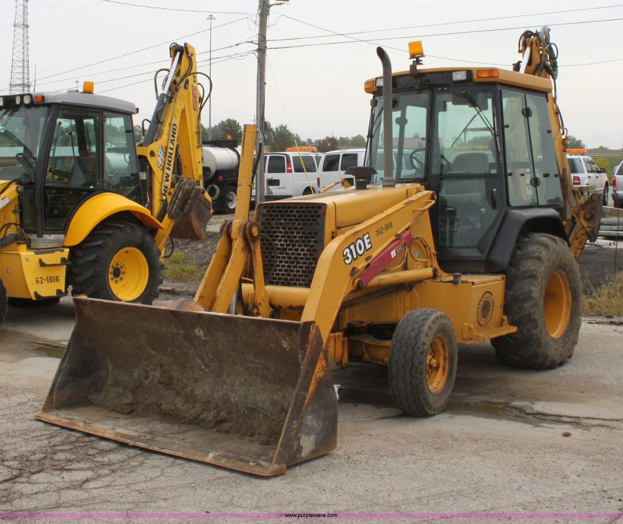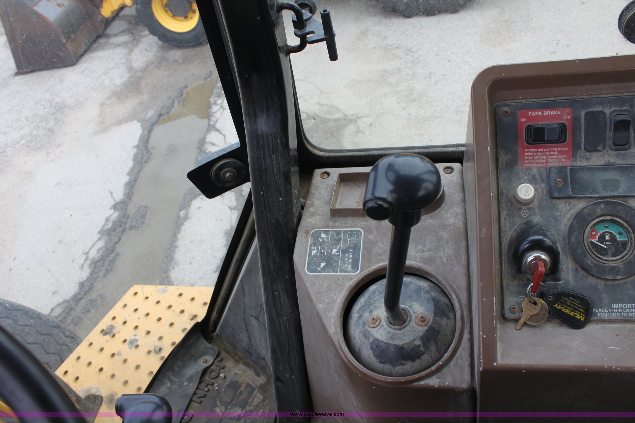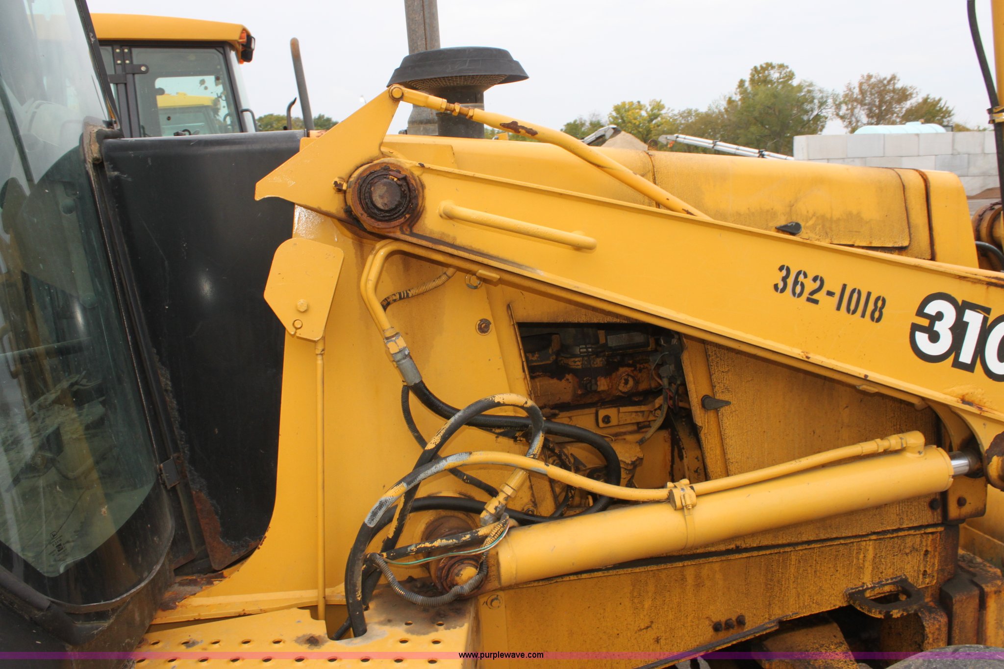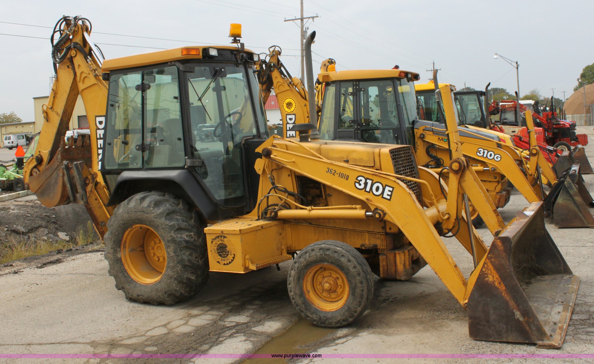 Purple Wave is selling a used Tractor Loader Backhoe in Kansas. This item is a 1998 John Deere 310E backhoe with the following: 5,002 hours on meter, Diesel engine, Four speed shuttle shift transmission, AC and heat, Suspension seat, Front and rear windshield wipers, Work lights, Wobble stick loader control, Two stick backhoe controls, 3/4 cu. yd. loader bucket, 24" backhoe bucket, (5) teeth, 18" stabilizer pads, 11L-16SL front tires, 19.5-24 rear tires, Extend-A-Hoe leaks oil, Oil leak in oil cooler, Serial T0310EX879539, KDOT ID E362-1018