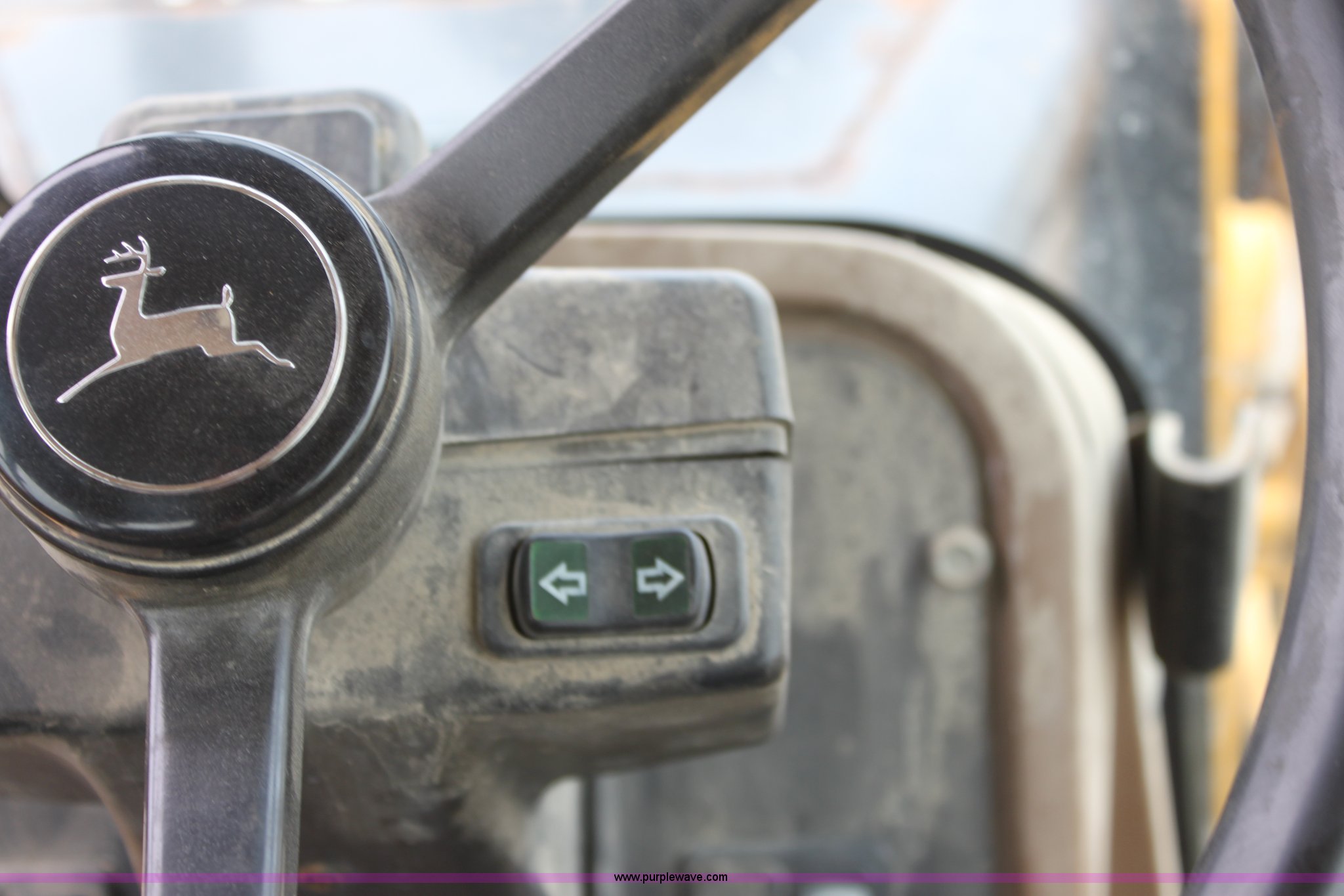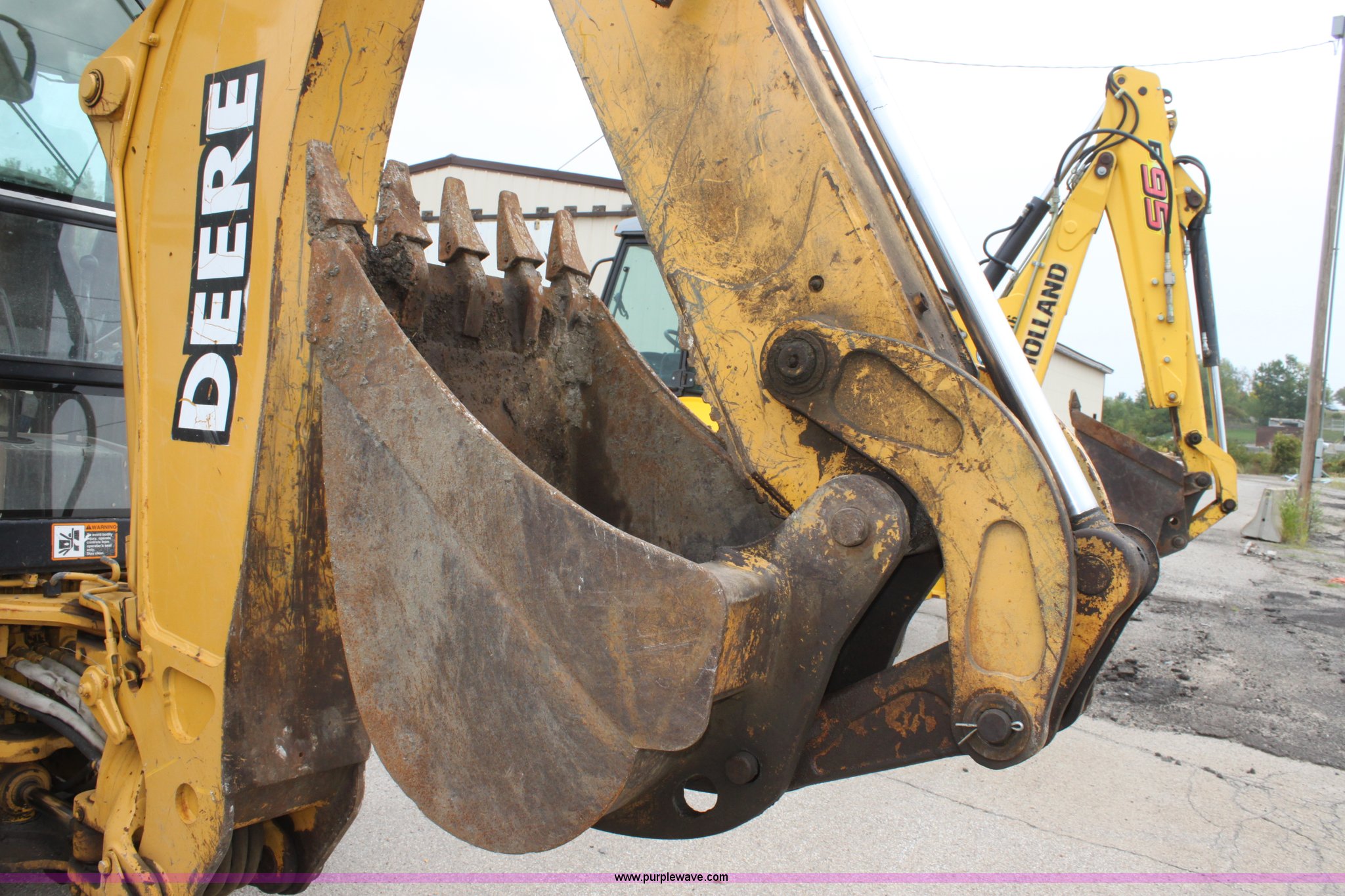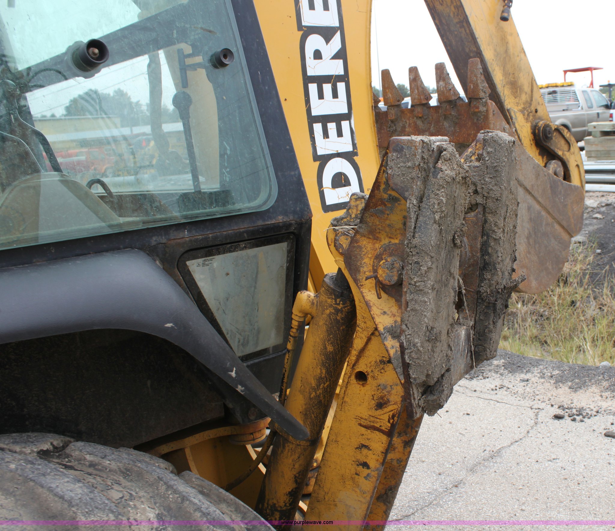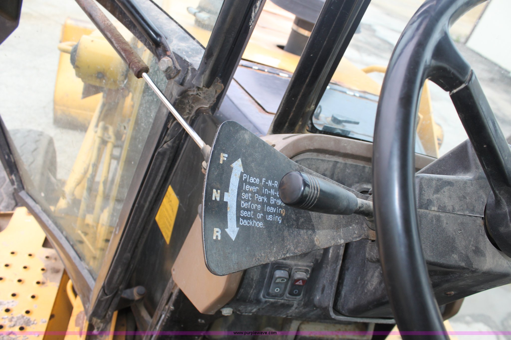 Purple Wave is selling a used Tractor Loader Backhoe in Kansas. This item is a 1998 John Deere 310E backhoe with the following: 5,002 hours on meter, Diesel engine, Four speed shuttle shift transmission, AC and heat, Suspension seat, Front and rear windshield wipers, Work lights, Wobble stick loader control, Two stick backhoe controls, 3/4 cu. yd. loader bucket, 24" backhoe bucket, (5) teeth, 18" stabilizer pads, 11L-16SL front tires, 19.5-24 rear tires, Extend-A-Hoe leaks oil, Oil leak in oil cooler, Serial T0310EX879539, KDOT ID E362-1018