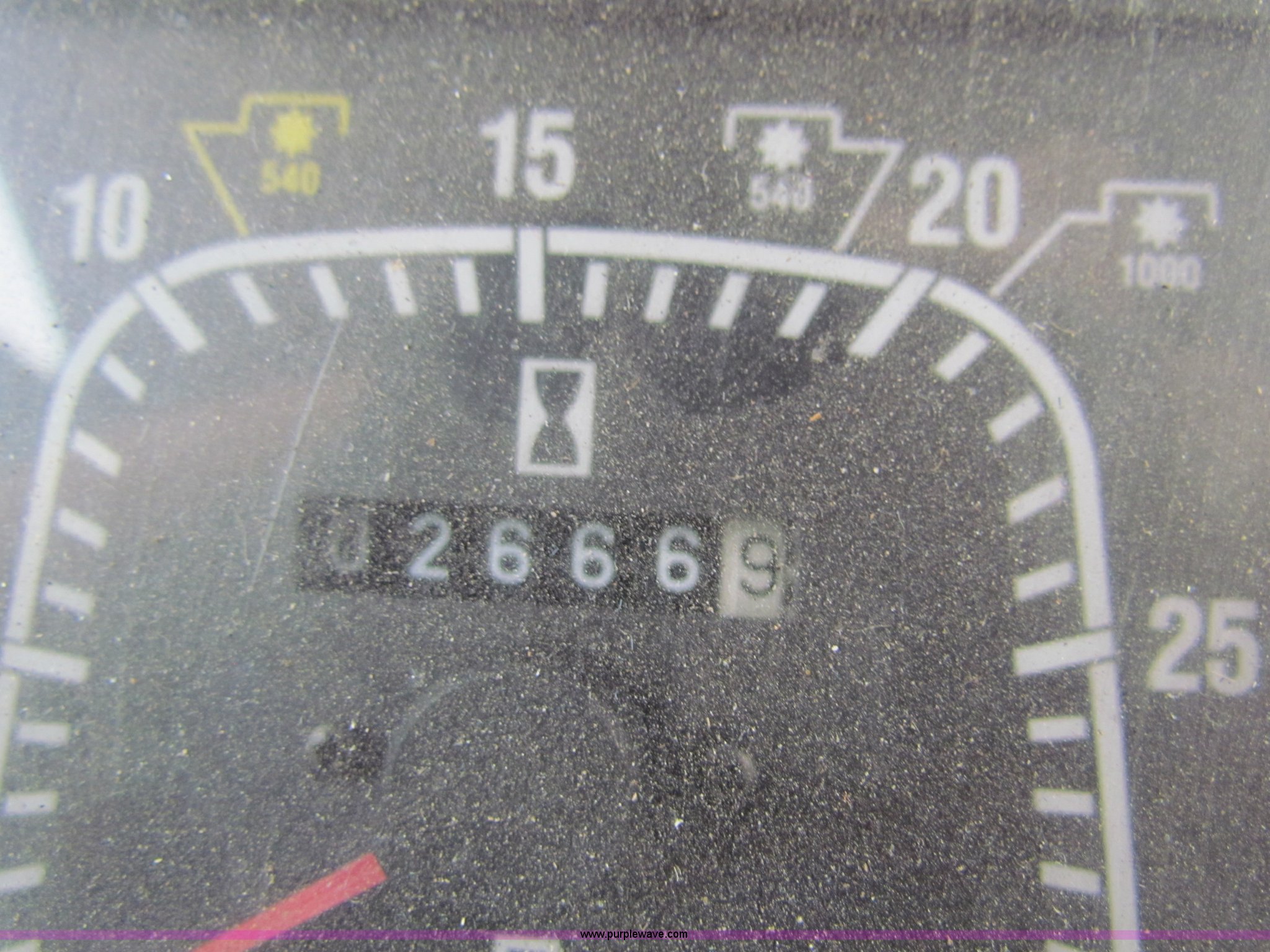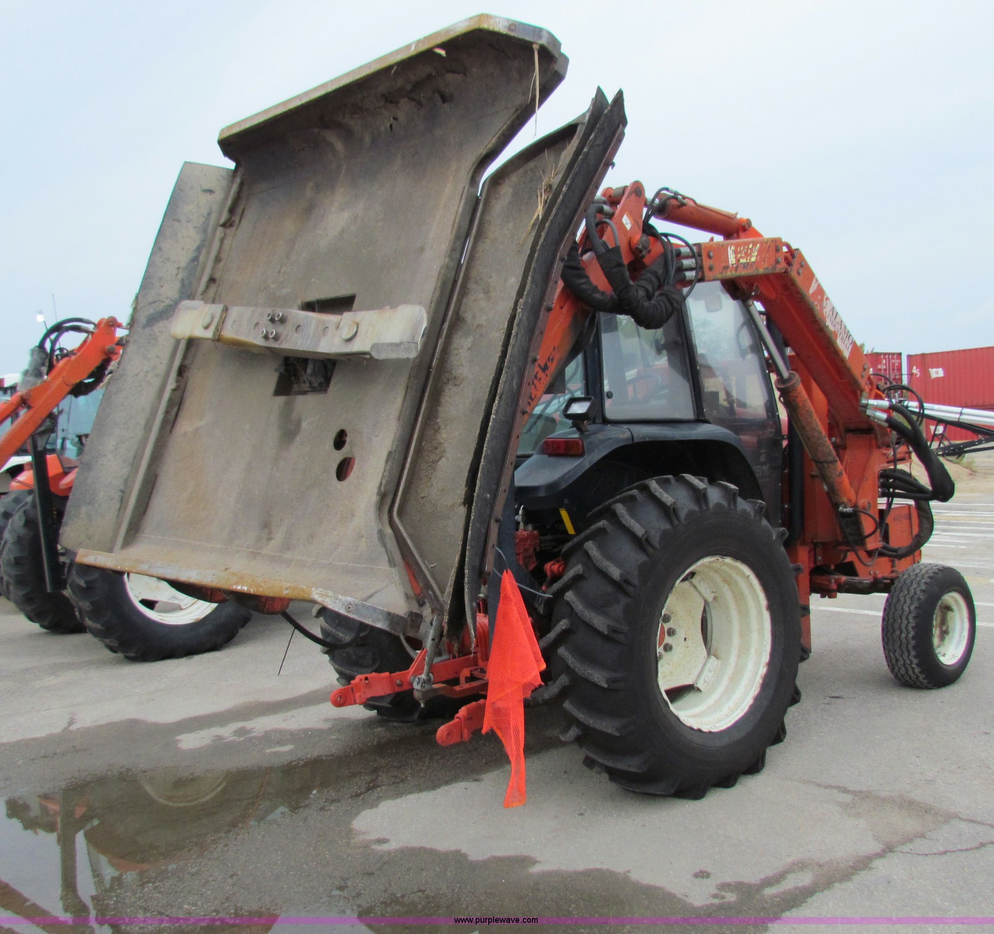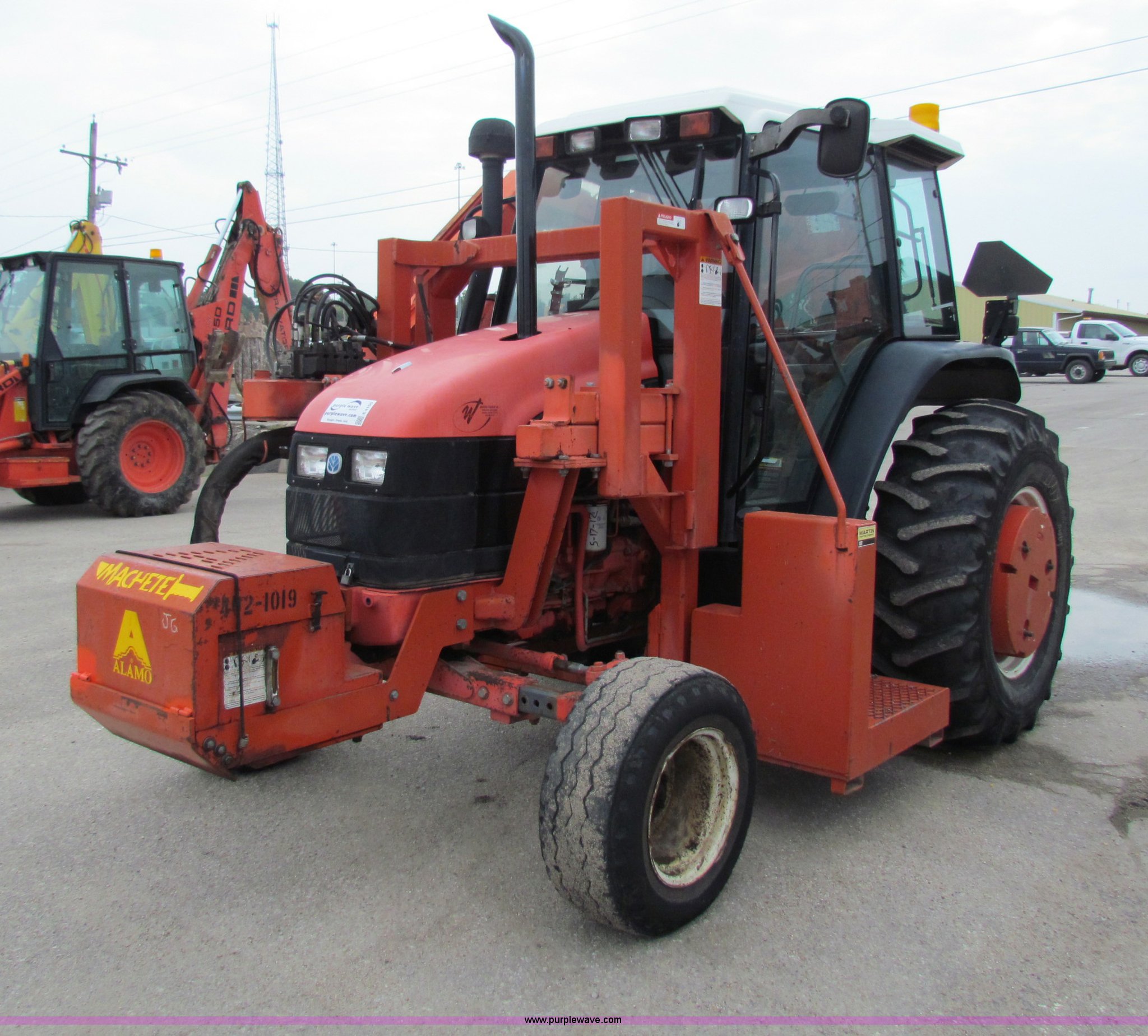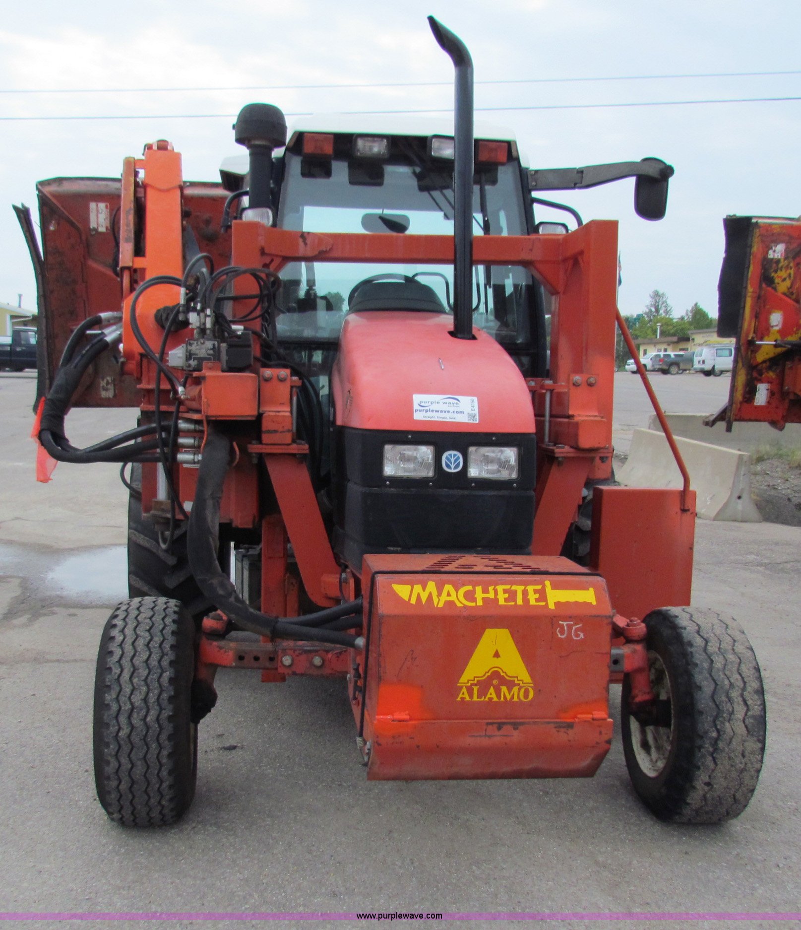 Purple Wave is selling a used Tractor in Kansas. This item is a 2000 New Holland TS100 tractor with the following: 2,666 hours on meter, Four cylinder diesel engine, 80 HP, 12 speed transmission, Locking differential, Enclosed cab, AC and heat, Suspension seat, AM/FM/cassette, Windshield wipers, Work lights, Joystick boom controls, Machete MB21 62" boom mower, Three point arms, (4) hydraulic remote sets, Draw bar, 11L-16SL front tires, 18.4-30 rear tires, Serial 135588B, KDOT ID E402-1019