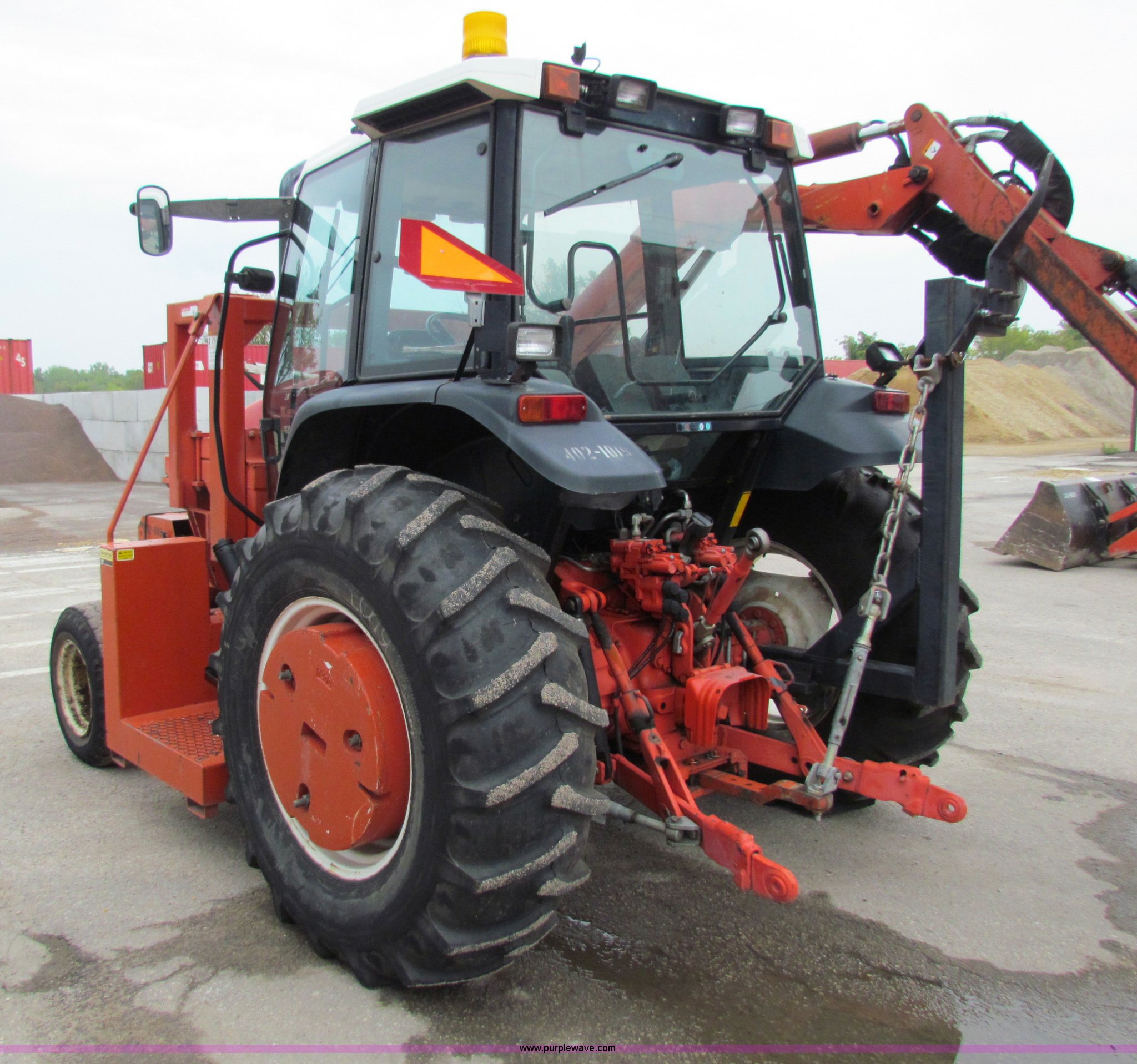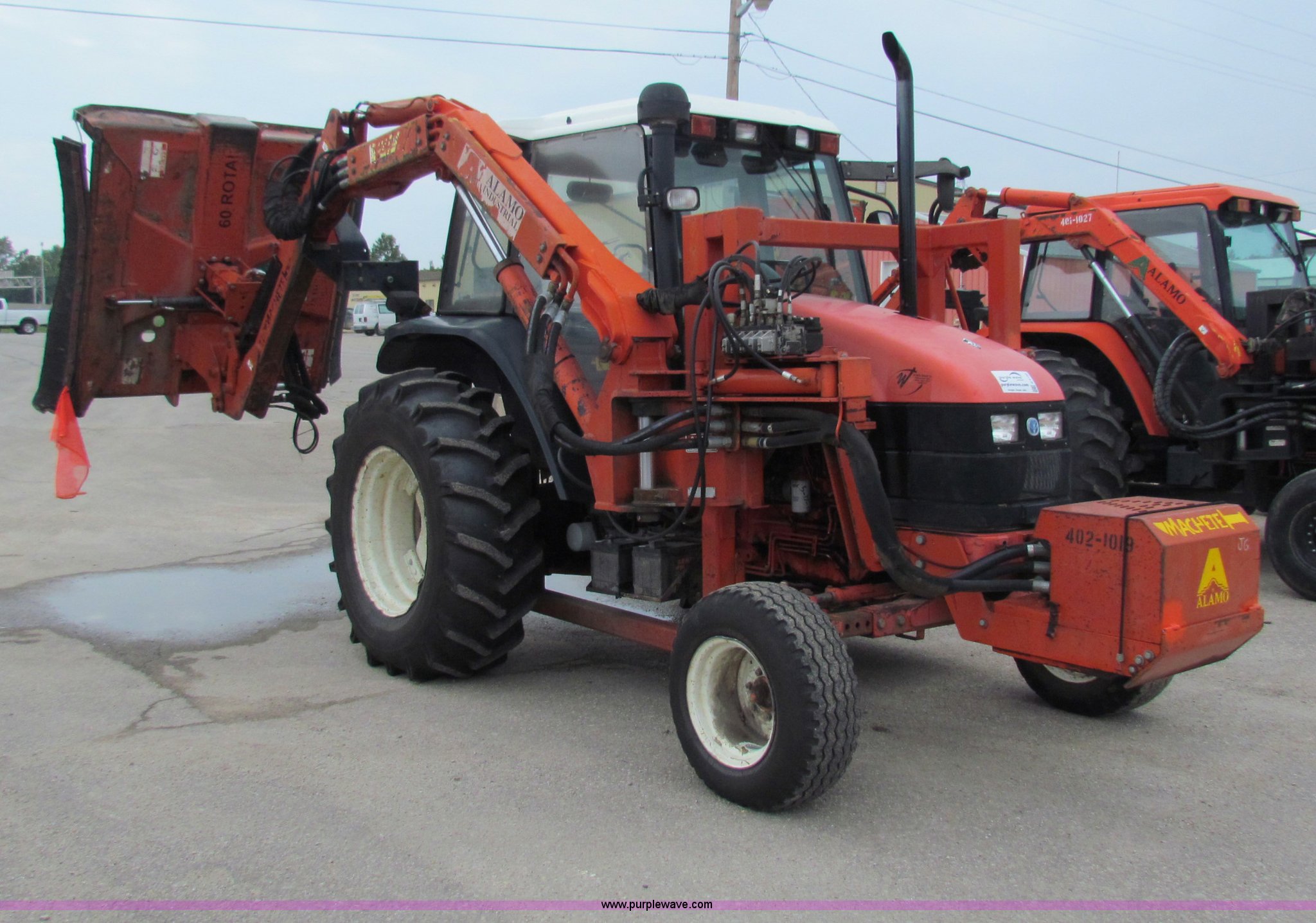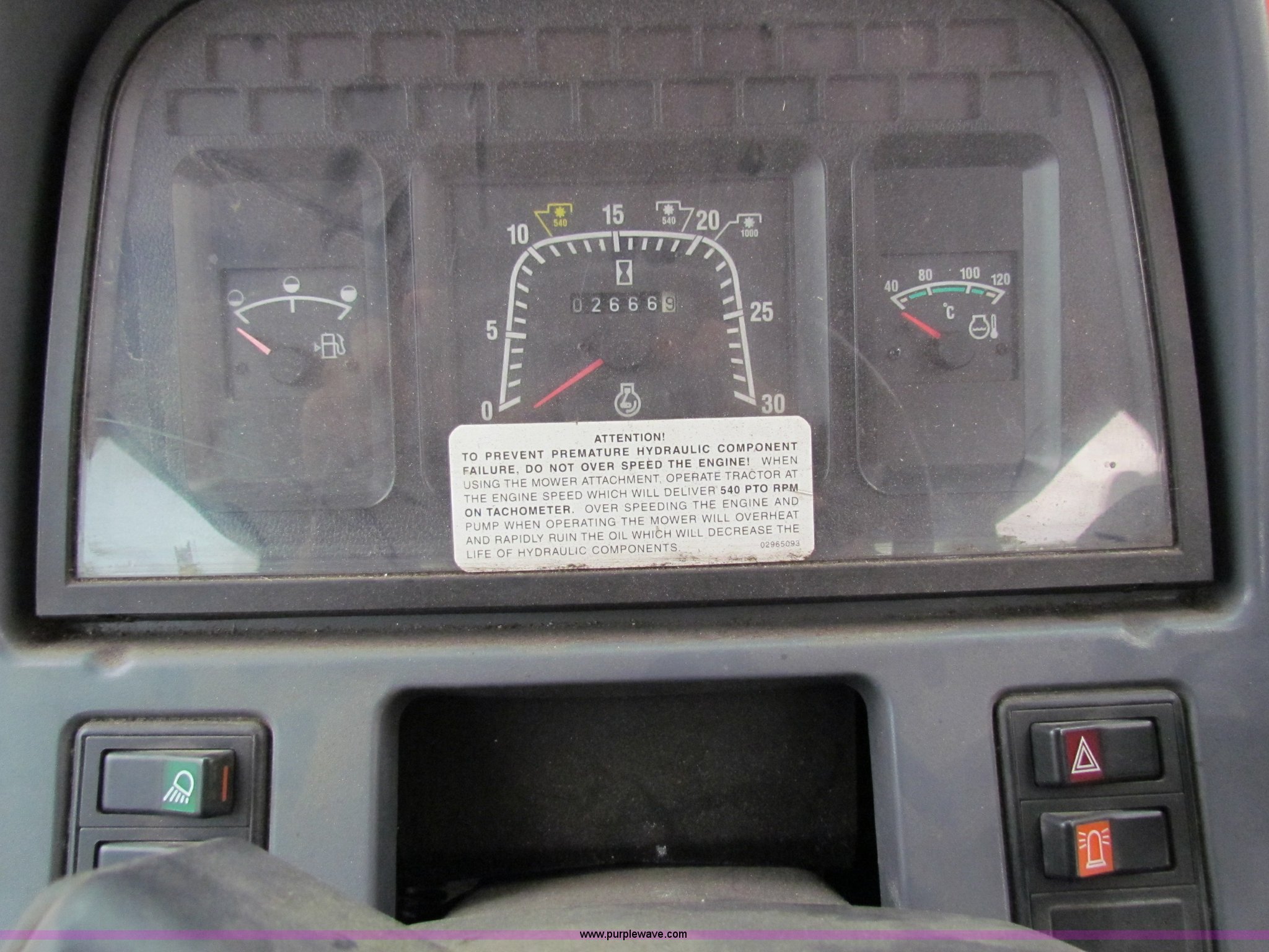Purple Wave is selling a used Tractor in Kansas. This item is a 2000 New Holland TS100 tractor with the following: 2,666 hours on meter, Four cylinder diesel engine, 80 HP, 12 speed transmission, Locking differential, Enclosed cab, AC and heat, Suspension seat, AM/FM/cassette, Windshield wipers, Work lights, Joystick boom controls, Machete MB21 62" boom mower, Three point arms, (4) hydraulic remote sets, Draw bar, 11L-16SL front tires, 18.4-30 rear tires, Serial 135588B, KDOT ID E402-1019