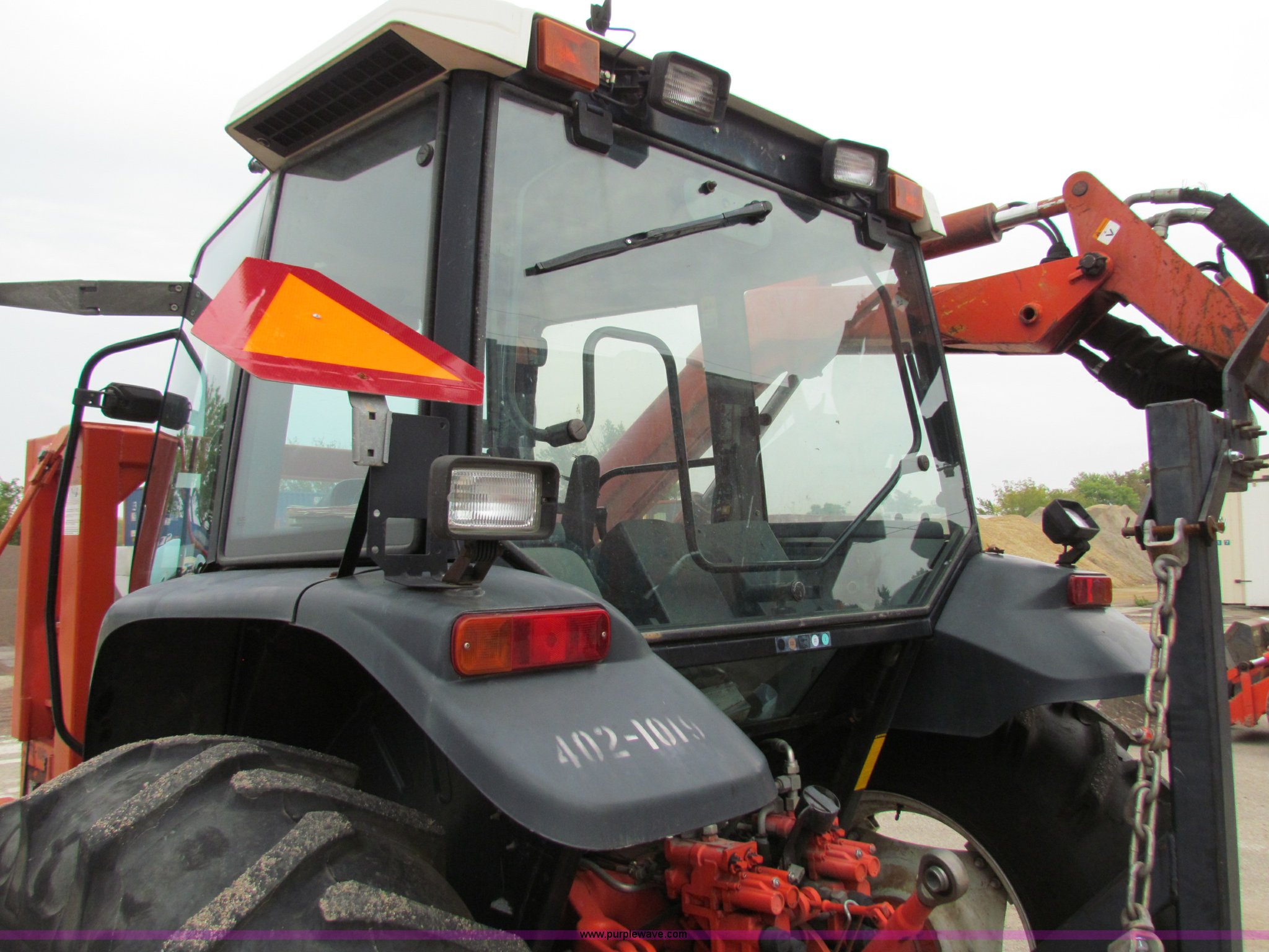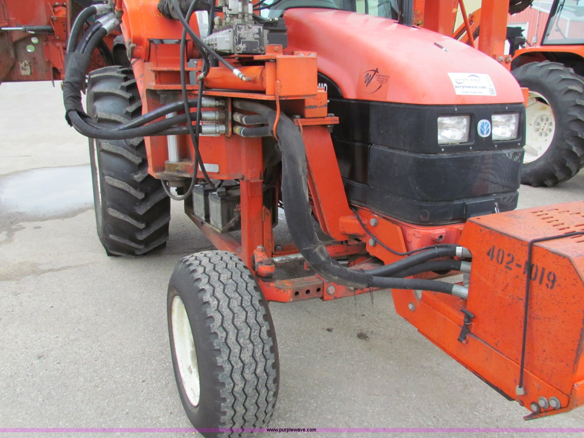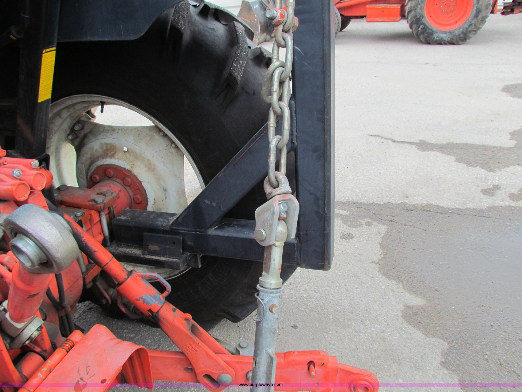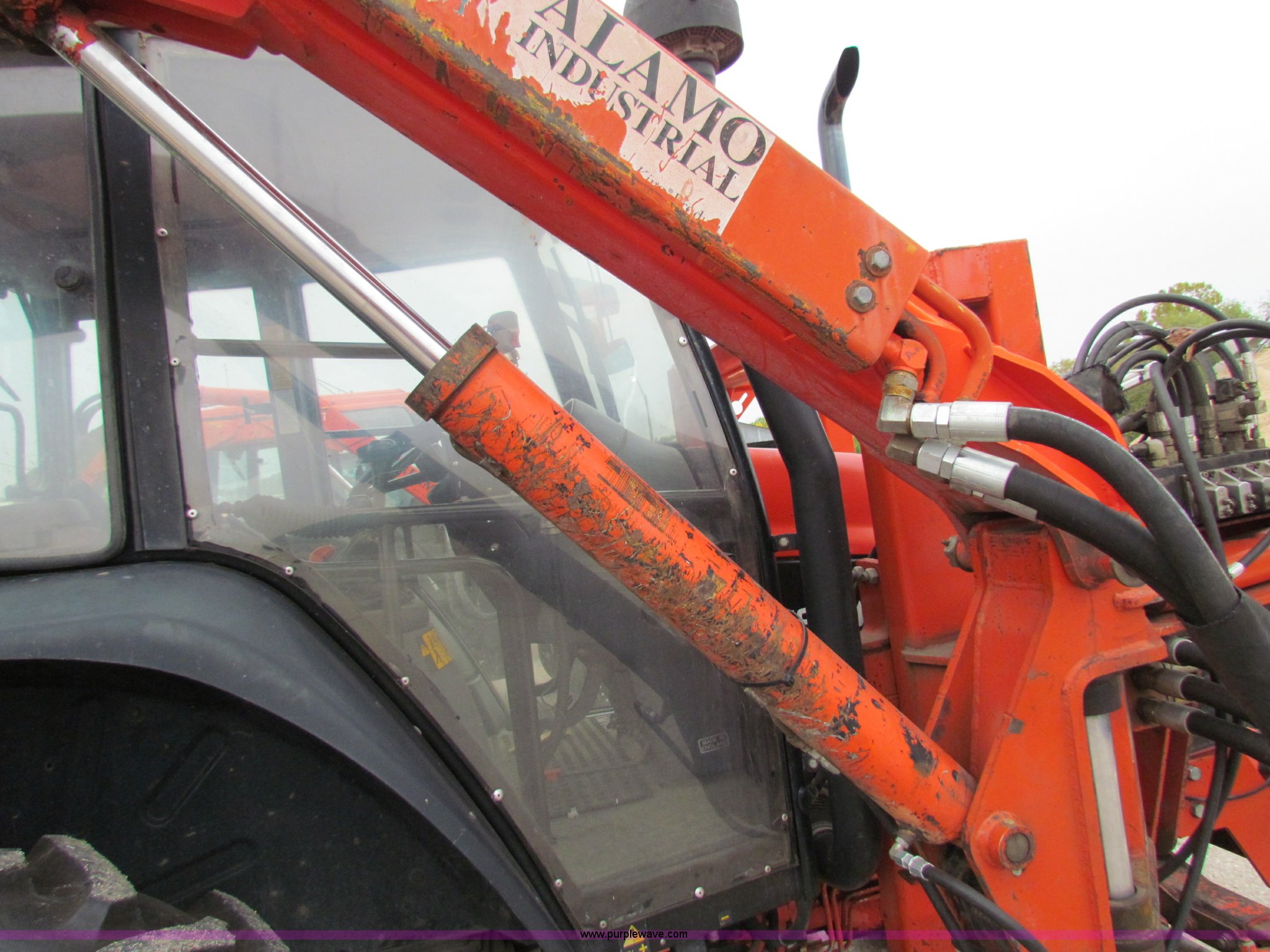 Purple Wave is selling a used Tractor in Kansas. This item is a 2000 New Holland TS100 tractor with the following: 2,666 hours on meter, Four cylinder diesel engine, 80 HP, 12 speed transmission, Locking differential, Enclosed cab, AC and heat, Suspension seat, AM/FM/cassette, Windshield wipers, Work lights, Joystick boom controls, Machete MB21 62" boom mower, Three point arms, (4) hydraulic remote sets, Draw bar, 11L-16SL front tires, 18.4-30 rear tires, Serial 135588B, KDOT ID E402-1019