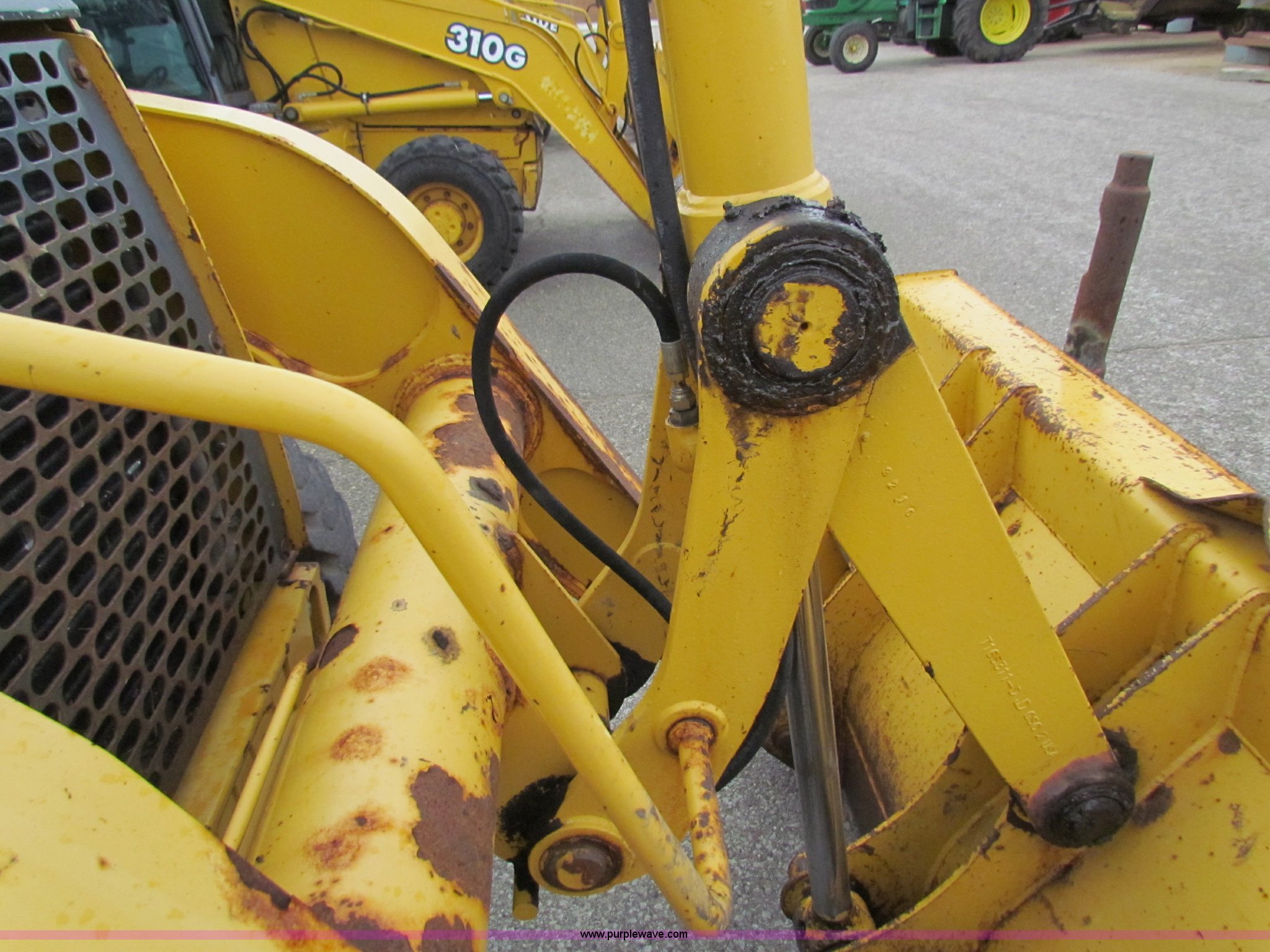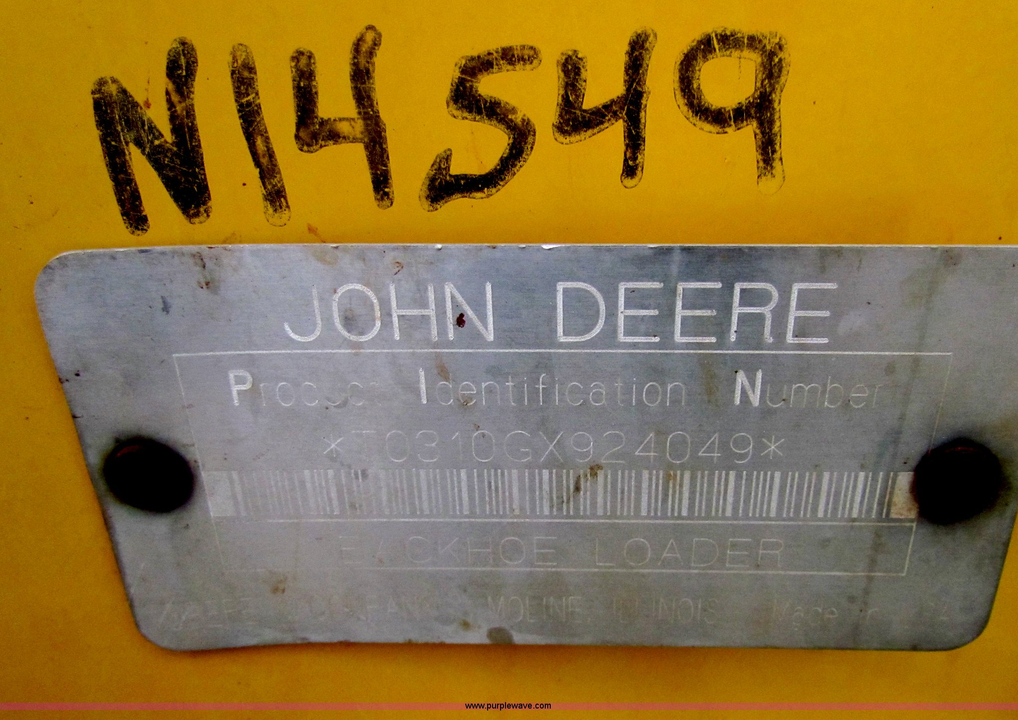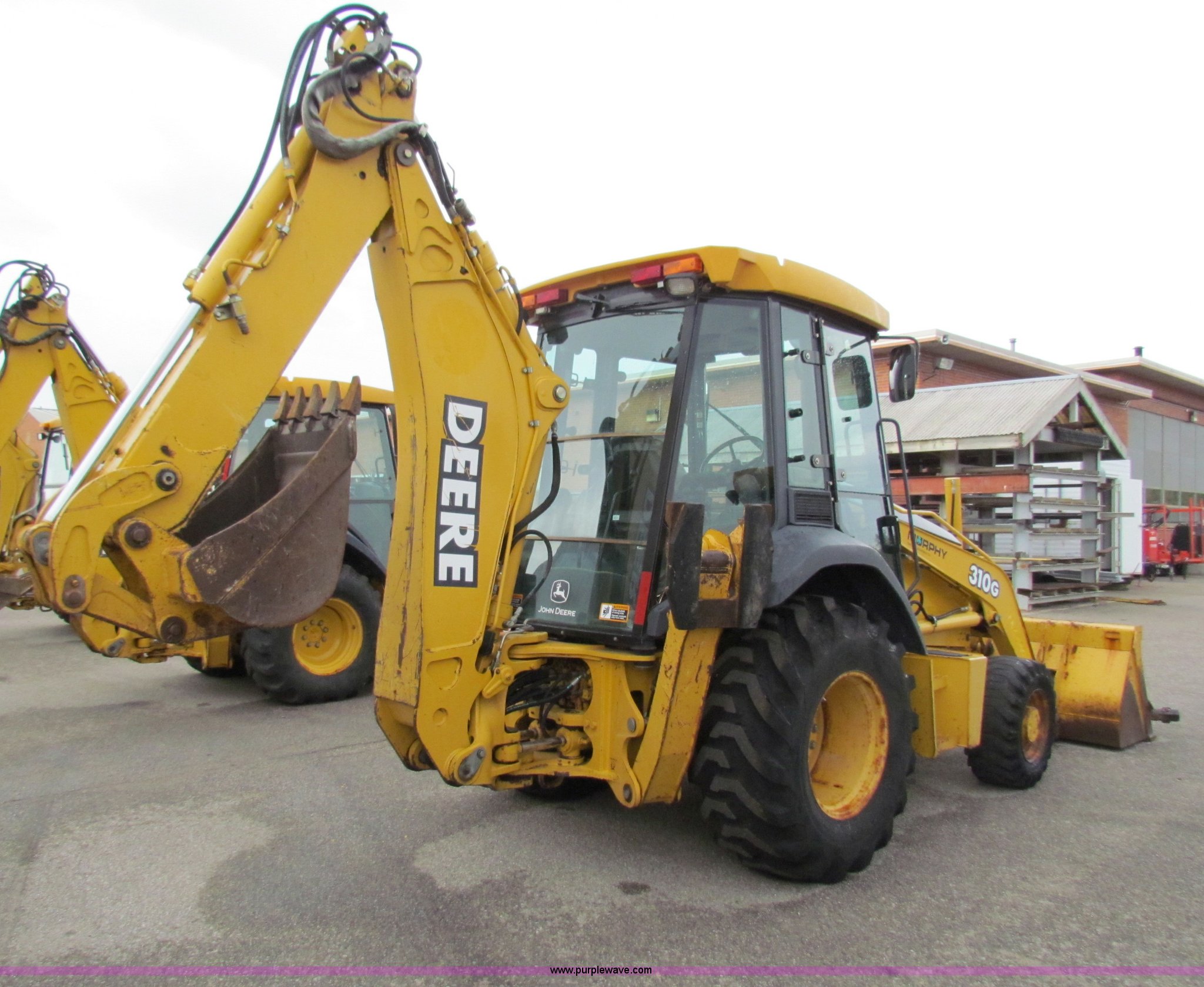 Purple Wave is selling a used Tractor Loader Backhoe in Kansas. This item is a 2003 John Deere 310G backhoe with the following: 2,233 hours on meter, Four cylinder diesel engine, Four speed shuttle shift transmission, Front wheel assist, Locking differential, Enclosed cab, AC and heat, Suspension seat, Front and rear windshield wiper, Wobble stick loader control, 1 cu. yd. loader bucket, 22" backhoe bucket, Kent KF5 impacter, Earth auger, Extended reach, Two stick backhoe control, 18" stabilizer pads, Front and rear work lights, 12-16.5NHS front tires, 19.5L-24 rear tires, Serial T0310GX924049, KDOT ID E362-2023