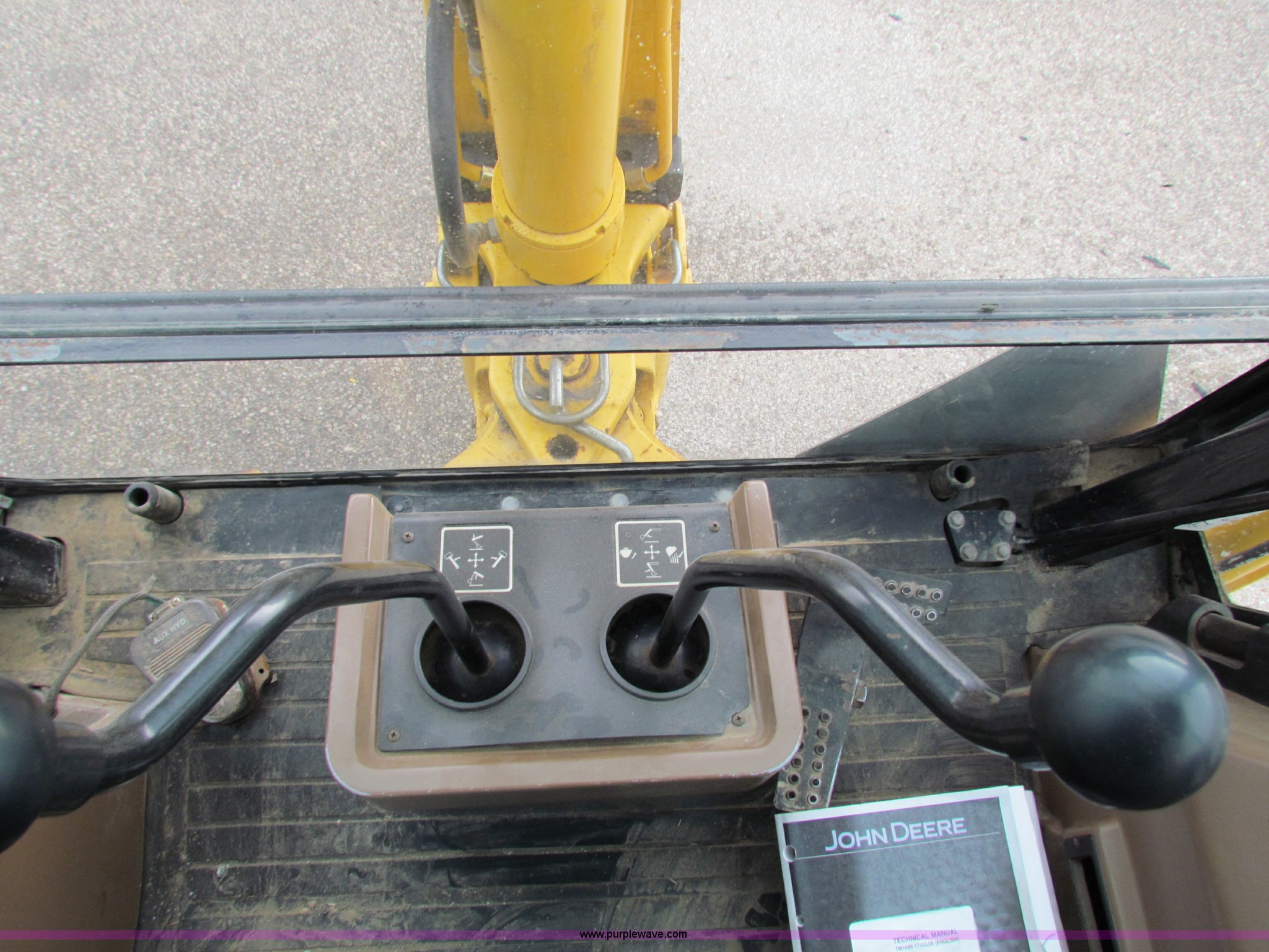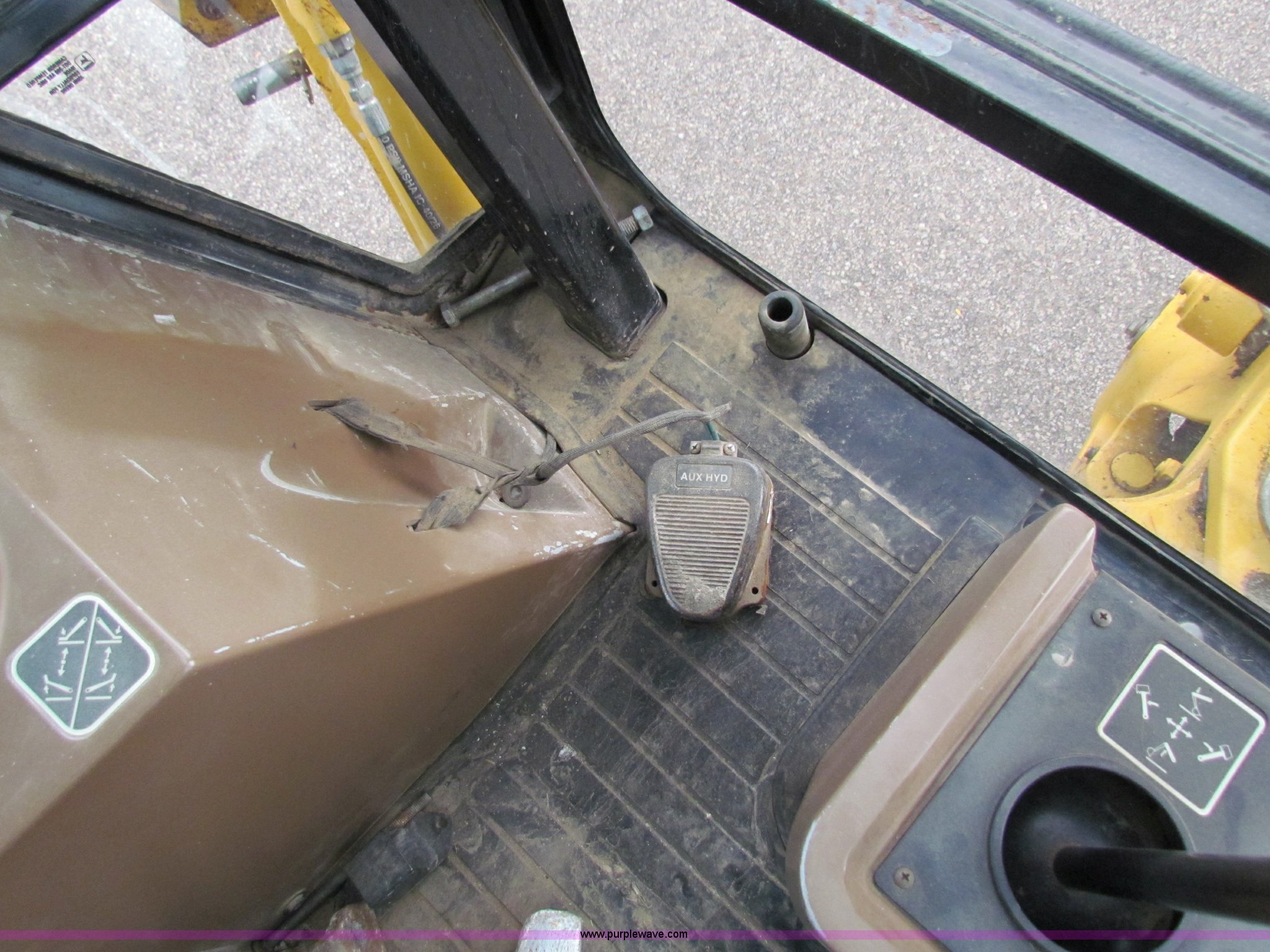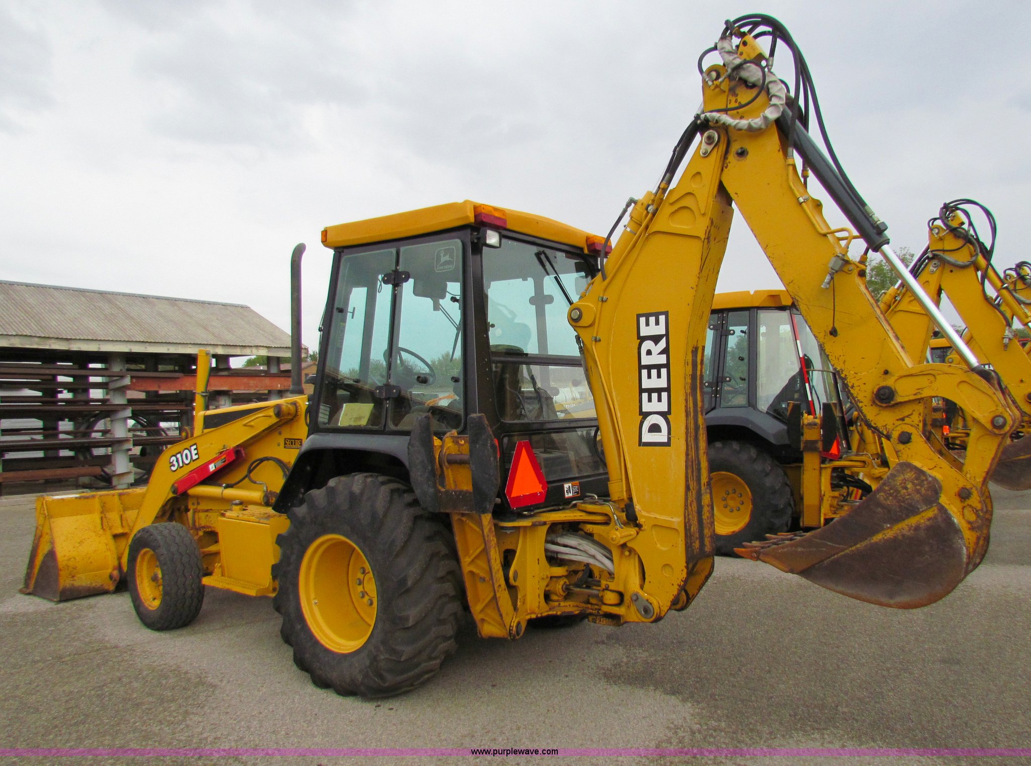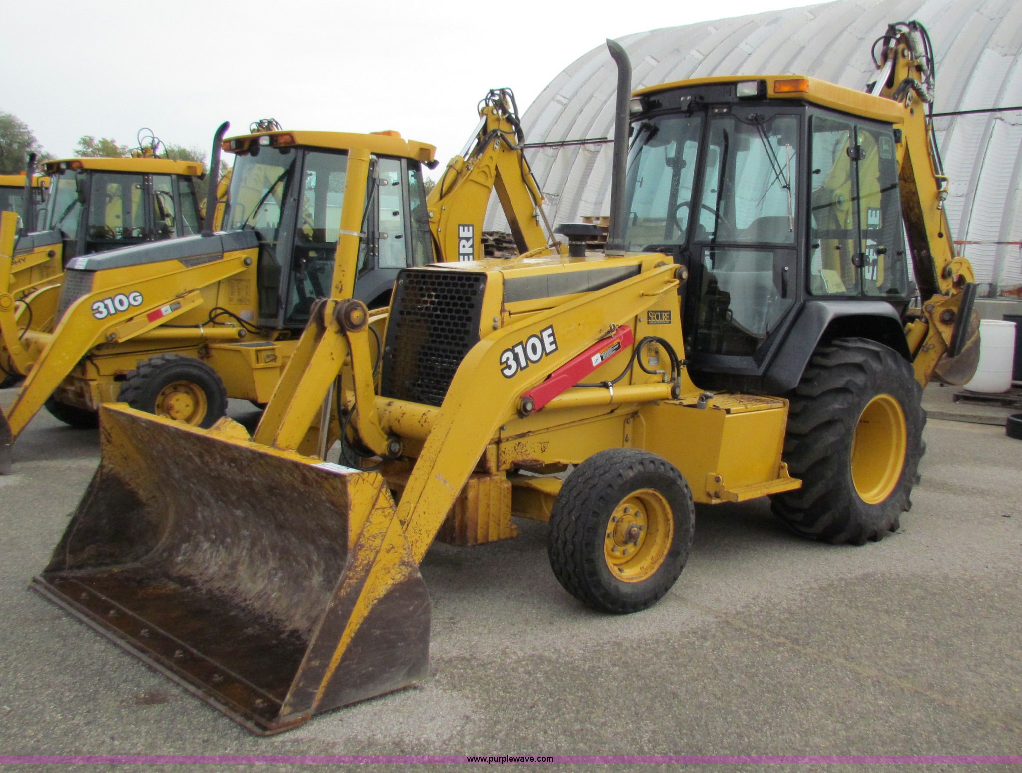 Purple Wave is selling a used Tractor Loader Backhoe in Kansas. This item is a 1997 John Deere 310E backhoe with the following: 2,352 hours on meter, Four cylinder diesel engine, Four speed shuttle shift transmission, Locking differential, Enclosed cab, Heat, Suspension seat, Front and rear windshield wipers, Wobble stick loader control, 3/4 cu. yd. loader bucket, 22" backhoe bucket, (5) teeth, Two stick backhoe controls, Extended reach, 18" stabilizer pads, Front and rear work lights, 11-16.5NHS front tires, 19.5L-24 rear tires, Possible boom extension problem, Serial T0310EX839142, KDOT ID E362-2017