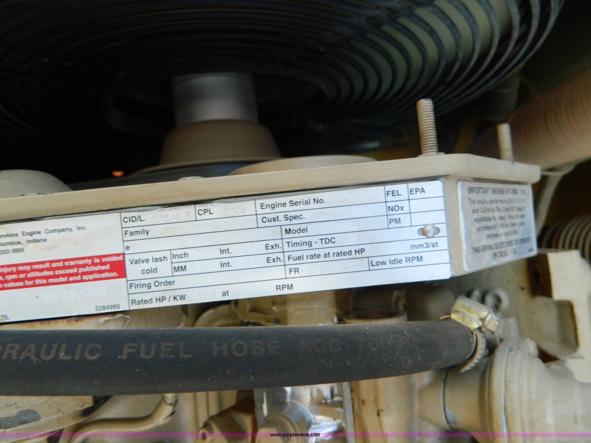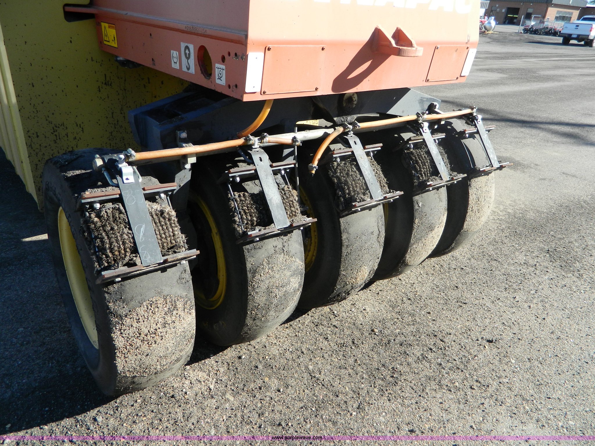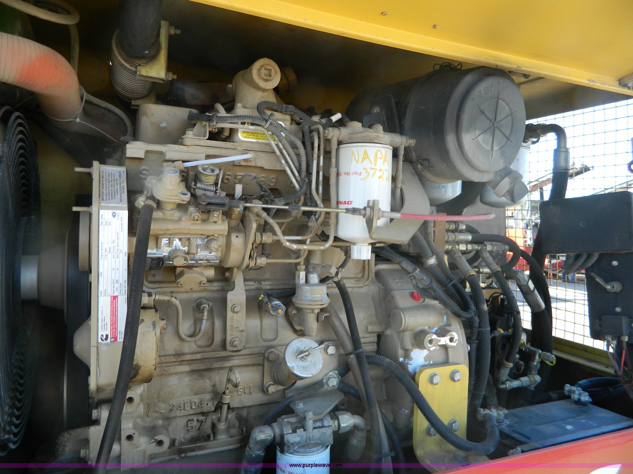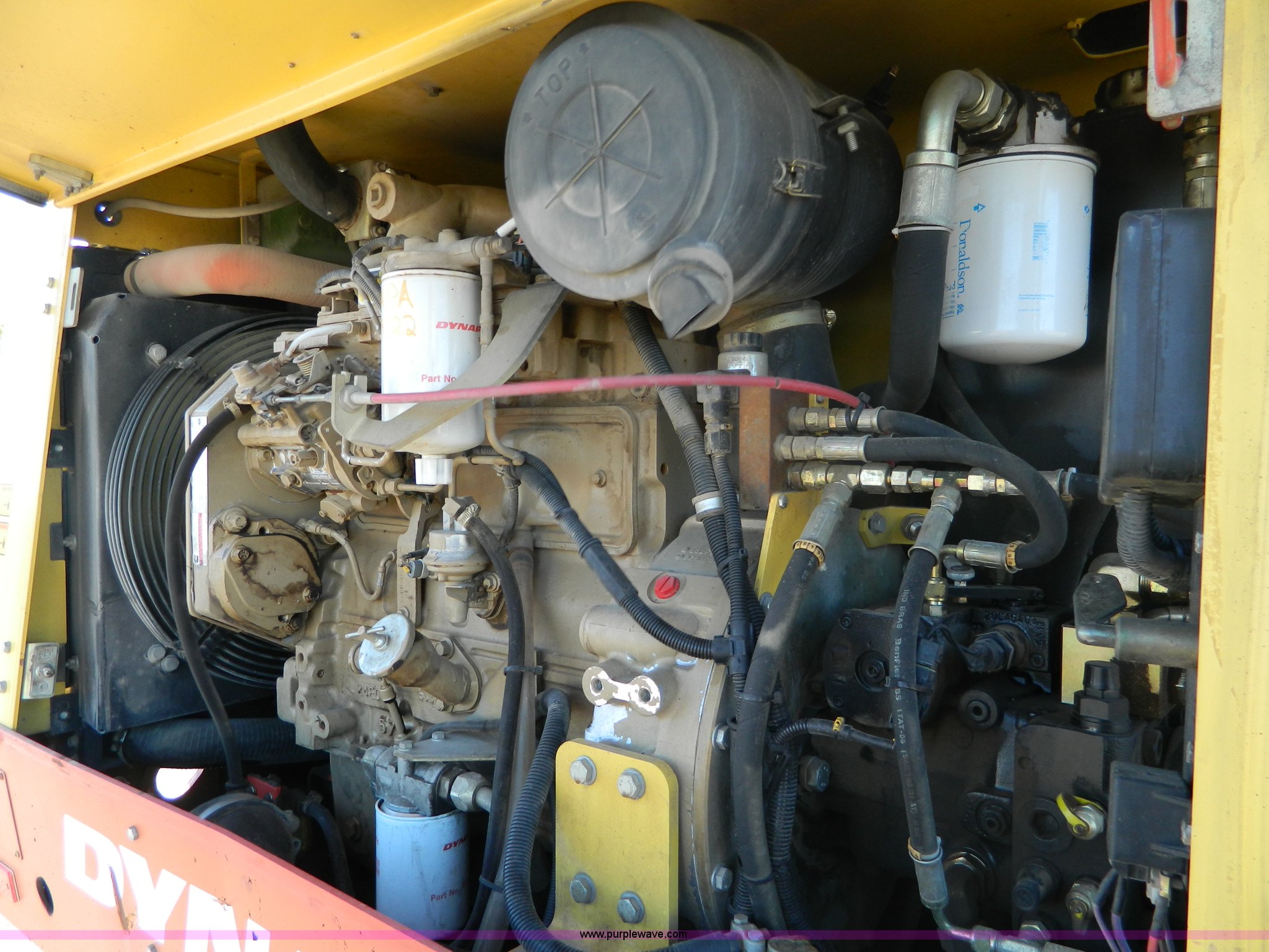 Purple Wave is selling a used Pneumatic Roller in Kansas. This item is a 2005 Dyna-Pac CP142 pneumatic roller with the following: 414 hours on meter, Cummins UBT 4.5L four cylinder diesel engine, 99 HP, Hydrostatic transmission, Poly water tank, Front and rear water distribution, 7.50R15 tires, Paint faded and scratched, Serial 2163BR2025, KDOT ID E641-3034