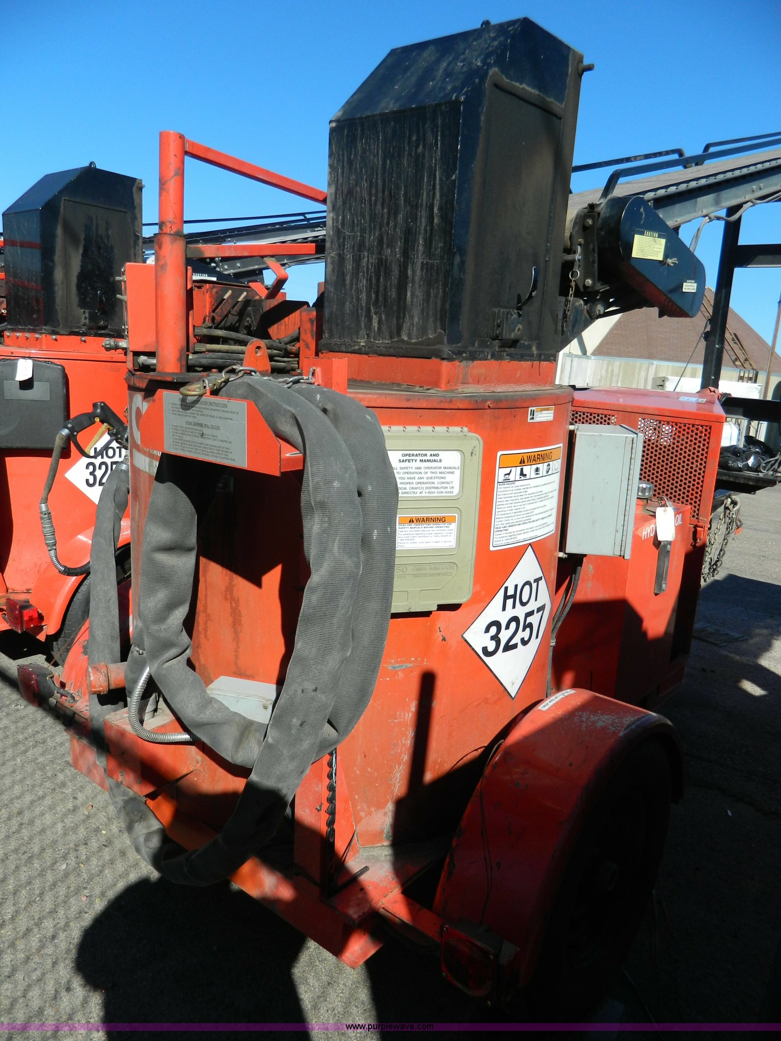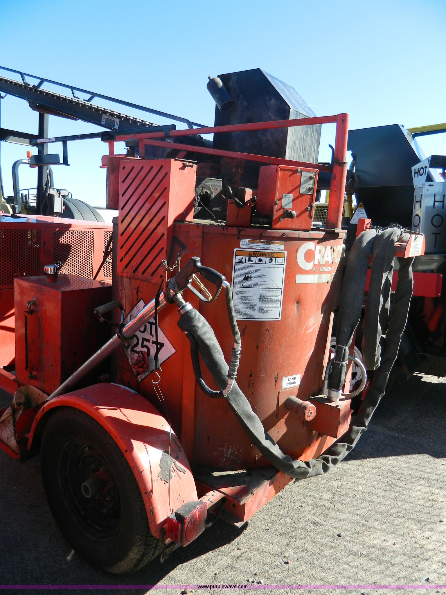 Purple Wave is selling a used Pot Hole Patcher in Kansas. This item is a 2003 Craft Co SS-125 crack seal machine with the following: 2,530 hours on meter, Isuzu three cylinder diesel engine, 25 HP, Pintle hitch, 225/75R16 tires, Blocked conveyor, Serial 1C9SY101931418128, KDOT ID E492-3033
