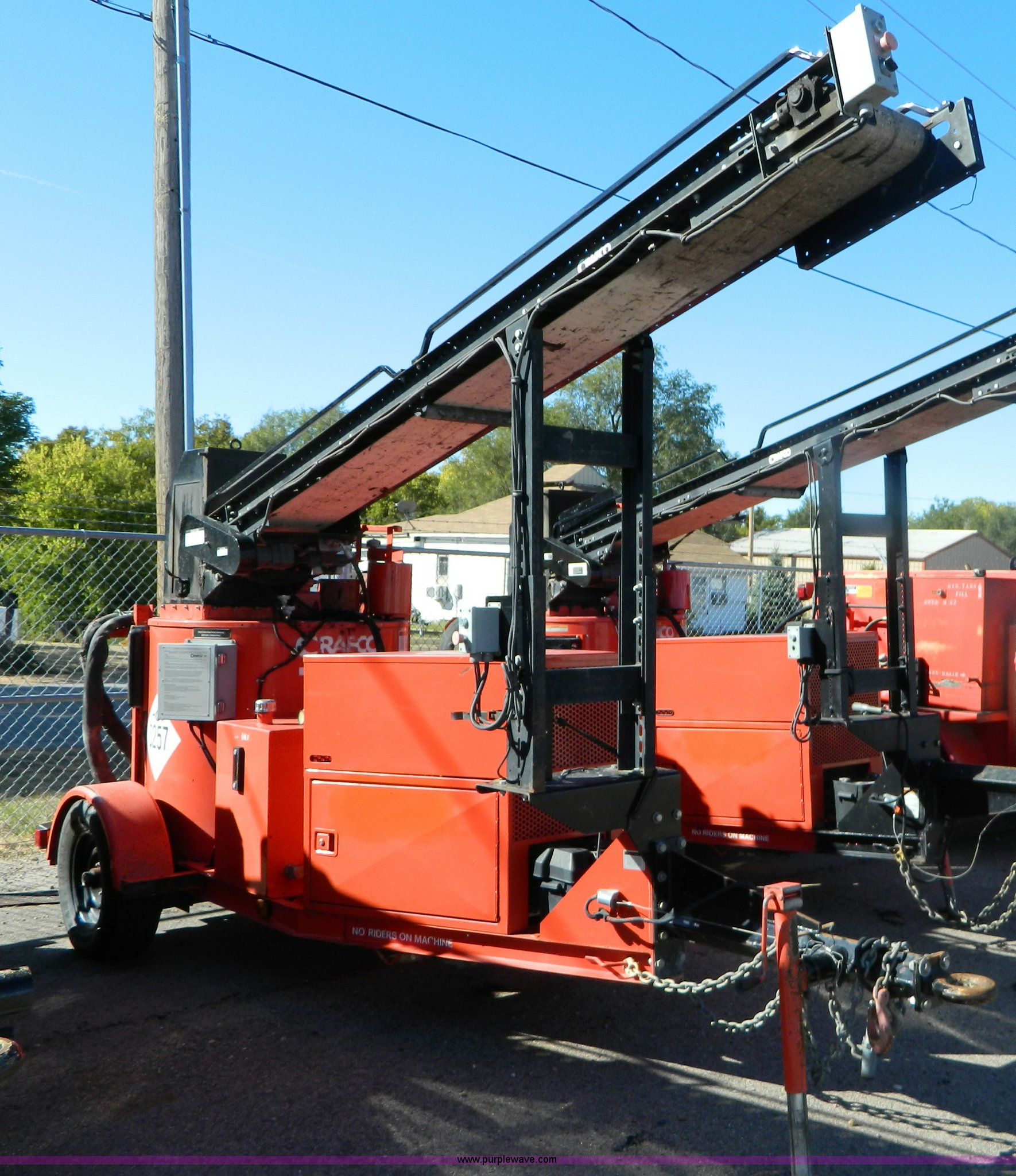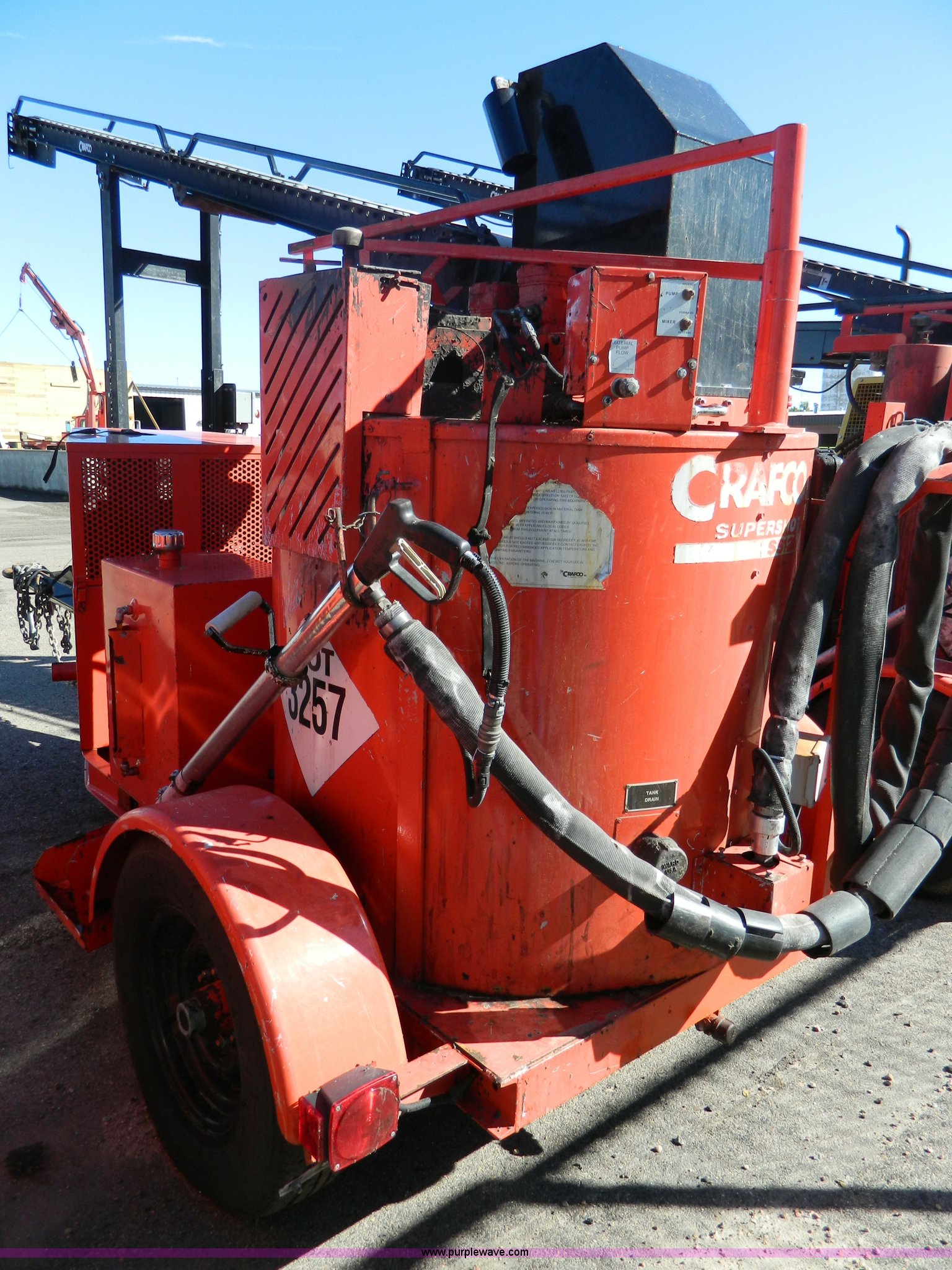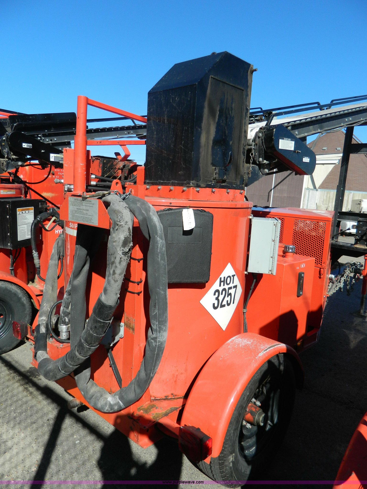 Purple Wave is selling a used Pot Hole Patcher in Kansas. This item is a 2003 Craft Co SS-125 crack seal machine with the following: 2,468 hours on meter, Isuzu three cylinder diesel engine, 26 HP, Diesel fired heating, Trailer mounted, Pintle hitch, 225/75R15 tires, Blocked conveyor, Dead battery, KDOT ID E492-3013