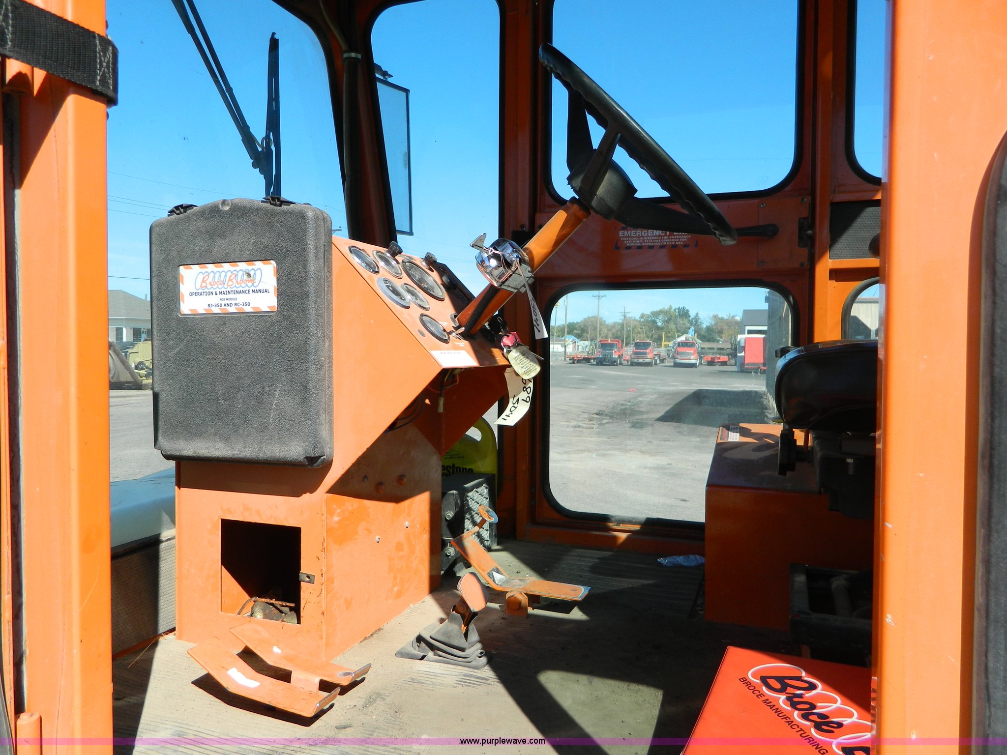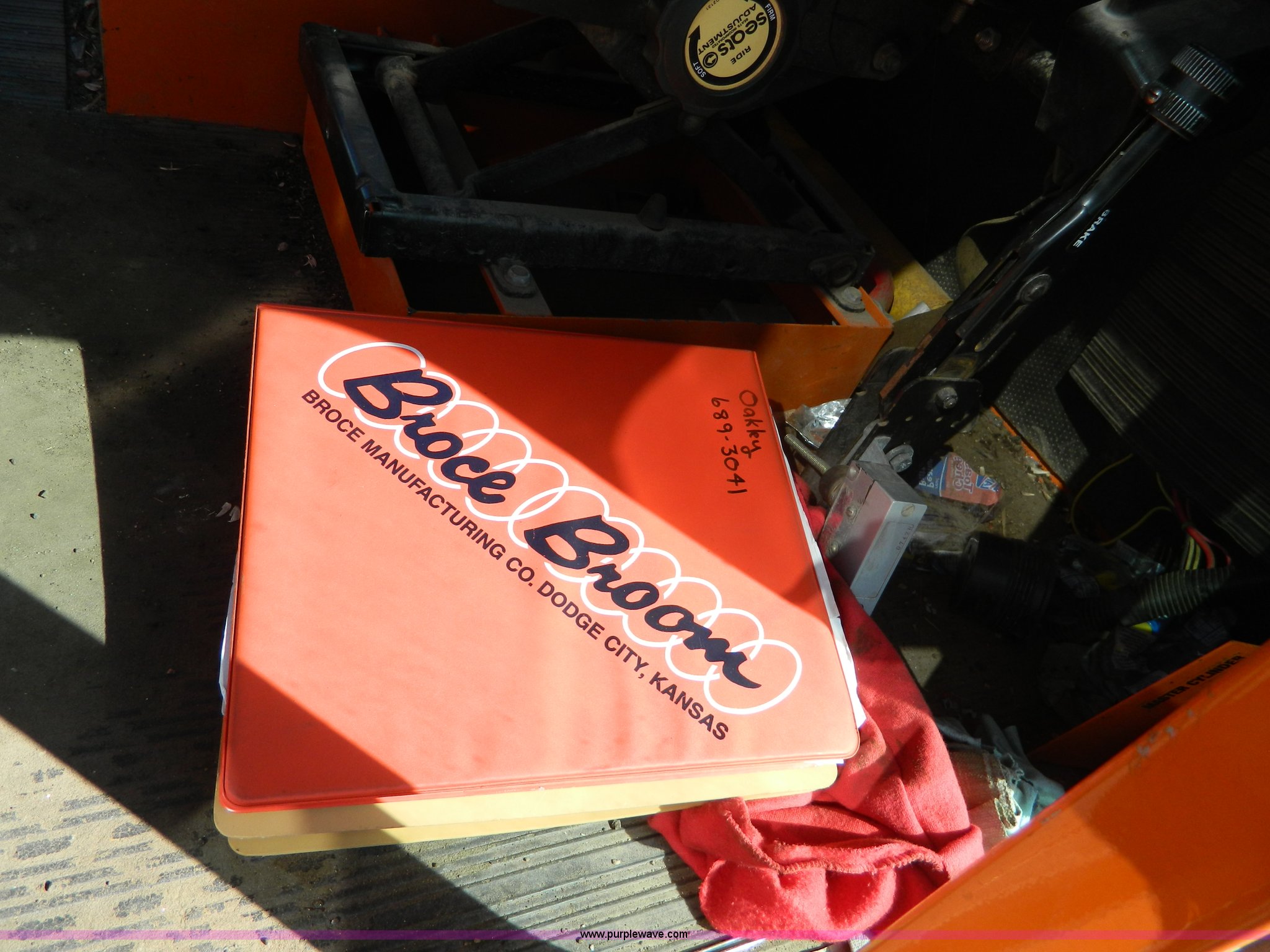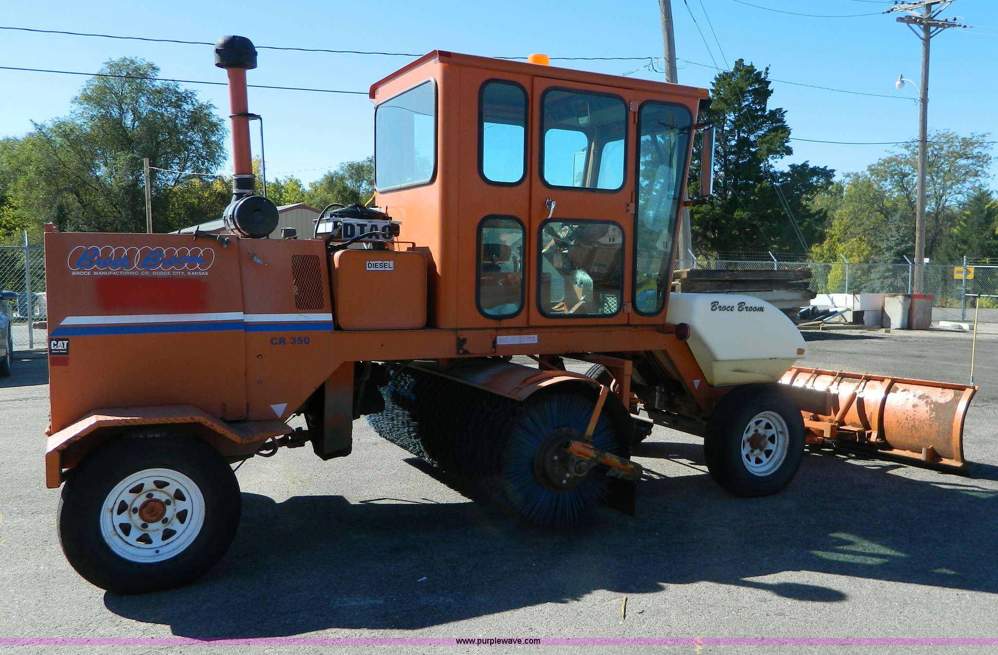 Purple Wave is selling a used Broom in Kansas. This item is a 2001 Broce CR-350 broom with the following: 2,058 hours on meter, Caterpillar 4.2L diesel engine, Hydrostatic transmission, Enclosed cab, AC, Front mount blade, Poly water tank, 90" front blade, 235/75R15 tires, Paint faded and scratched, Rust, KDOT ID E689-3041