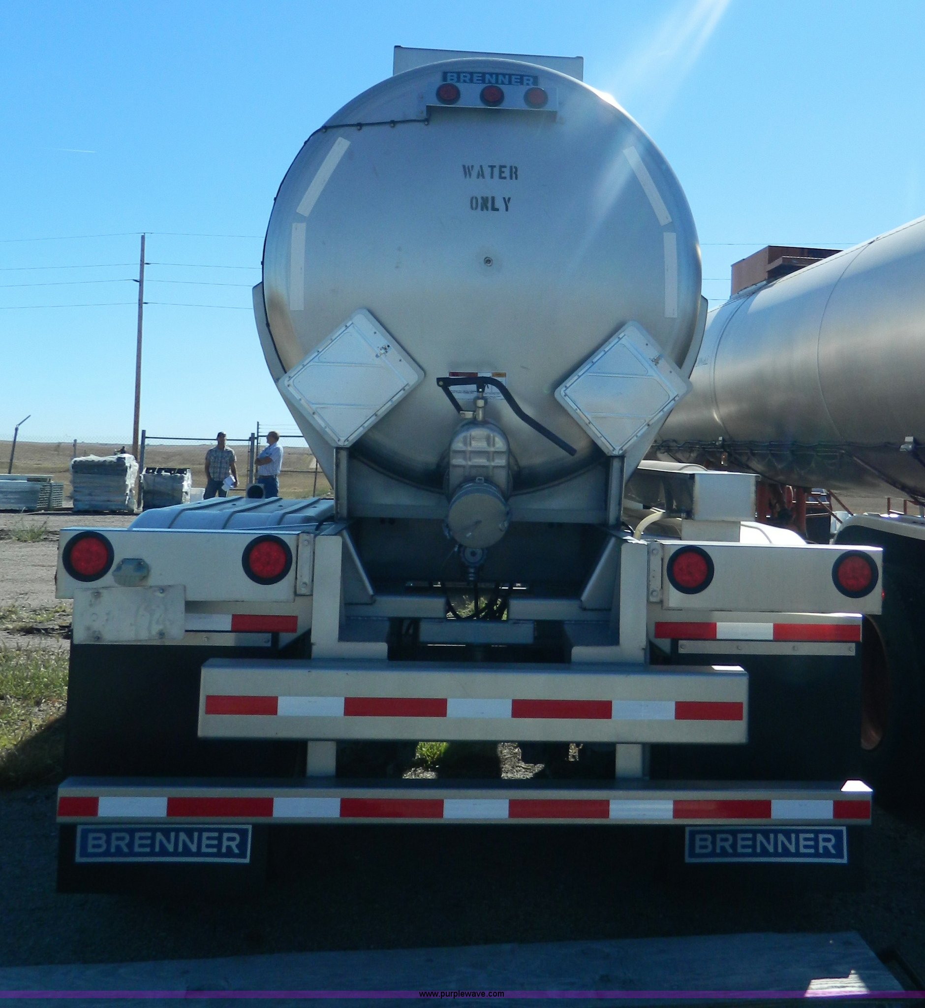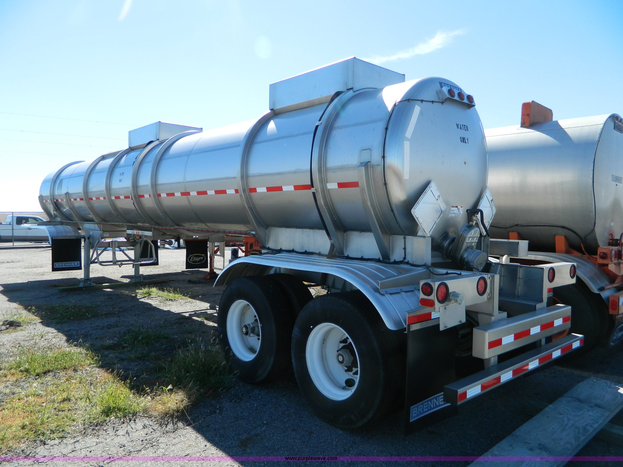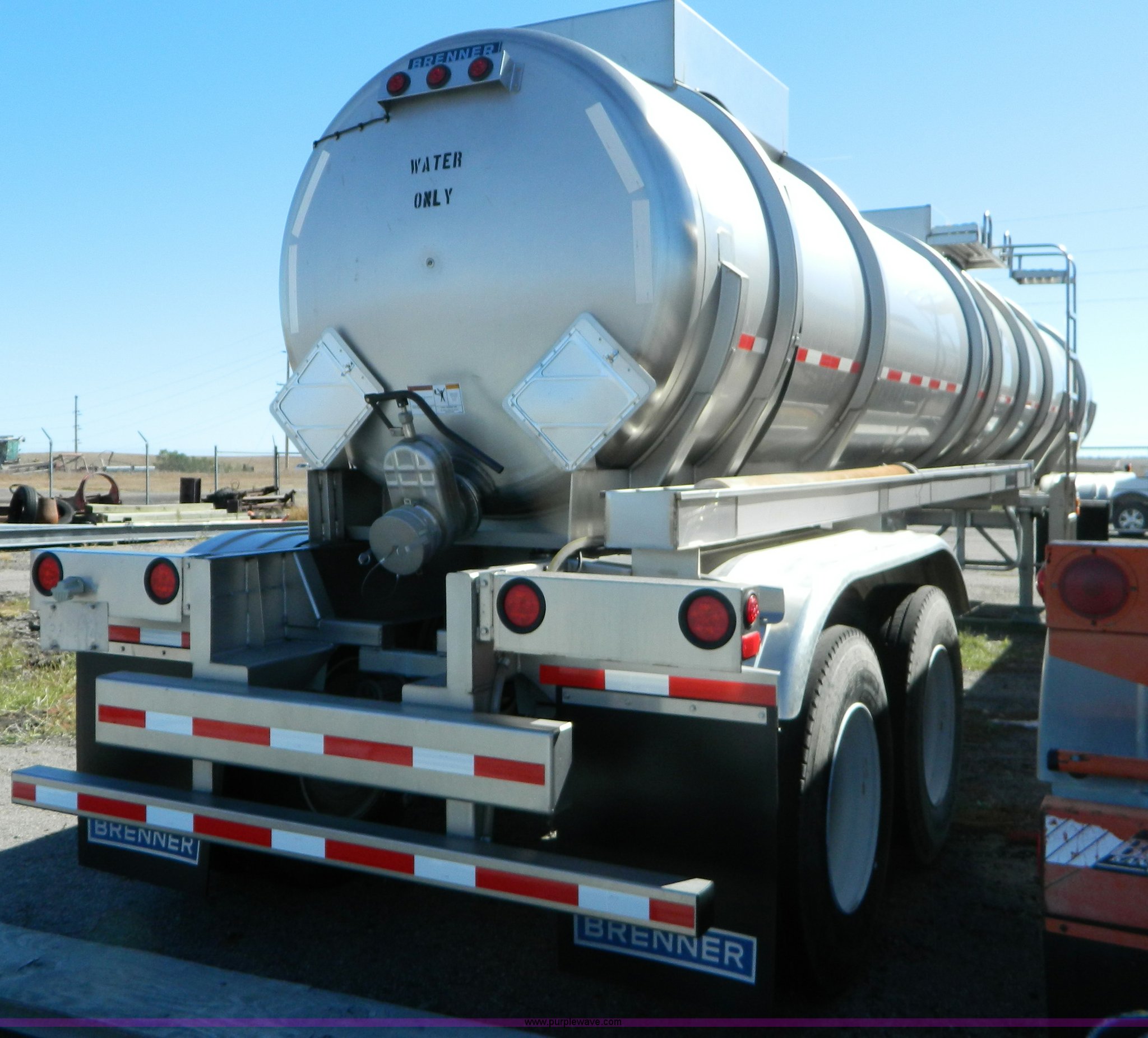 Purple Wave is selling a used Tank Trailer in Kansas. This item is a 2008 Brenner 2NC600010SS water tanker trailer with the following: 1,217 miles on hubometer, Stainless steel tank, (2) 3" dump outlets, 6" dump outlet, Spring suspension, 11R22.5 tires, KDOT ID E779-3017