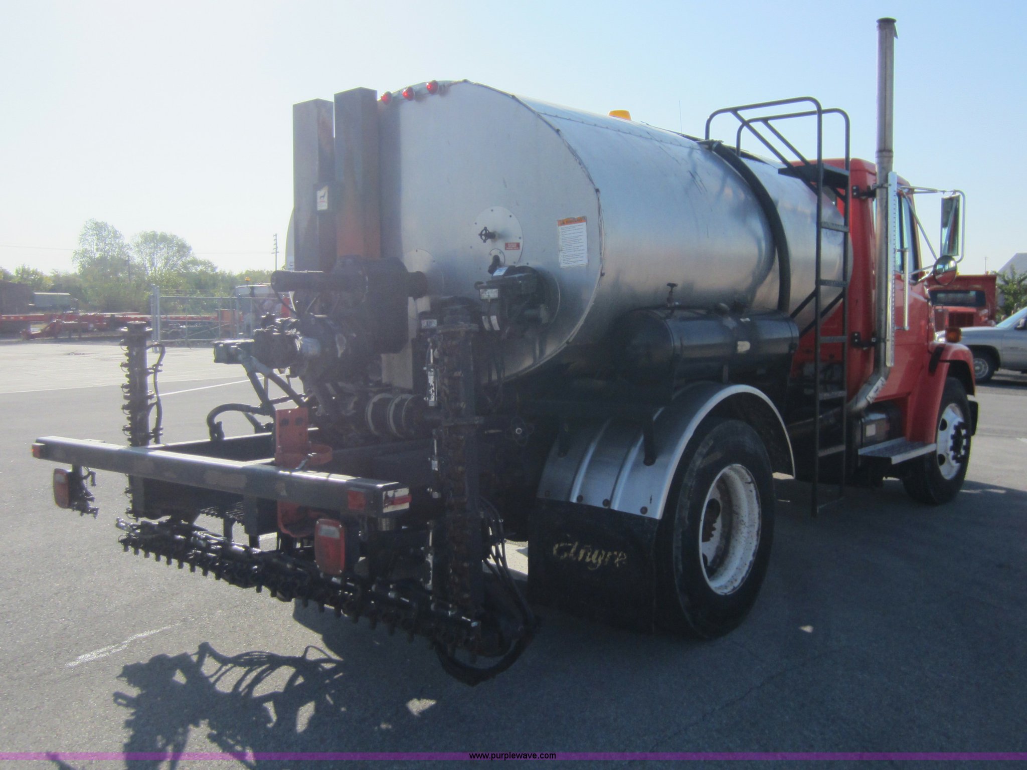 Purple Wave is selling a used Oil Distributor Truck in Kansas. This item is a 2002 Freightliner FL60 oil distributor truck with the following: 36,107 miles on odometer, 3,624 hours on meter, Cummins 5.9L L6 diesel engine, Allison automatic transmission, Suspension seat, Heat, Cruise, AM/FM/Cassette, Manual windows and locks, In cab distributor controls, Etnyre Shooter oil distributor, Serial M4736, 1,000 gallon tank, 10R22.5 tires, Main distributor oil pump is weak, Engine will overheat, KDOT ID E517-4021