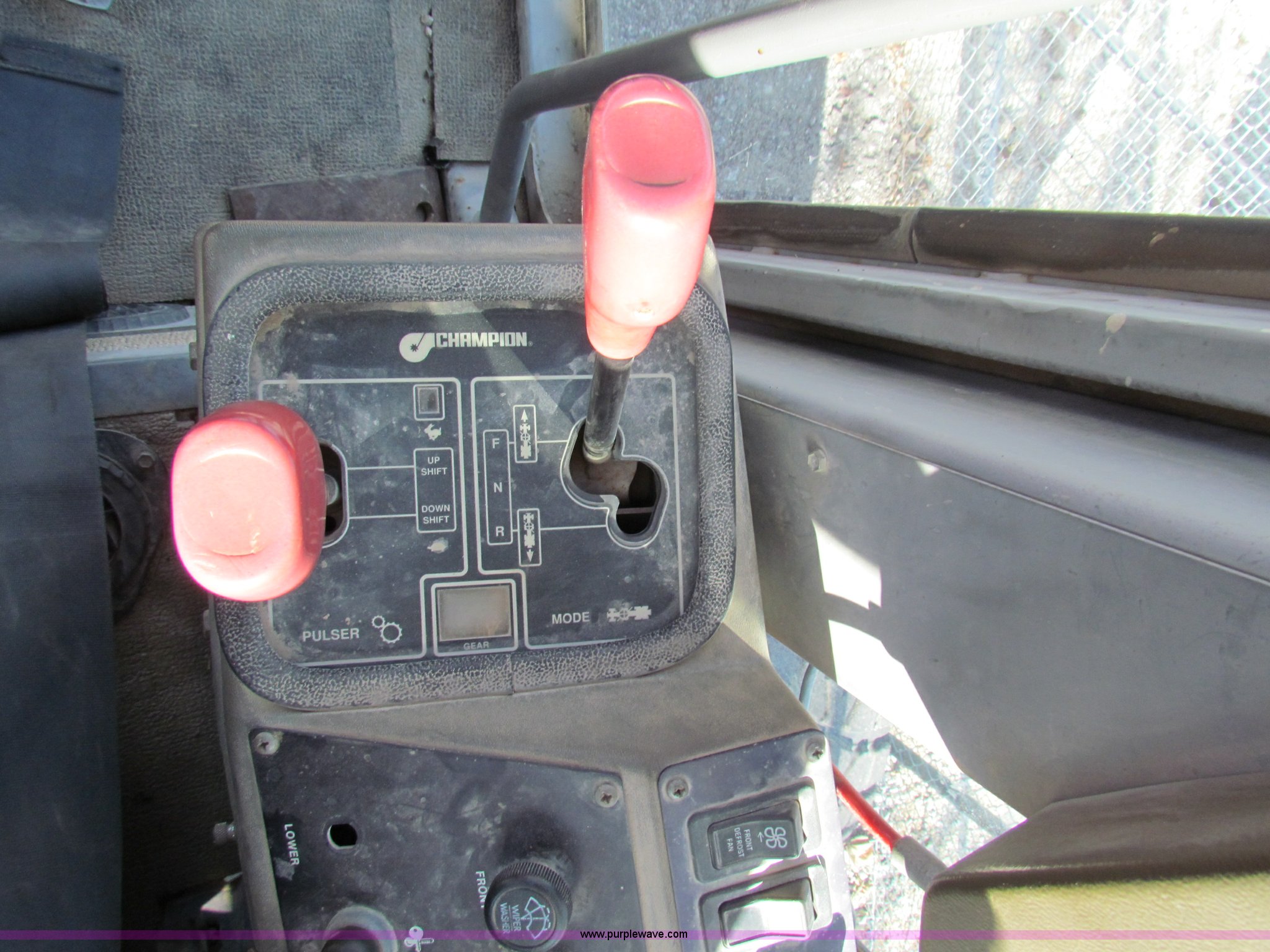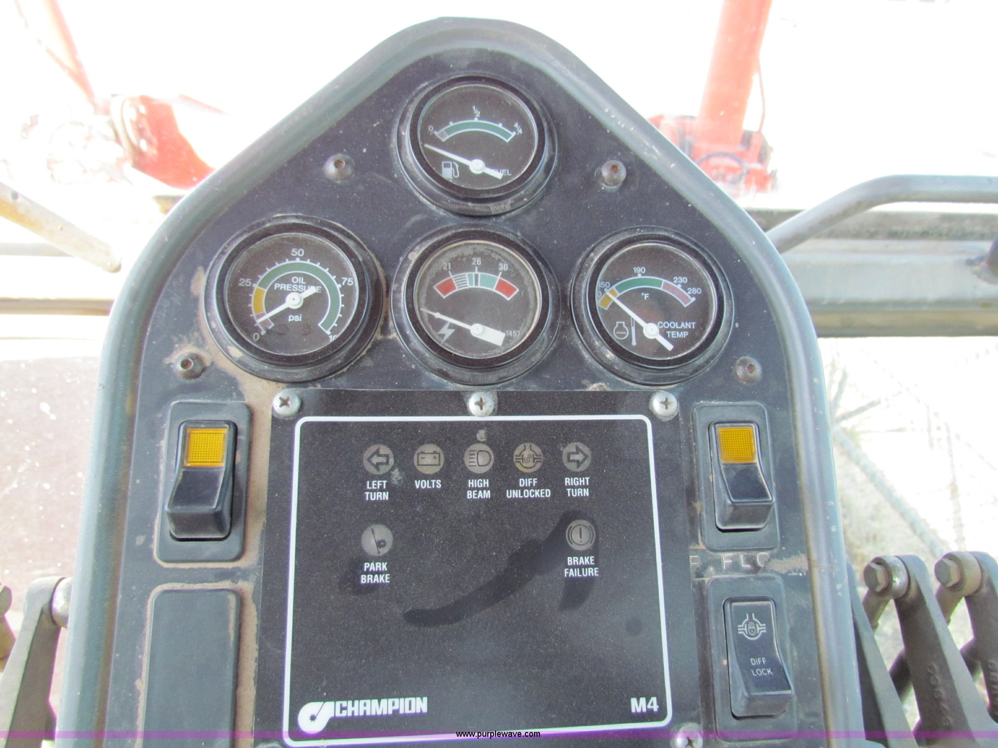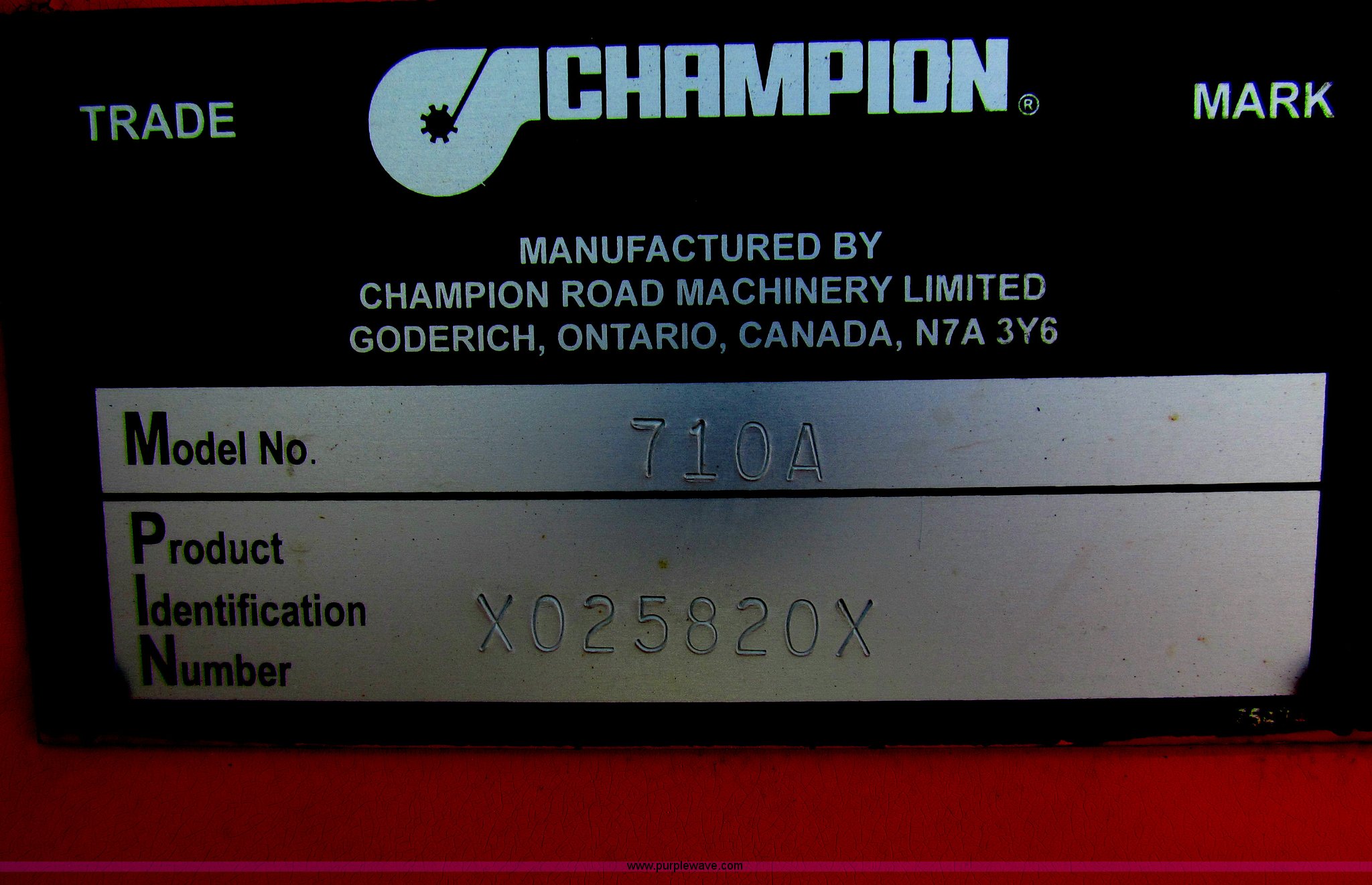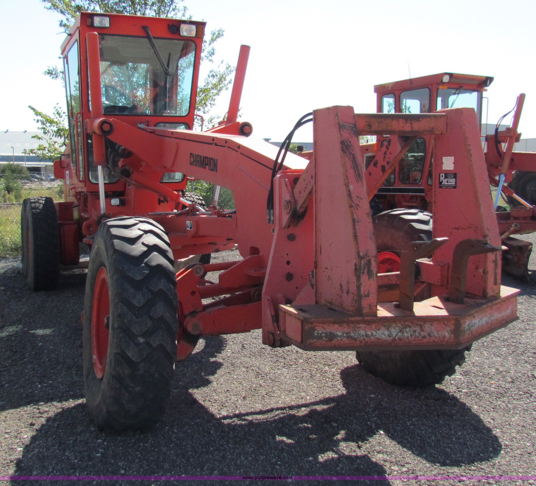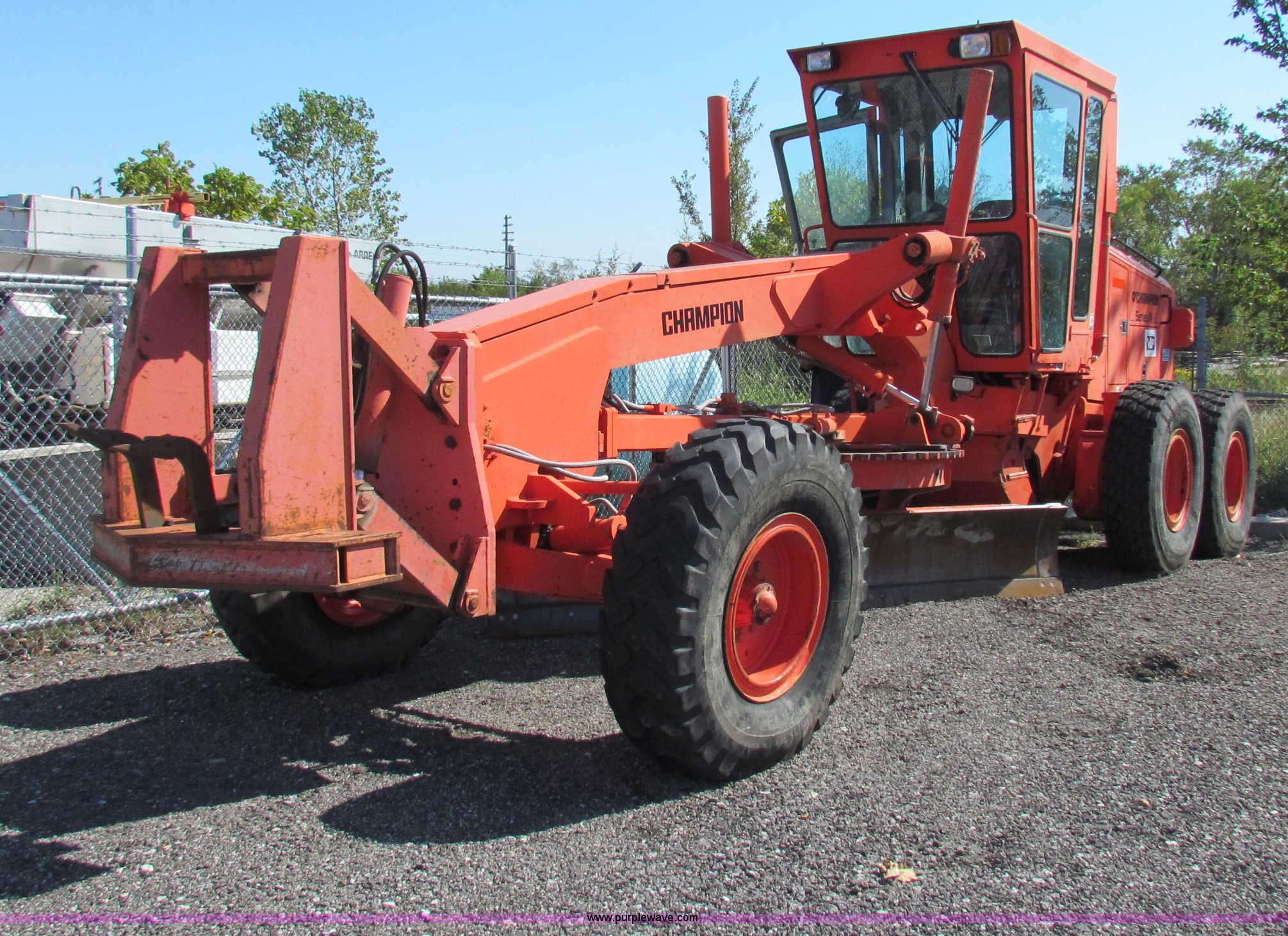 Purple Wave is selling a used Motor Grader in Kansas. This item is a 1995 Champion 710A motor grader with the following: 3,128 hours on meter, Cummins 5.9L diesel engine, Eight speed transmission, Enclosed cab, AC and heat, Suspension seat, Front and rear wipers, Front and rear work lights, (10) valve tilt stick, 12' blade, Front mount scarifier, (2) teeth, 31,050 lbs. base operating weight, Metal in final drives, Dead batteries, Serial 25820, KDOT ID E310-4046