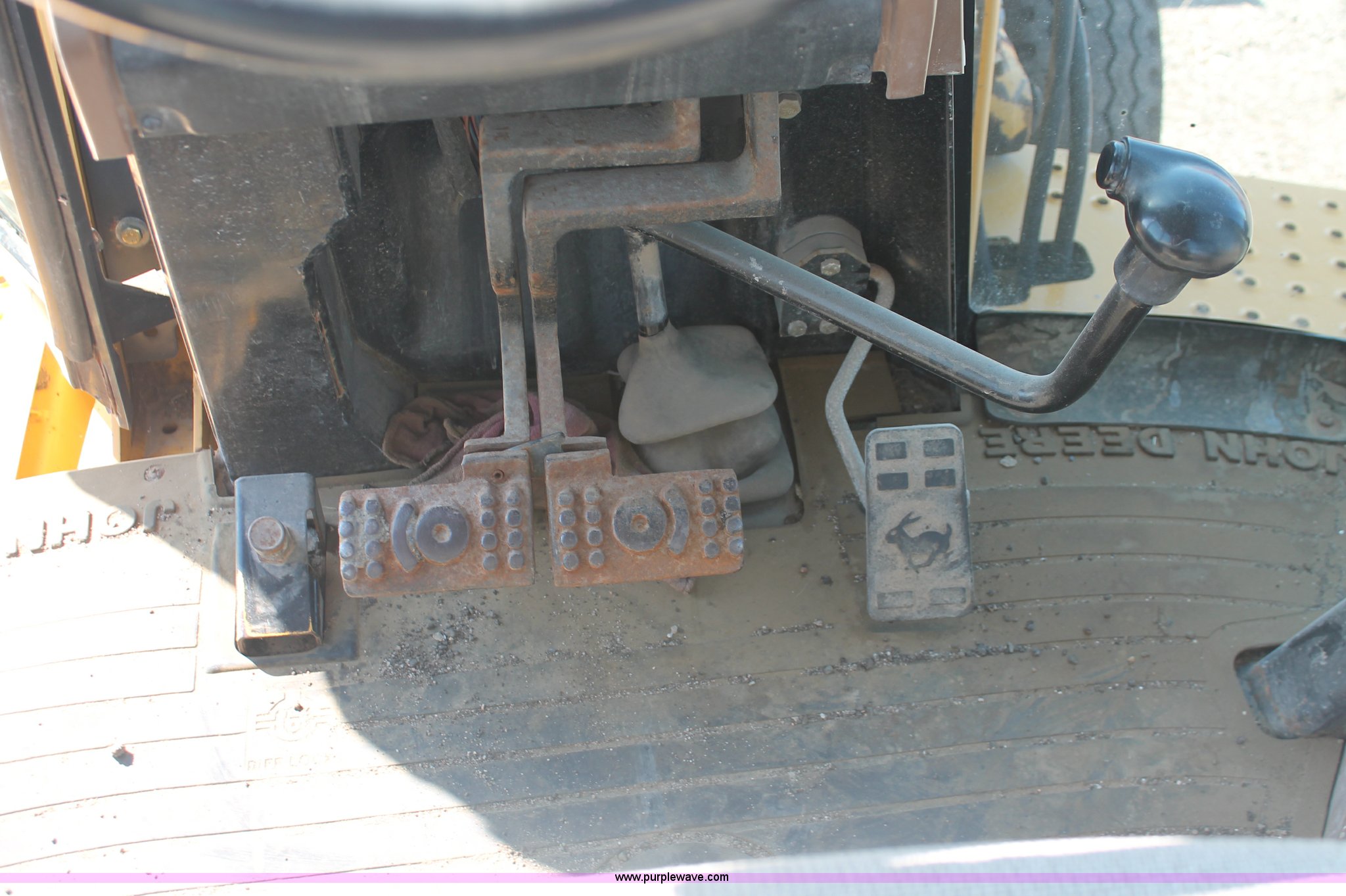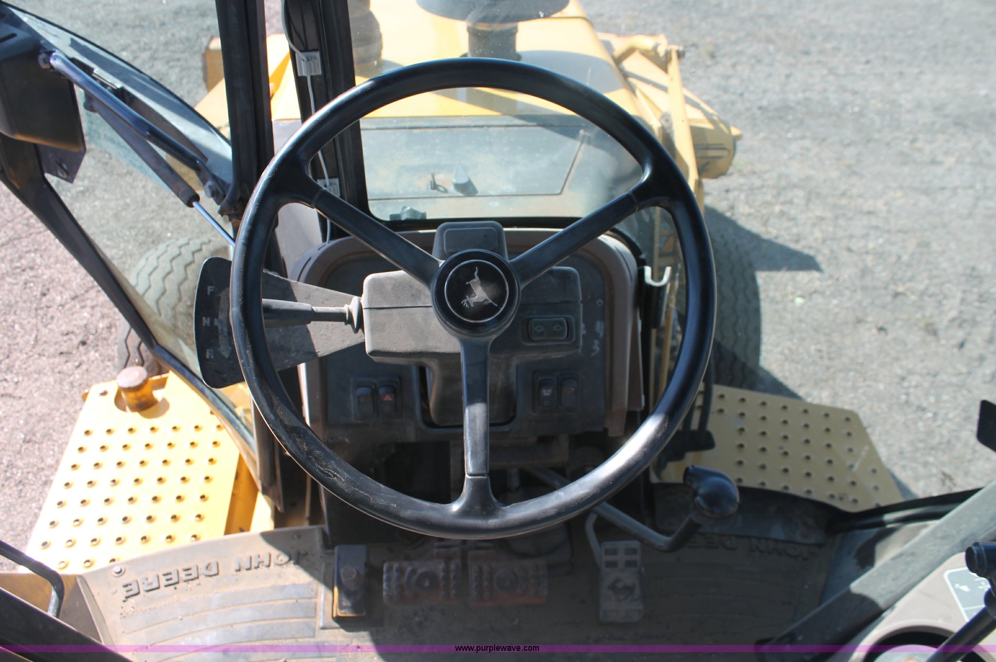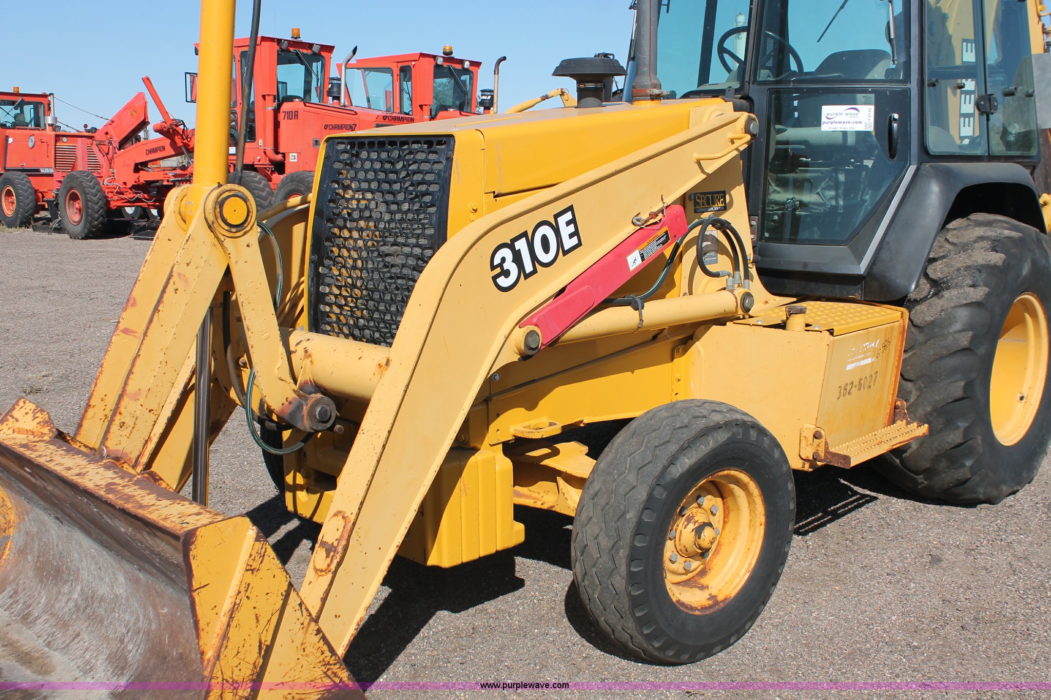 Purple Wave is selling a used Tractor Loader Backhoe in Kansas. This item is a 1997 John Deere 310E backhoe with the following: 1728 hours on meter, John Deere four cylinder diesel engine, Four speed power shift transmission, AC and heat, AC is nonfunctional, AM/FM, Suspension seat, Front and rear wipers, Front and rear worklights, Joystick loader control, 7' loader bucket, Two stick backhoe control, 24" five tooth backhoe bucket, 11L-16SL front tires, 19.5L-24 rear tires, Serial T0301EX837825, KDOT ID 362-6027