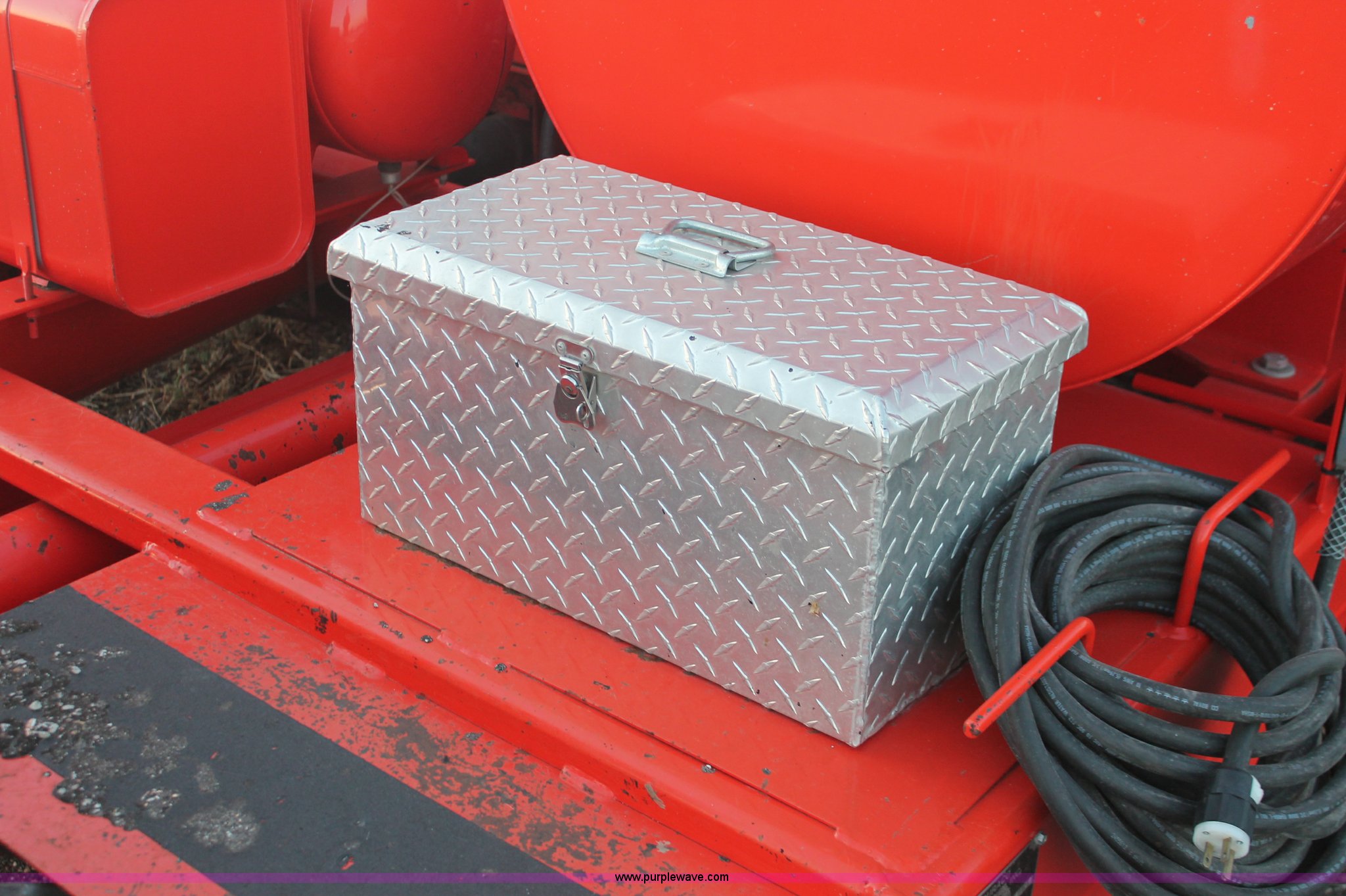 Purple Wave is selling a used Pot Hole Patcher in Kansas. This item is a 2005 Duaco 125DJT pot hole patcher with the following: 445 hours on meter, John Deere 4.5L 80hp four cylinder diesel engine, 250 gallon tack oil tank, Toolbox, Material distribution hose with heated tip, Key start, AC power cord, Top material fill, Pintle hitch, Tandem axle trailer, 225/75R15 tires, KDOT ID 607-6025