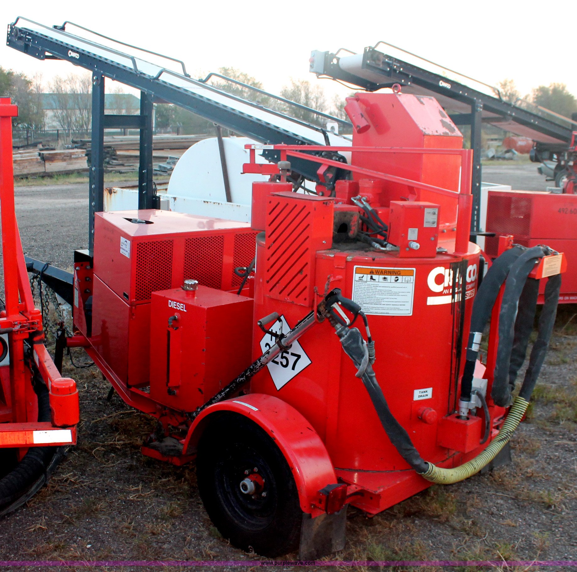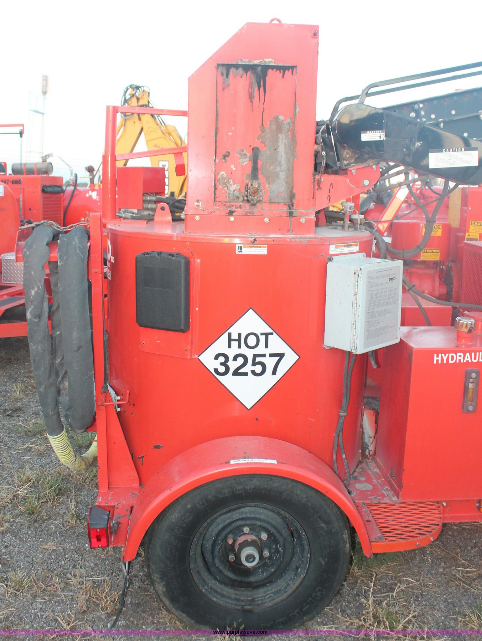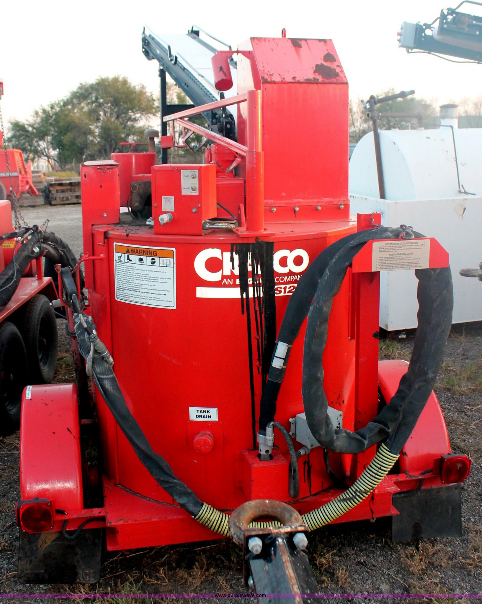 Purple Wave is selling a used Pot Hole Patcher in Kansas. This item is a 2001 Craft Co SS-125D crack seal machine with the following: 1555 hours on meter, Isuzu three cylinder diesel engine, Key start, Diesel fired heating element, Conveyor with wired contol box, Material distribution wand and hose, Pintle hitch, 225/75R15 tires, Does not always heat up properly or in a timely manner, KDOT ID 492-6101