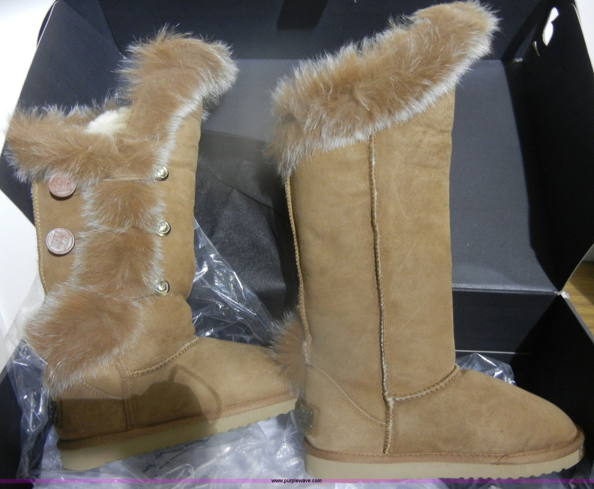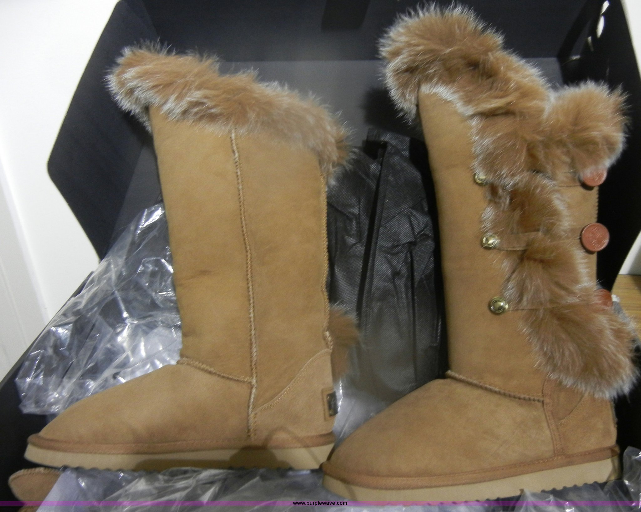 Purple Wave is selling a used All Other Household Items in Kansas. This item is a Women's designer boots with the following: Size 9, Still in box, Bag and key chain included