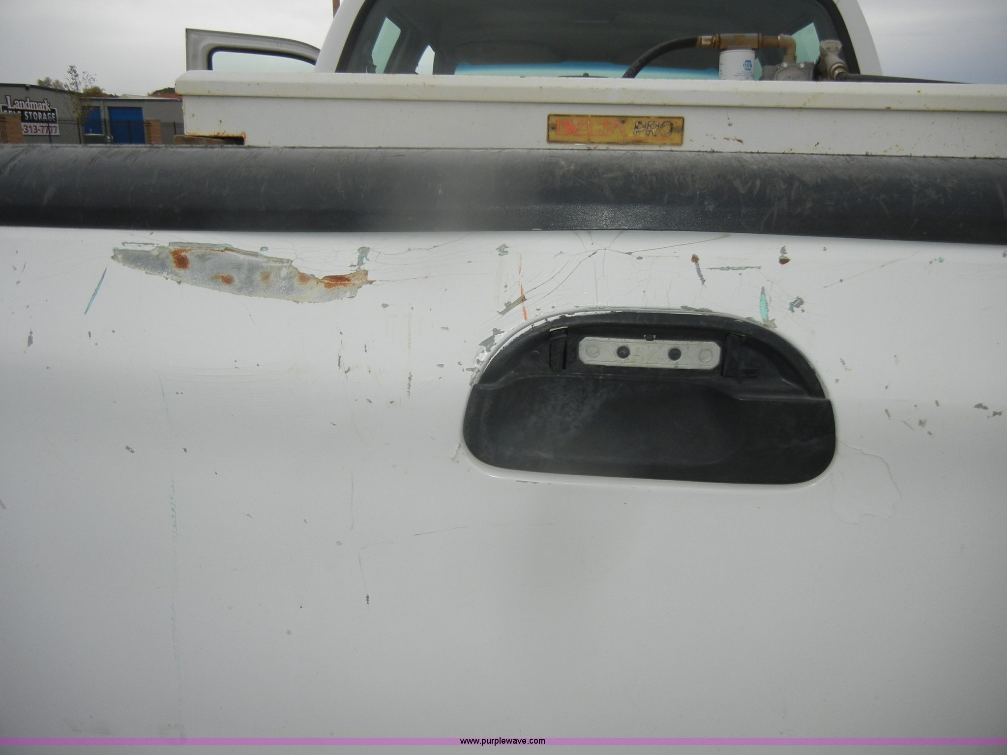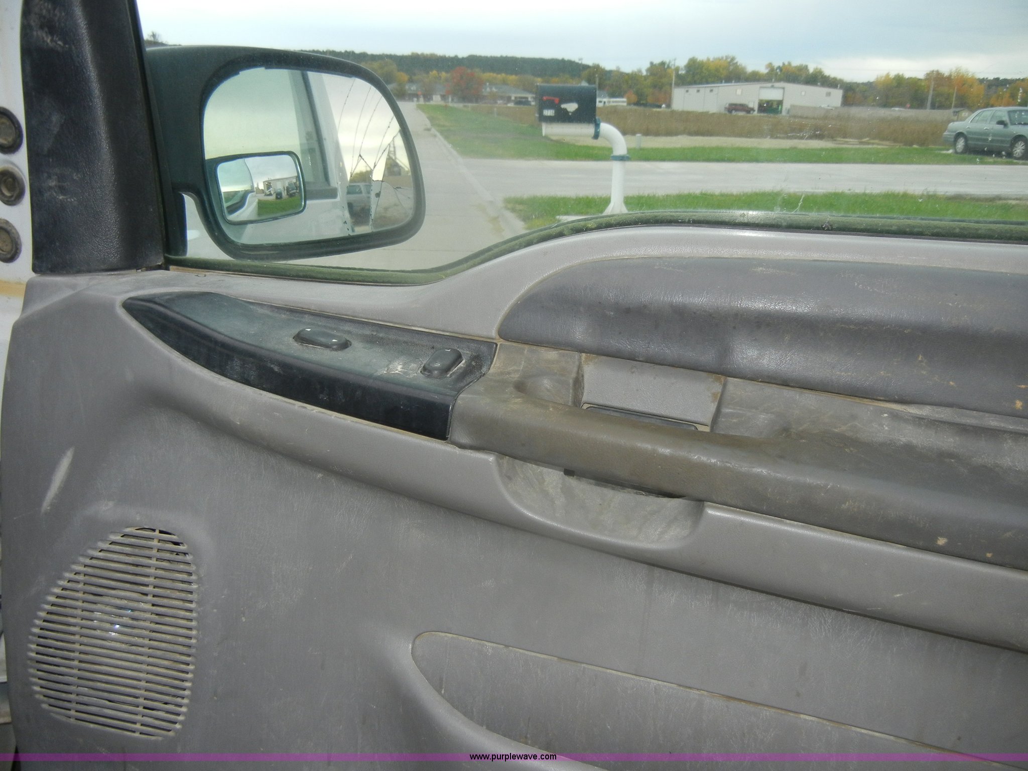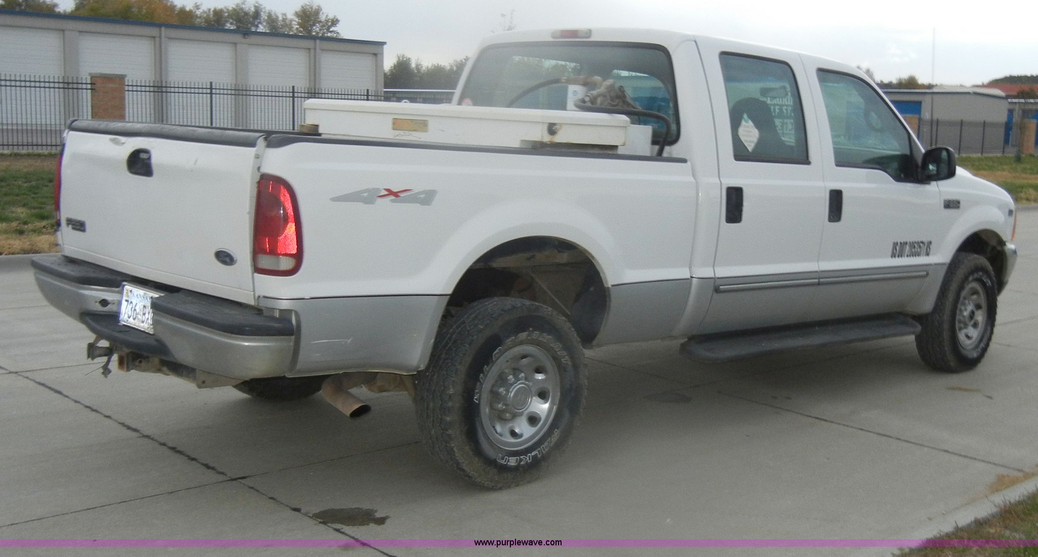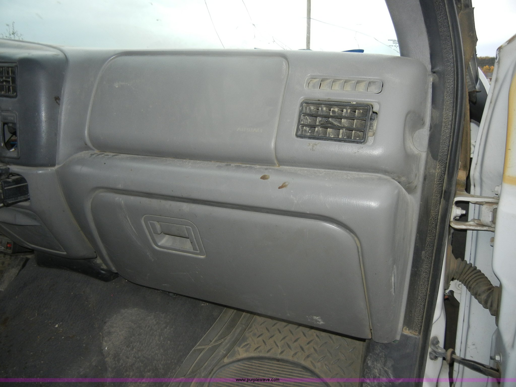 Purple Wave is selling a used Passenger Vehicle in Kansas. This item is a 1999 Ford F350 Super Duty Crew Cab pickup truck with the following: 248,195 miles on odometer, Triton 6.8L V10 gas engine, Automatic transmission, Four wheel drive, AC and heat, Tilt, Cruise, AM/FM/CD, Power windows, locks, and mirrors, Cloth interior, Side steps, Front tow hooks, 7' x 6' bed, Toolbox, Fuel tank, Gooseneck ball, Receiver hitch, Trailer wiring, 265/75R16 tires, Interior/exterior cosmetic damage, Cracked windshield, Passenger side mirror cracked, Hail damage, Paint peeling/chipping, No tailgate handle, Dents and scratches