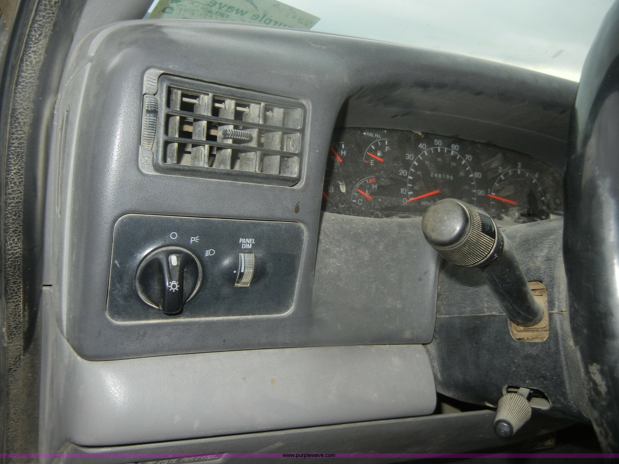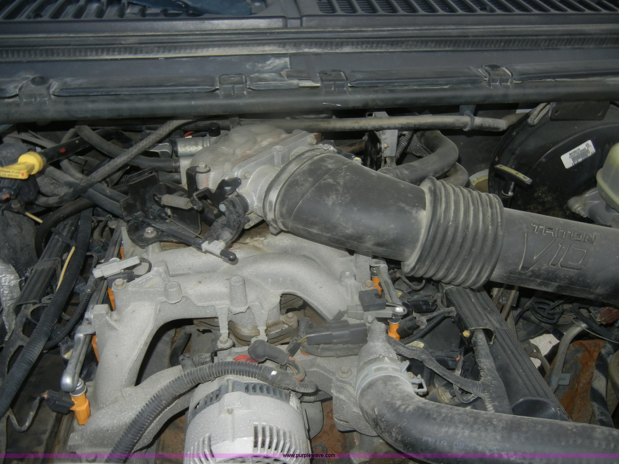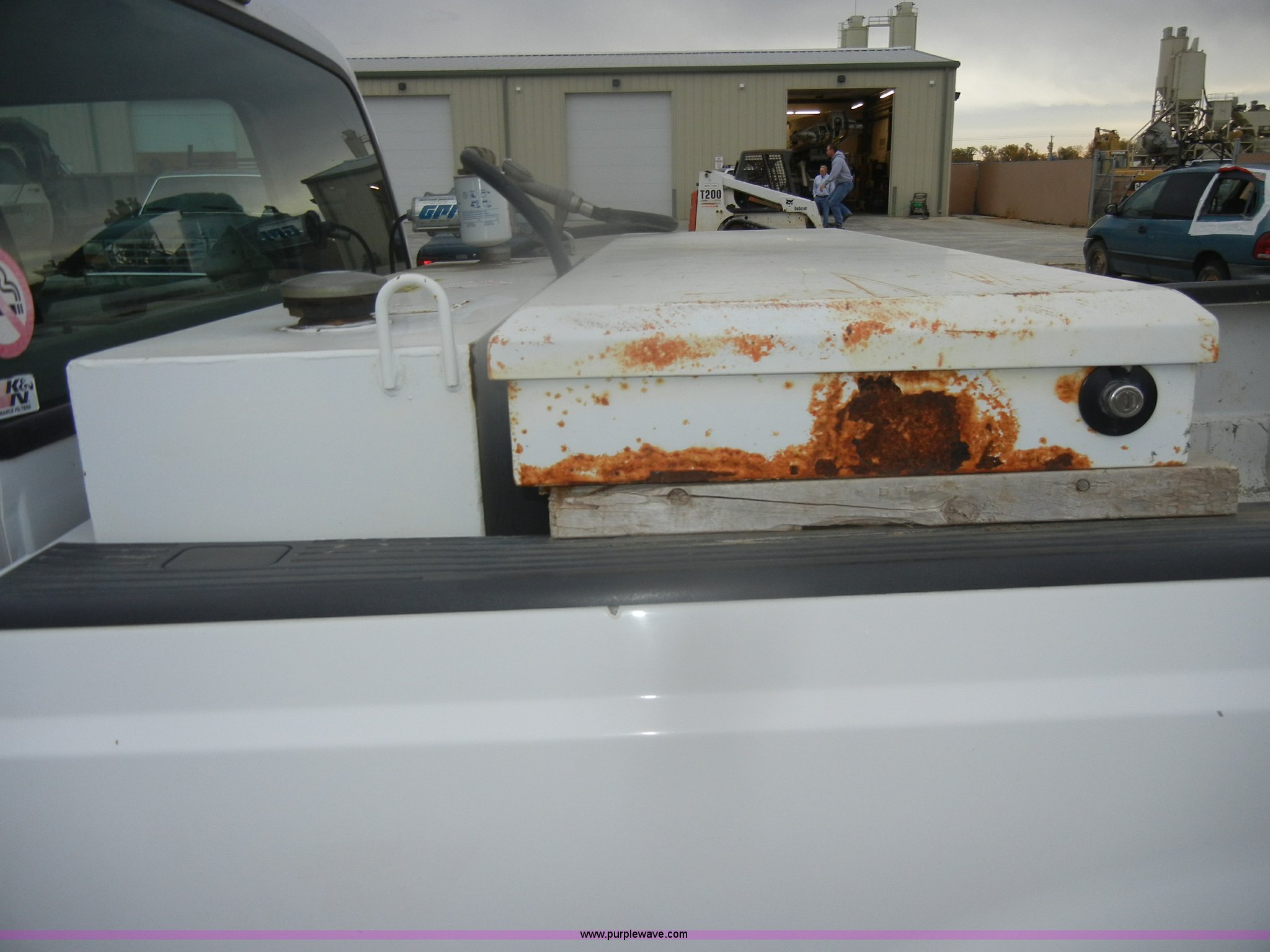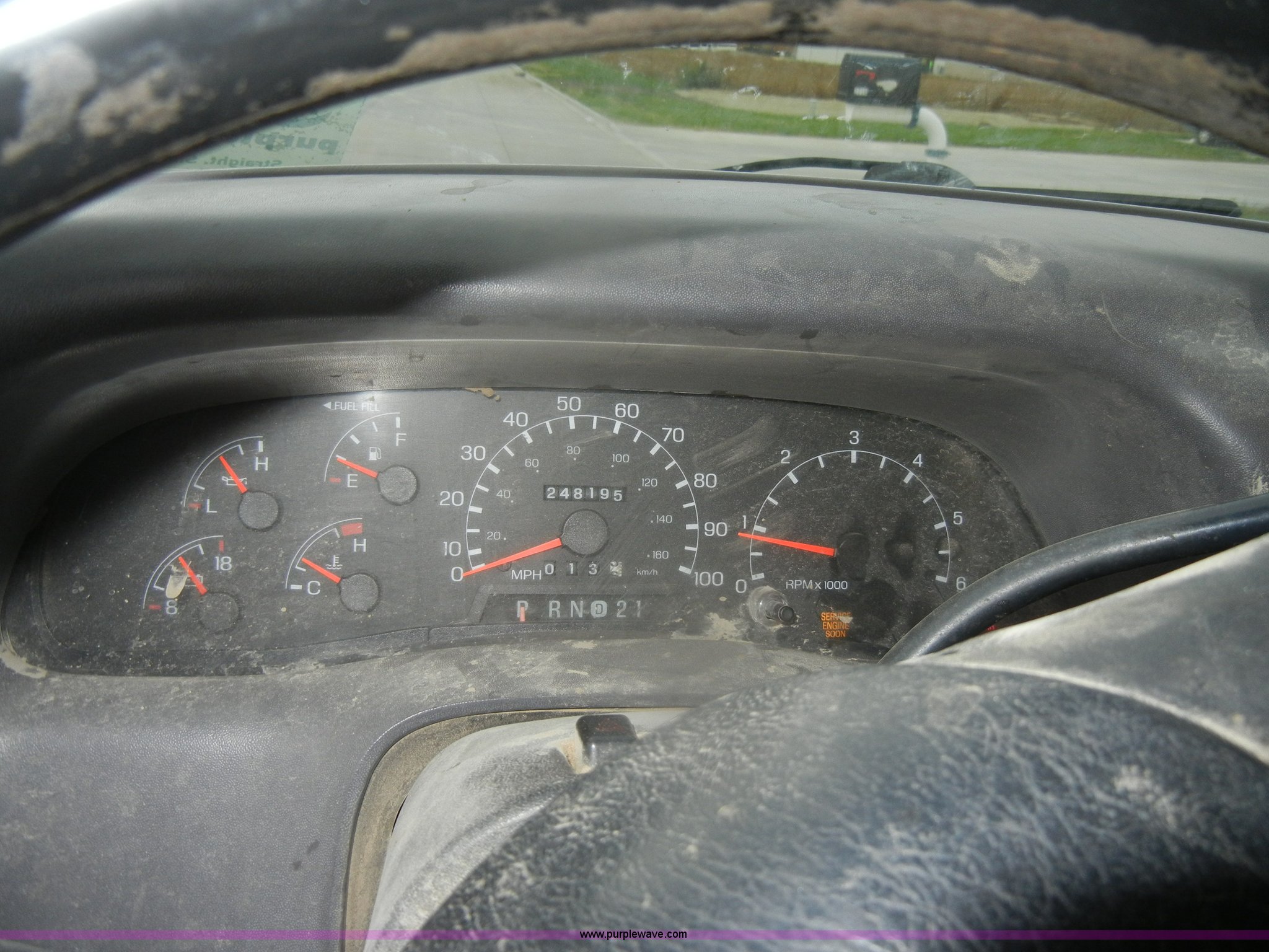 Purple Wave is selling a used Passenger Vehicle in Kansas. This item is a 1999 Ford F350 Super Duty Crew Cab pickup truck with the following: 248,195 miles on odometer, Triton 6.8L V10 gas engine, Automatic transmission, Four wheel drive, AC and heat, Tilt, Cruise, AM/FM/CD, Power windows, locks, and mirrors, Cloth interior, Side steps, Front tow hooks, 7' x 6' bed, Toolbox, Fuel tank, Gooseneck ball, Receiver hitch, Trailer wiring, 265/75R16 tires, Interior/exterior cosmetic damage, Cracked windshield, Passenger side mirror cracked, Hail damage, Paint peeling/chipping, No tailgate handle, Dents and scratches