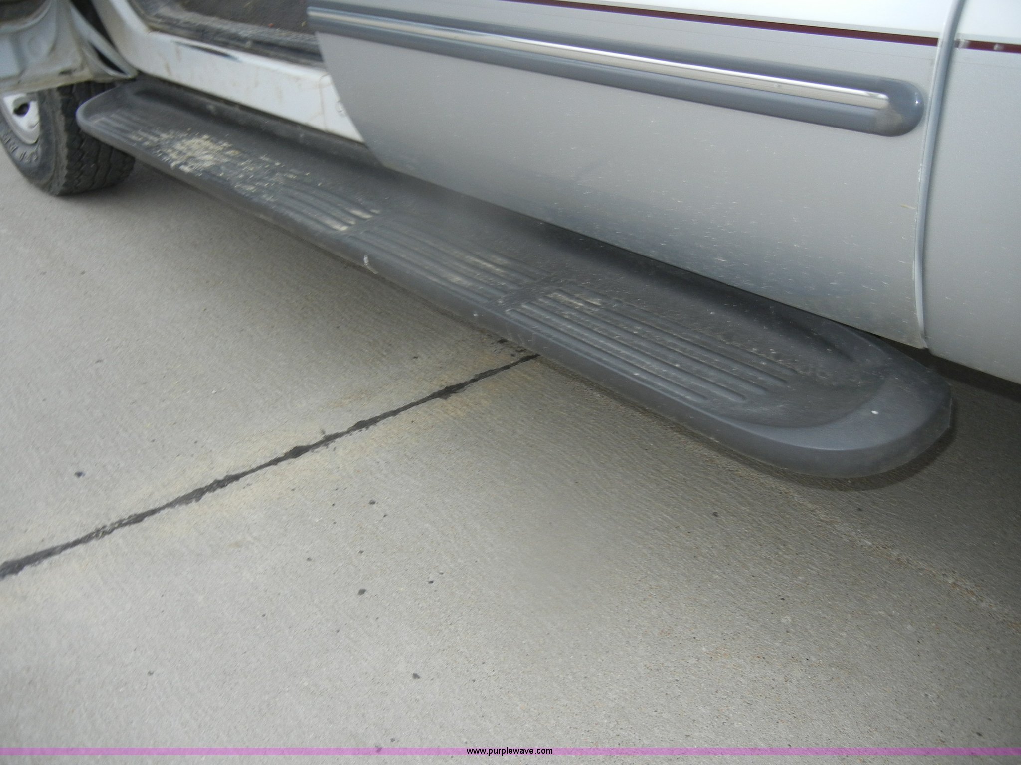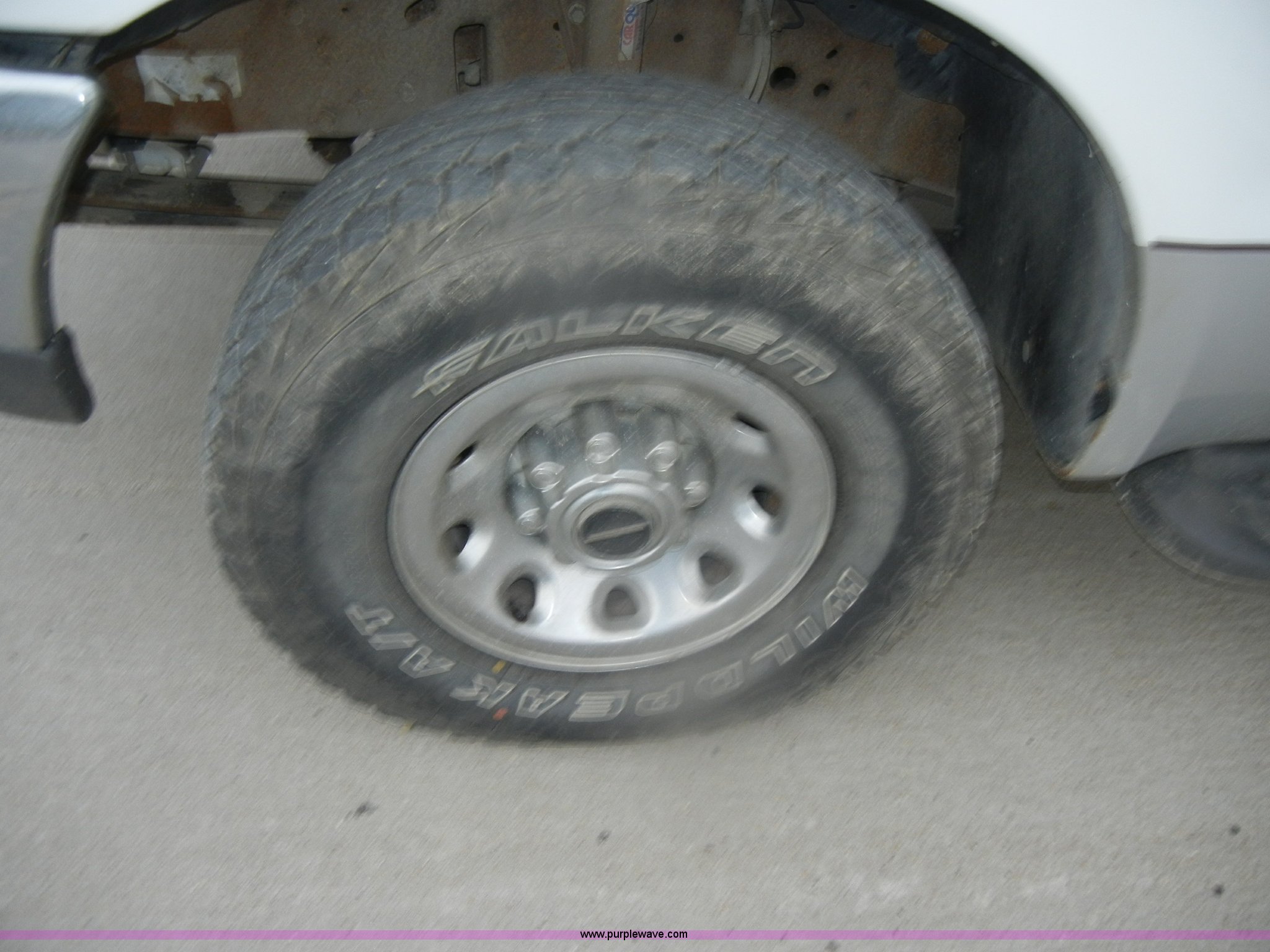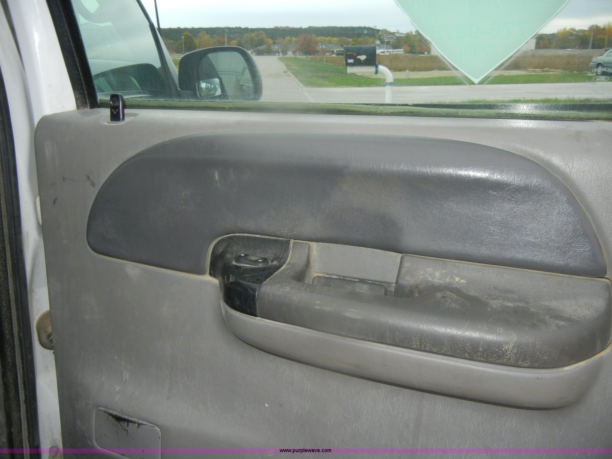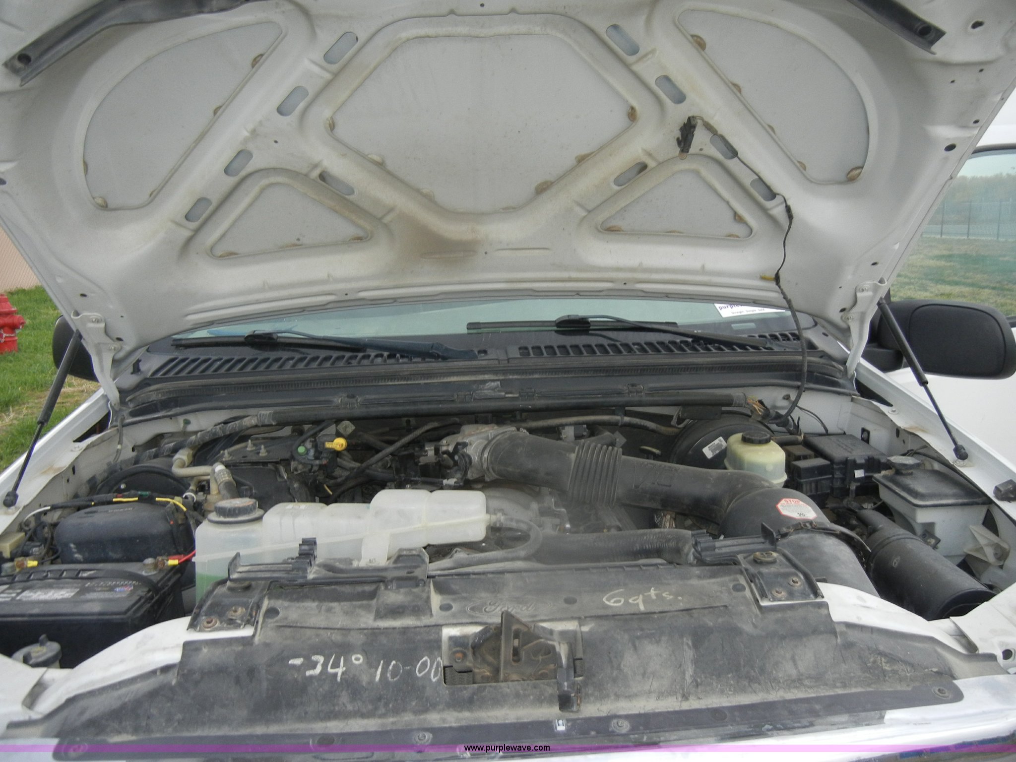 Purple Wave is selling a used Passenger Vehicle in Kansas. This item is a 1999 Ford F350 Super Duty Crew Cab pickup truck with the following: 248,195 miles on odometer, Triton 6.8L V10 gas engine, Automatic transmission, Four wheel drive, AC and heat, Tilt, Cruise, AM/FM/CD, Power windows, locks, and mirrors, Cloth interior, Side steps, Front tow hooks, 7' x 6' bed, Toolbox, Fuel tank, Gooseneck ball, Receiver hitch, Trailer wiring, 265/75R16 tires, Interior/exterior cosmetic damage, Cracked windshield, Passenger side mirror cracked, Hail damage, Paint peeling/chipping, No tailgate handle, Dents and scratches