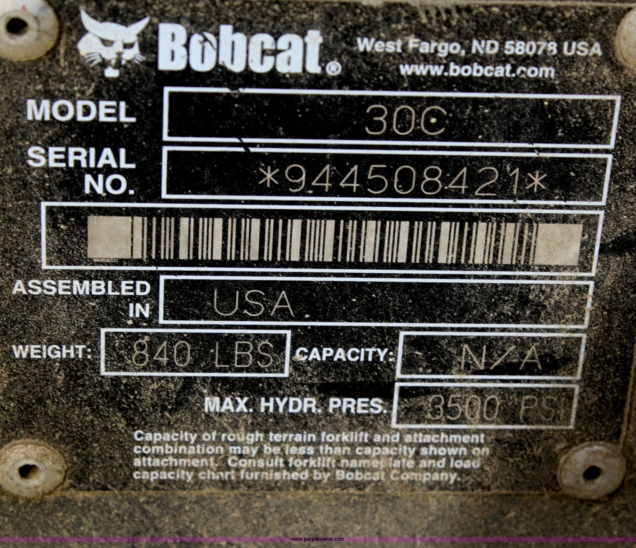 Purple Wave is selling a used Skid Steer Attach. in Kansas. This item is a Bobcat 30C post hole digger with the following: 9" auger, 840 lbs, Serial 944508421