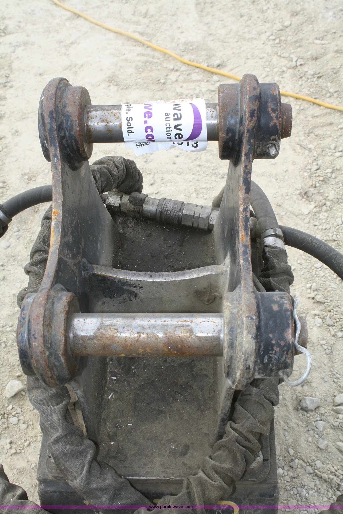 Purple Wave is selling a used Excavator Attach. in Kansas. This item is a Caterpillar vibratory plate compactor attachment with the following: 26"L x 12"W plate, 420 lbs