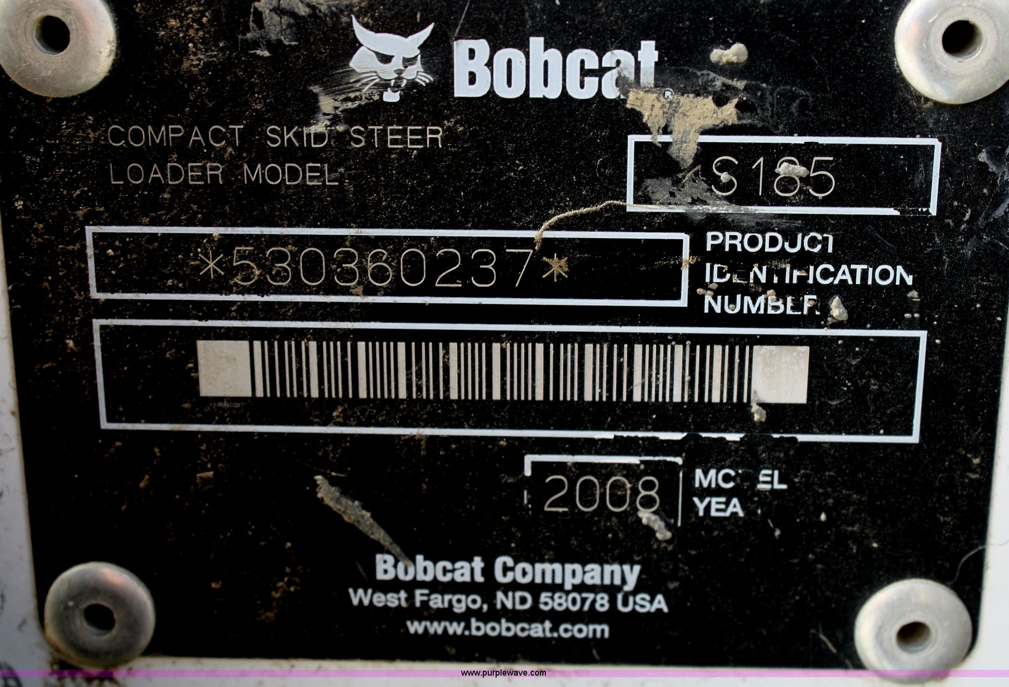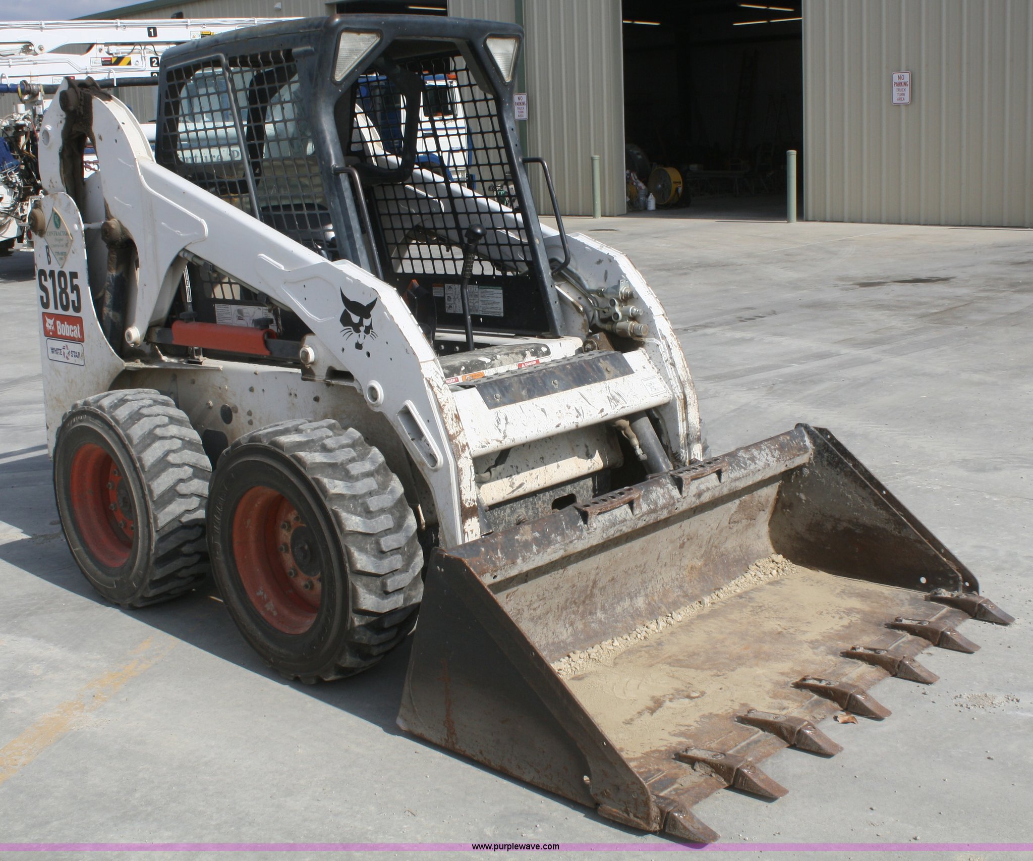 Purple Wave is selling a used Skid Steer Loader in Kansas. This item is a 2008 Bobcat S185 skid steer with the following: 1,095 hours on meter, Kubota four cylinder diesel engine, Foot loader controls, Auxiliary hydraulics, 67" bucket, (7) teeth, 10-16.5 tires, 5,808 lbs. base operating weight, Serial 530360237