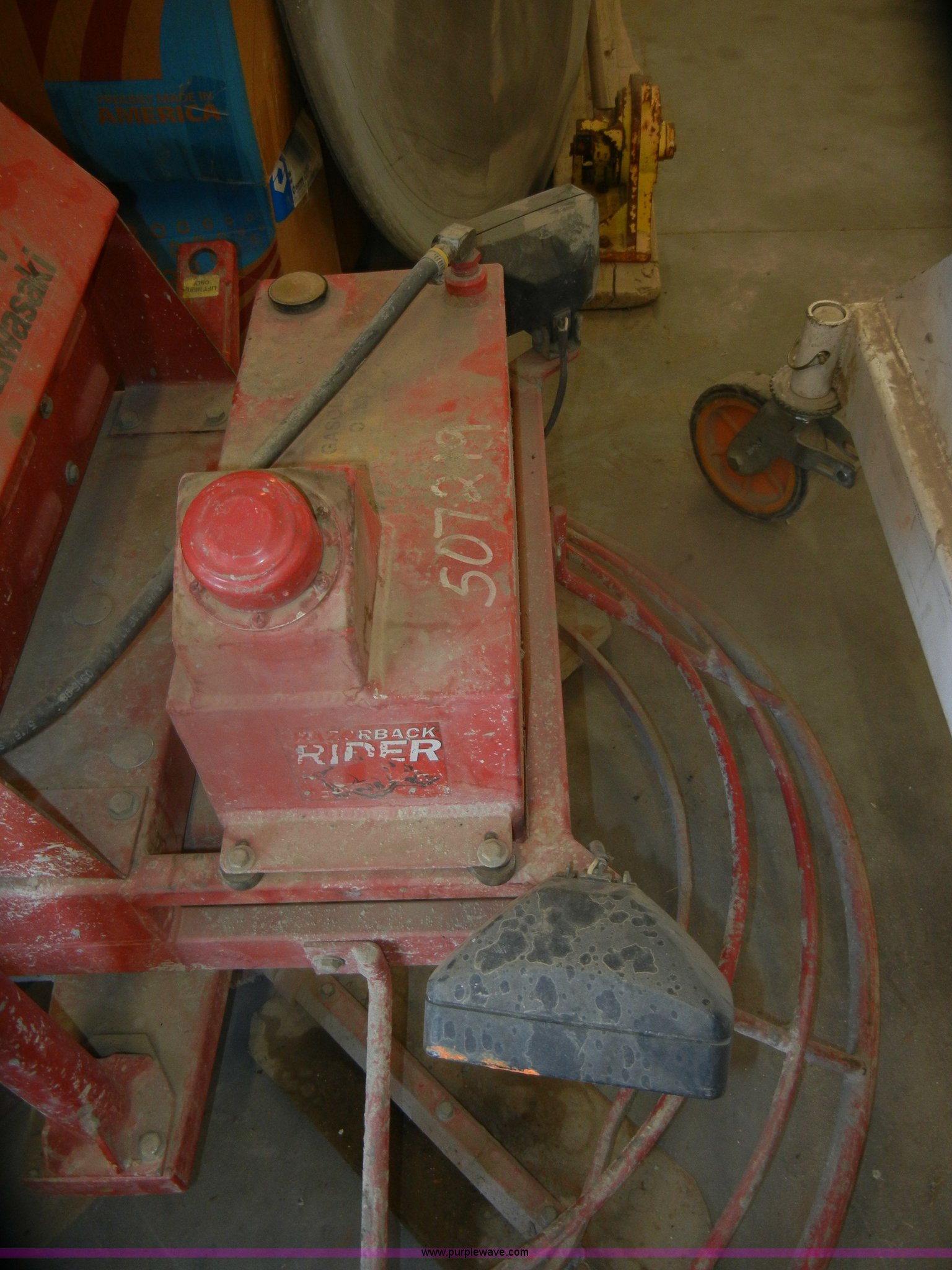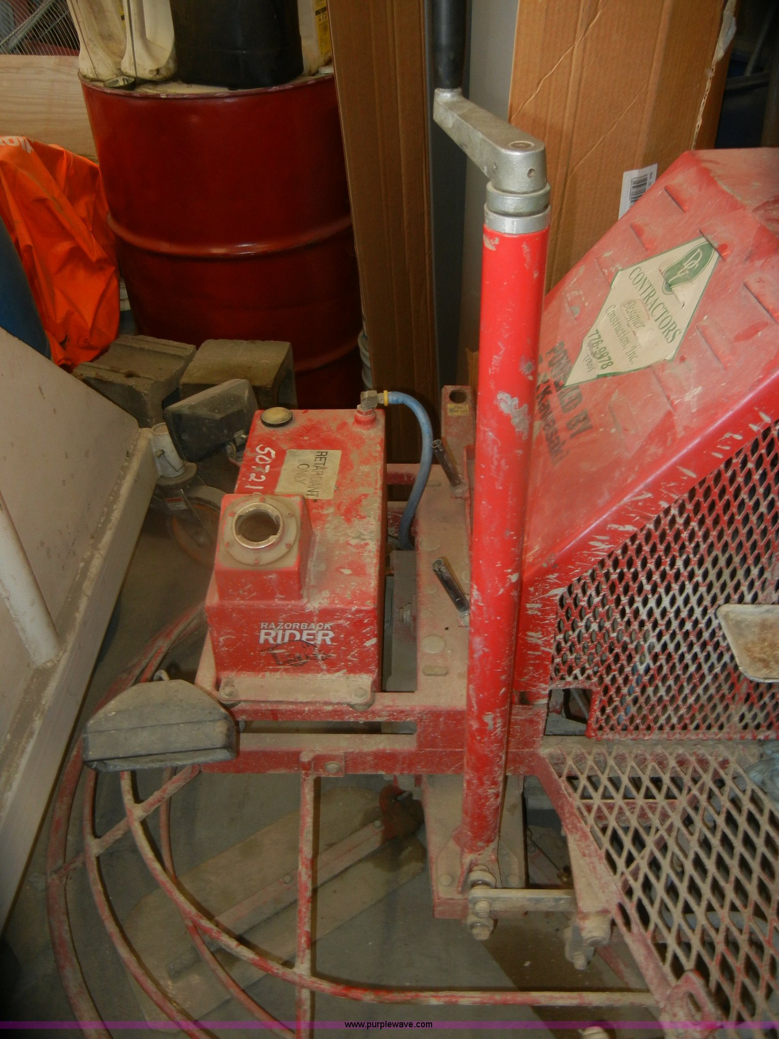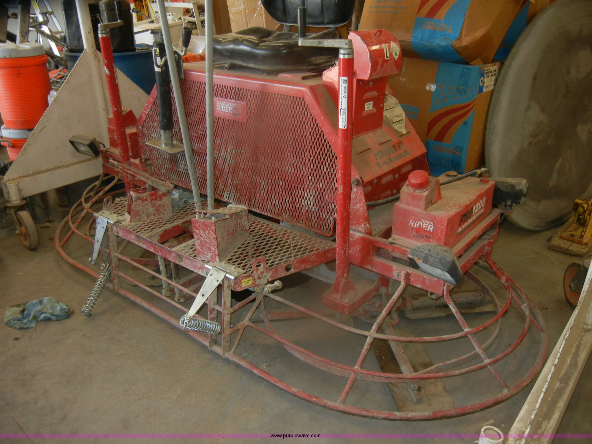 Purple Wave is selling a used Concrete Equip. or Acces. in Kansas. This item is a 1999 Razorback ride-on dual trowel with the following: Front and rear lights, Kawasaki gas engine, Hour meter inoperable