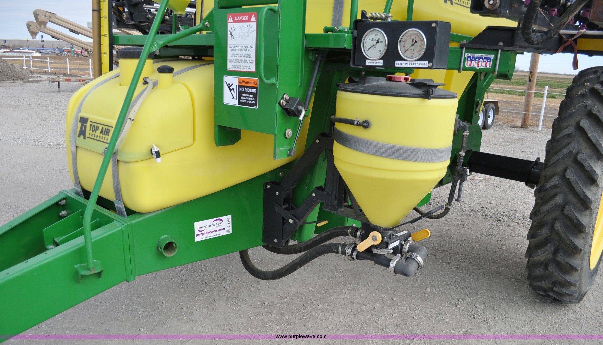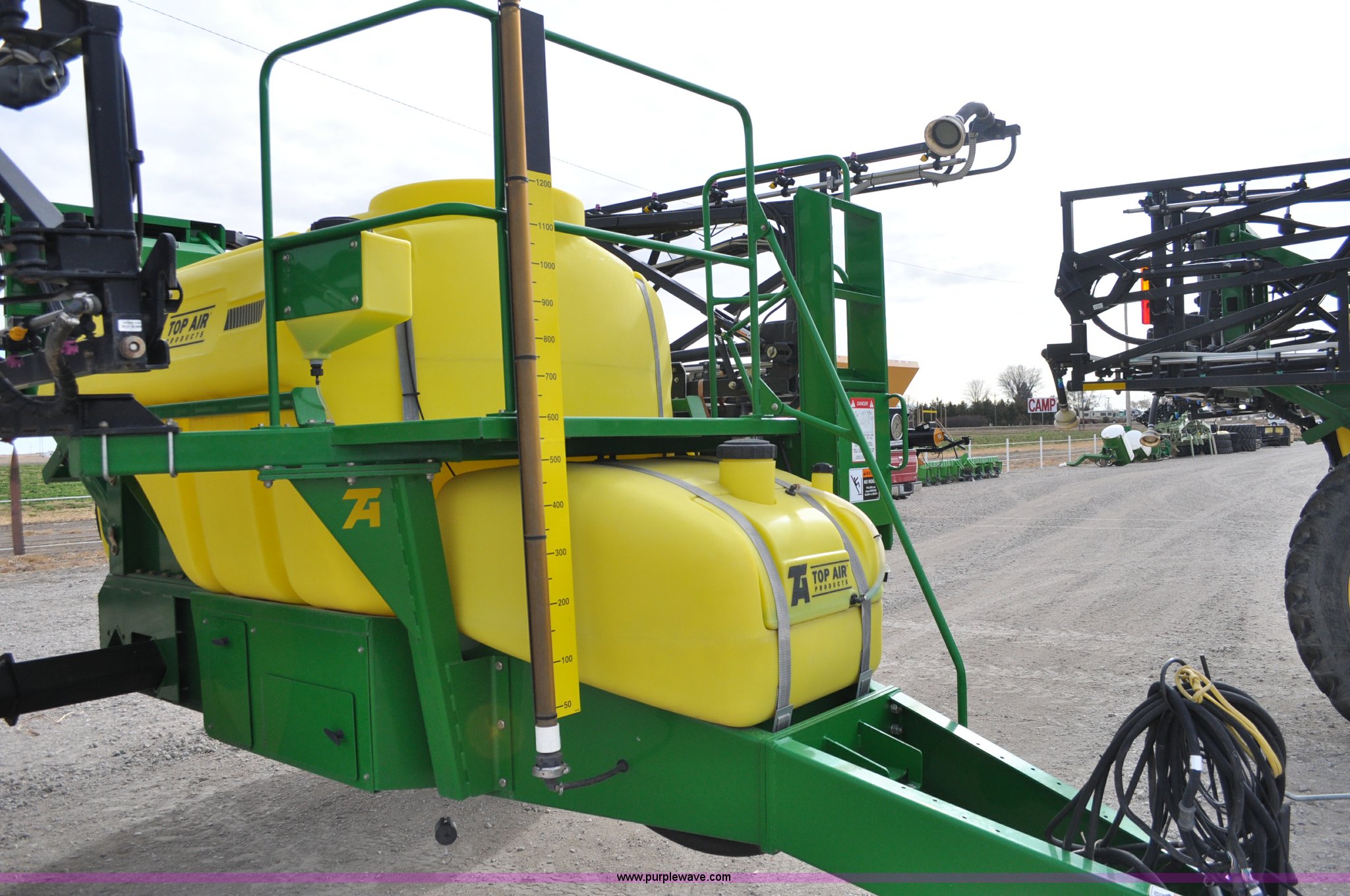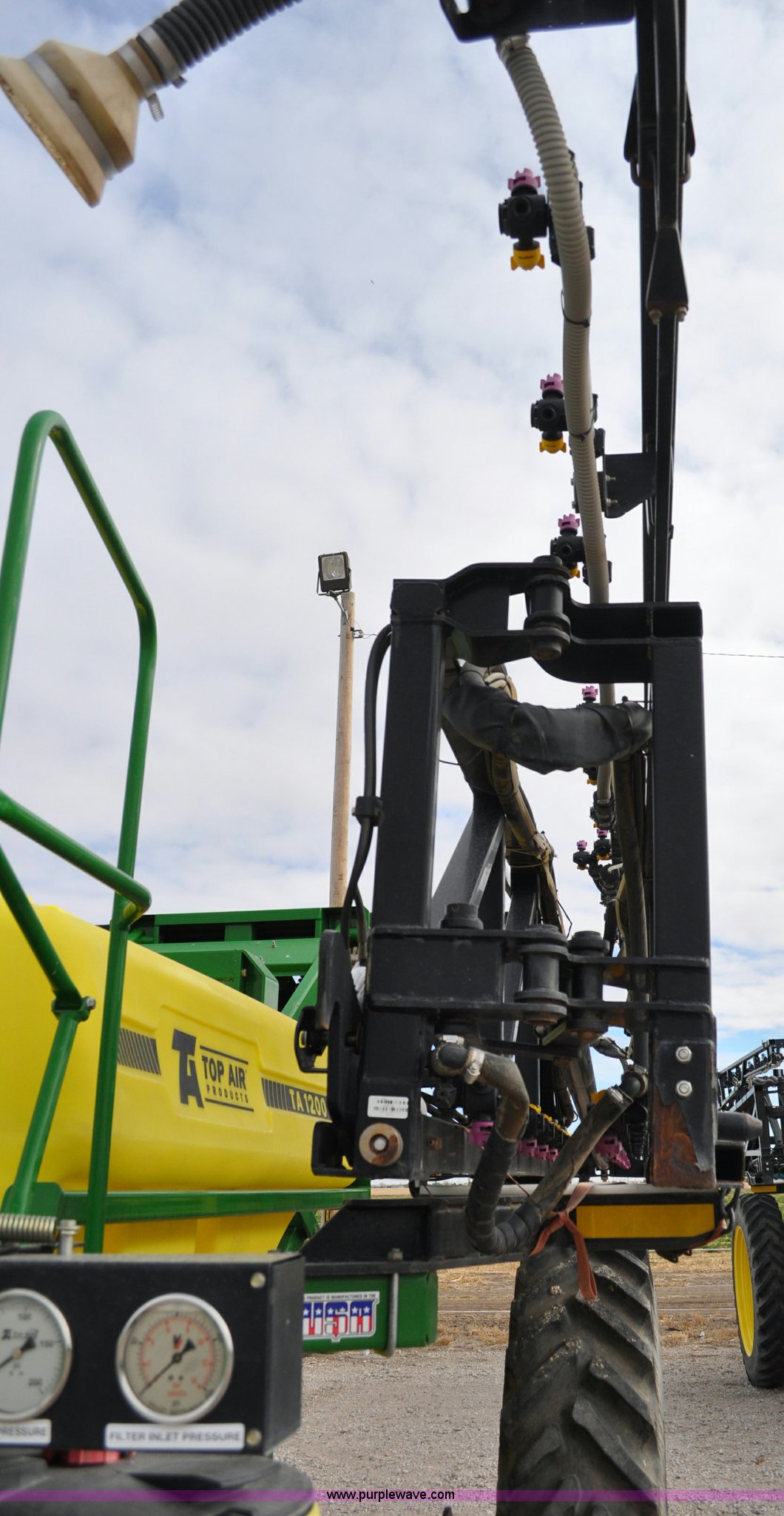 Purple Wave is selling a used Applicator Pull Type in Nebraska. This item is a 2006 Top Air TA1200 sprayer with the following: 90' boom, Folds to spray at 60', Triple nozzle bodies, 15" centers, Stainless steel liquid tubes, Breakaway booms, Boom on spring and shock suspension, Hydraulic boom height control, Hydraulic boom tip raise and lower, 1,200 gallon tank, 140 gallon rinse and flush tank, 16 gallon induction tank that drops down, Small clean water hand wash tank, Foam markers at 90' or 60', Hydraulic pump drive, Front tank level sight gauge, Tip pressure gauge, Filter inlet pressure gauge, Raven 450 monitor, Wheel speed sensor, Road lights, Adjustable axles, 380/90R46 tires, Serial B22530104