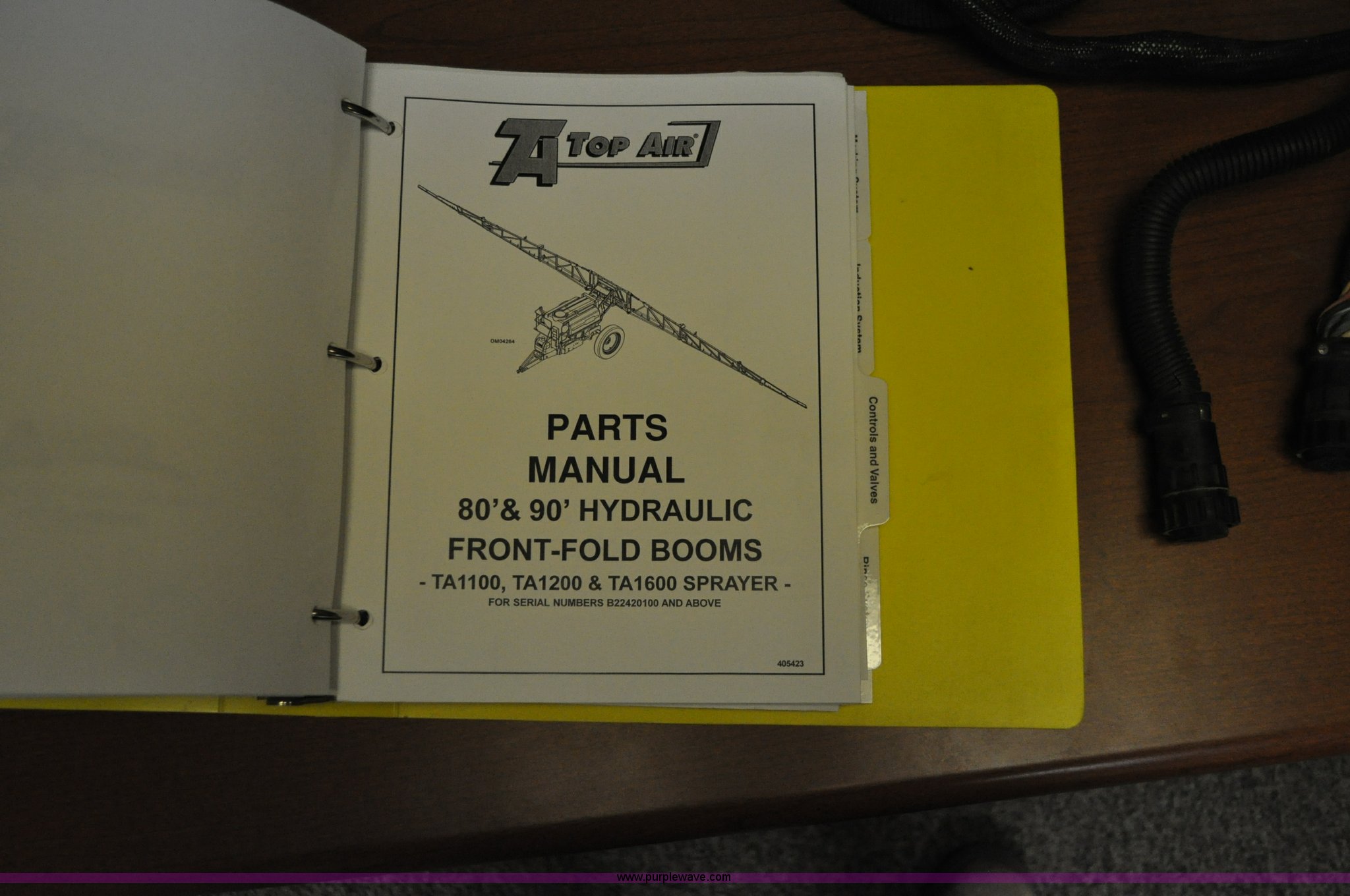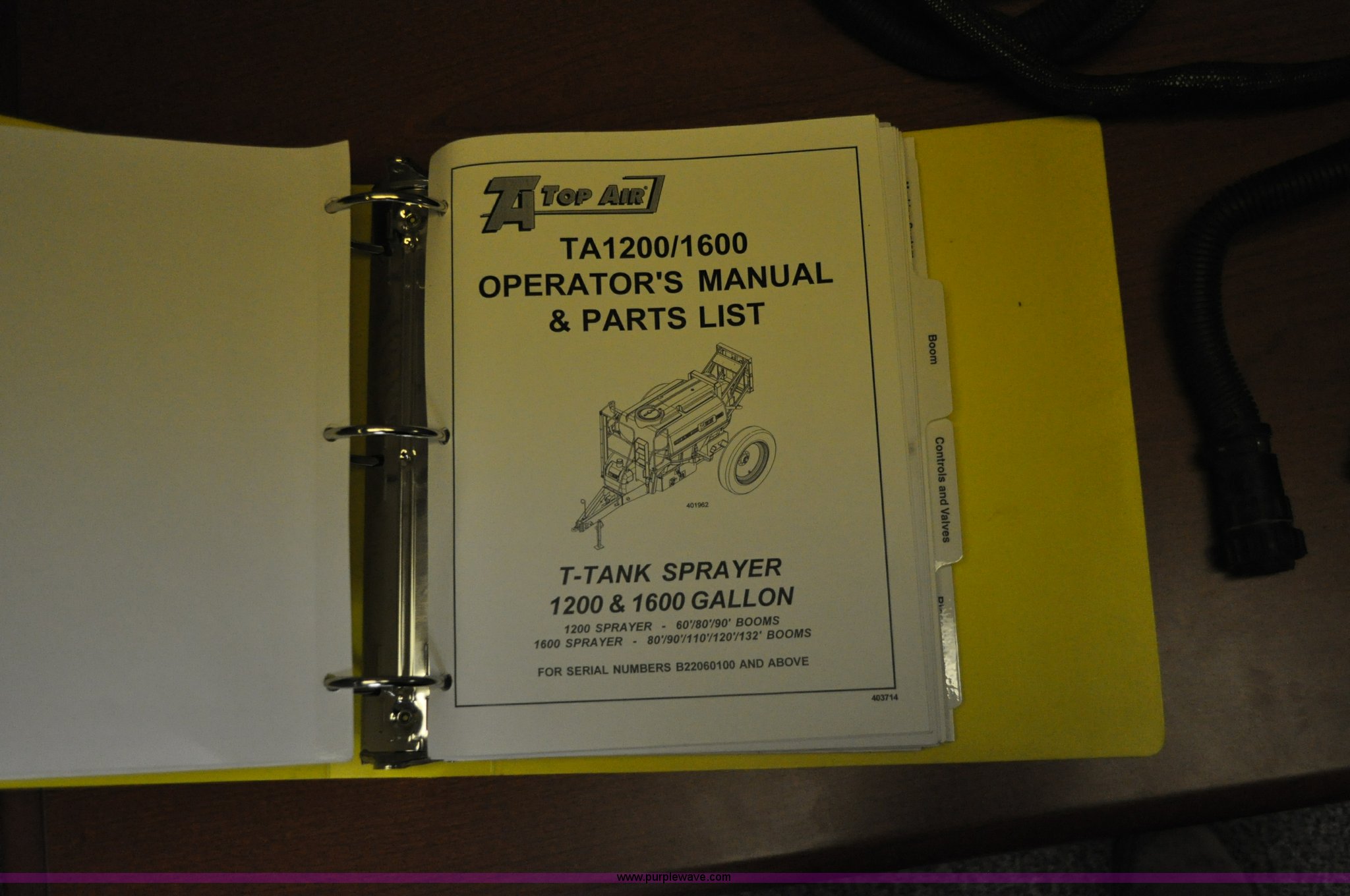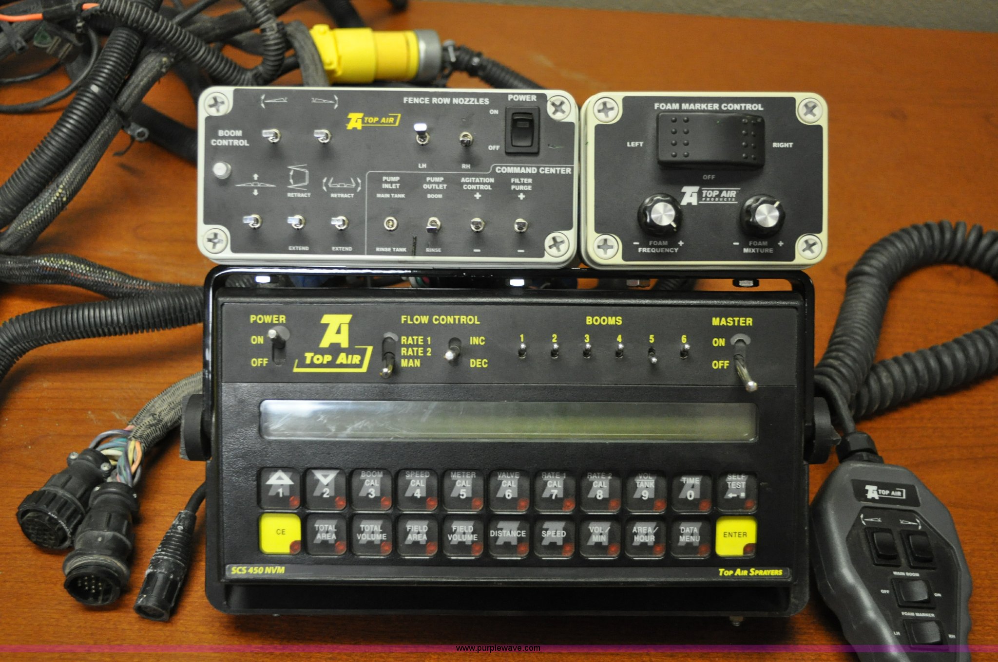 Purple Wave is selling a used Applicator Pull Type in Nebraska. This item is a 2006 Top Air TA1200 sprayer with the following: 90' boom, Folds to spray at 60', Triple nozzle bodies, 15" centers, Stainless steel liquid tubes, Breakaway booms, Boom on spring and shock suspension, Hydraulic boom height control, Hydraulic boom tip raise and lower, 1,200 gallon tank, 140 gallon rinse and flush tank, 16 gallon induction tank that drops down, Small clean water hand wash tank, Foam markers at 90' or 60', Hydraulic pump drive, Front tank level sight gauge, Tip pressure gauge, Filter inlet pressure gauge, Raven 450 monitor, Wheel speed sensor, Road lights, Adjustable axles, 380/90R46 tires, Serial B22530104