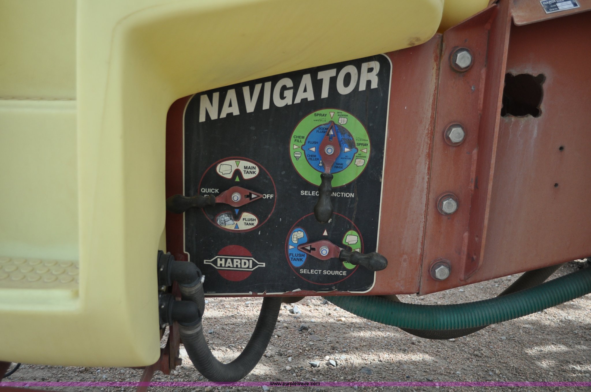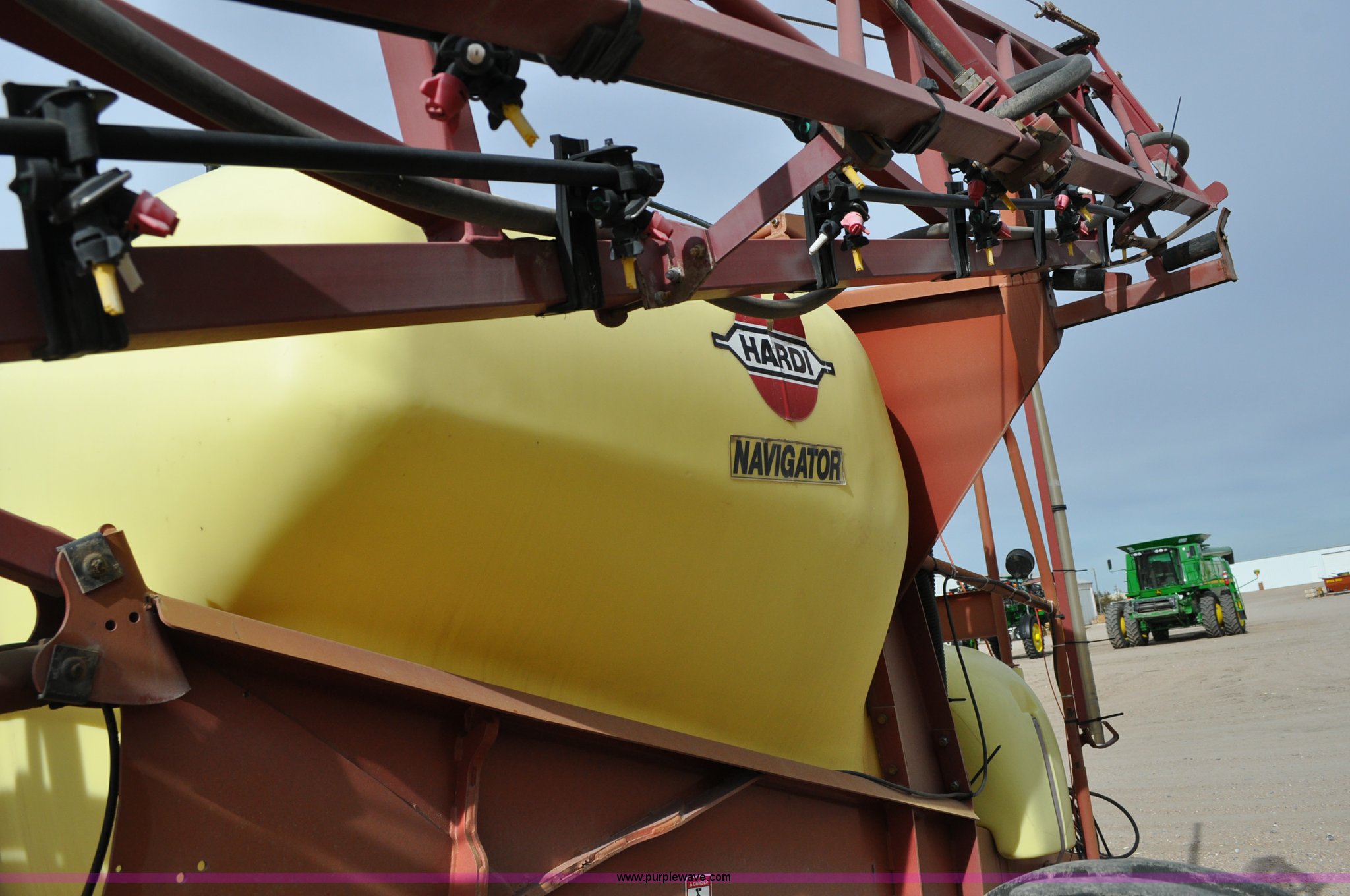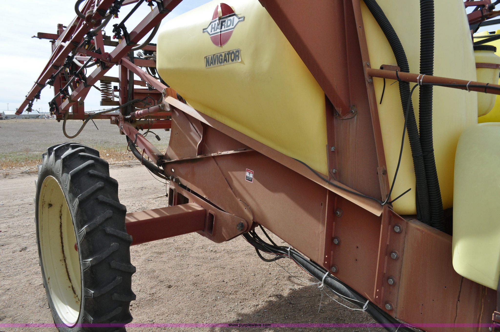 Purple Wave is selling a used Applicator Pull Type in Nebraska. This item is a 2003 Hardi 1100 Navigator sprayer with the following: 60' suspended eagle boom, 1,100 gallon tank, 130 gallon rinse and flush tank, 6.5 gallon induction tank, ACE hydraulic driven pump, Triple nozzle bodies, 20" spacing, Hydraulic boom height control, Hydraulic boom tip raise and lower, Hardi HC2500 sprayer control, Hardi boom control, Hardi scan box, Adjustable axles, 12.4-42 tires, 5,495 lbs. base operating weight, Serial 11-0010