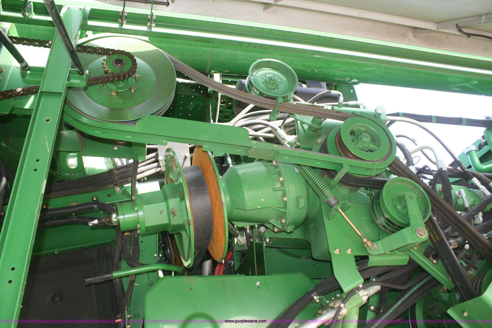 Purple Wave is selling a used Combine in Kansas. This item is a 2010 John Deere 9770 STS RWA combine with the following: 1,534 engine hours on meter, 1,167 separator hours on meter, John Deere 9.0L six cylinder diesel engine, 360 HP, Model 6090HH008, Serial RGG090L077415, ProDrive hydrostatic transmission, Heavy duty final drives, Two-speed power rear wheels, Contour Master feeder house, Hi torque, Five speed, Reverser, Hi capacity lift cylinders, Single point header hookup, Custom cutter extended wear package, Self-leveling shoe option, General purpose chaffer, Straw chopper, Wide spread, Fine cut, Power tailboard, Premier cab, AC and heat, AM/FM/CD/weatherband, Air ride seat, Instructor's seat, Tilt steering wheel, John Deere Command Center, Draper belt speed control, In-cab chaffer and sieve adjustment, Auto header height control, HarvestSmart feedrate control system, John Deere bin extensions, Hi capacity 26' unload auger, Round bar concaves installed, Work lights, Operators manual, Greenstar ready, Monitor not included, Receiver not included, 520/85R42 dual front tires, Outside duals will be removed and ready for transport, 480/70R30 rear tires, Serial 1H09770SHA0736490, Unit# 15847